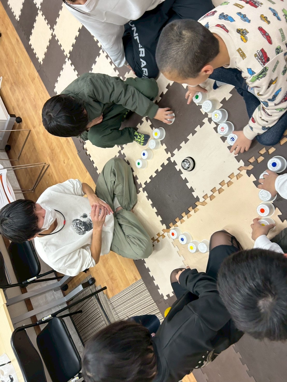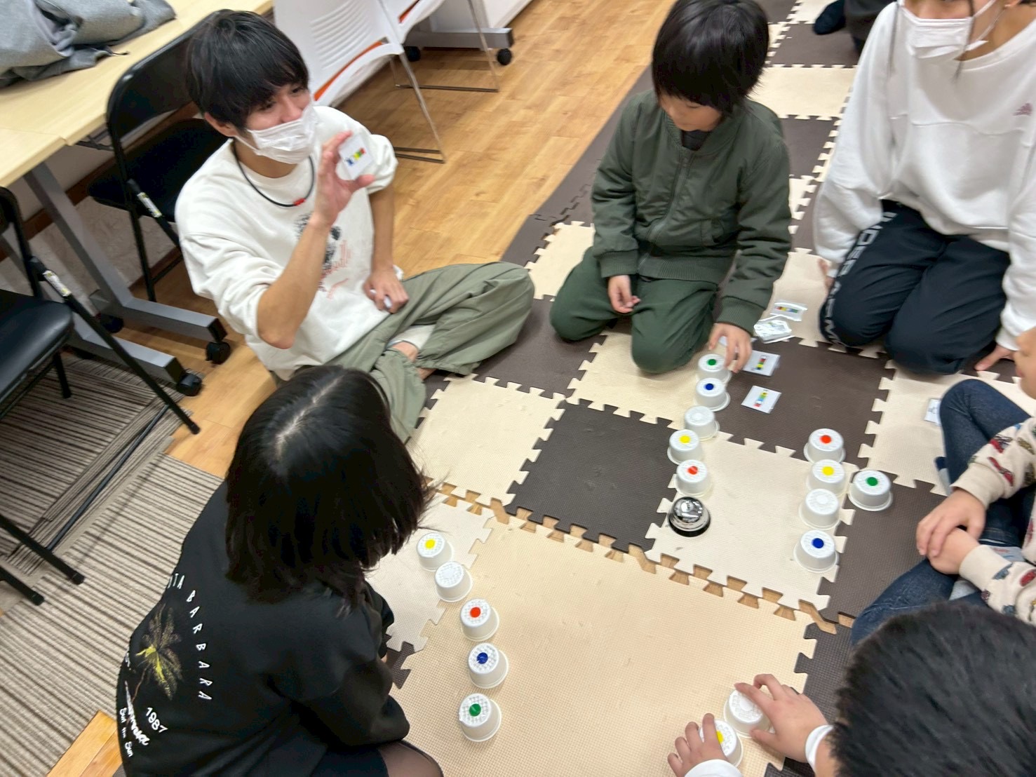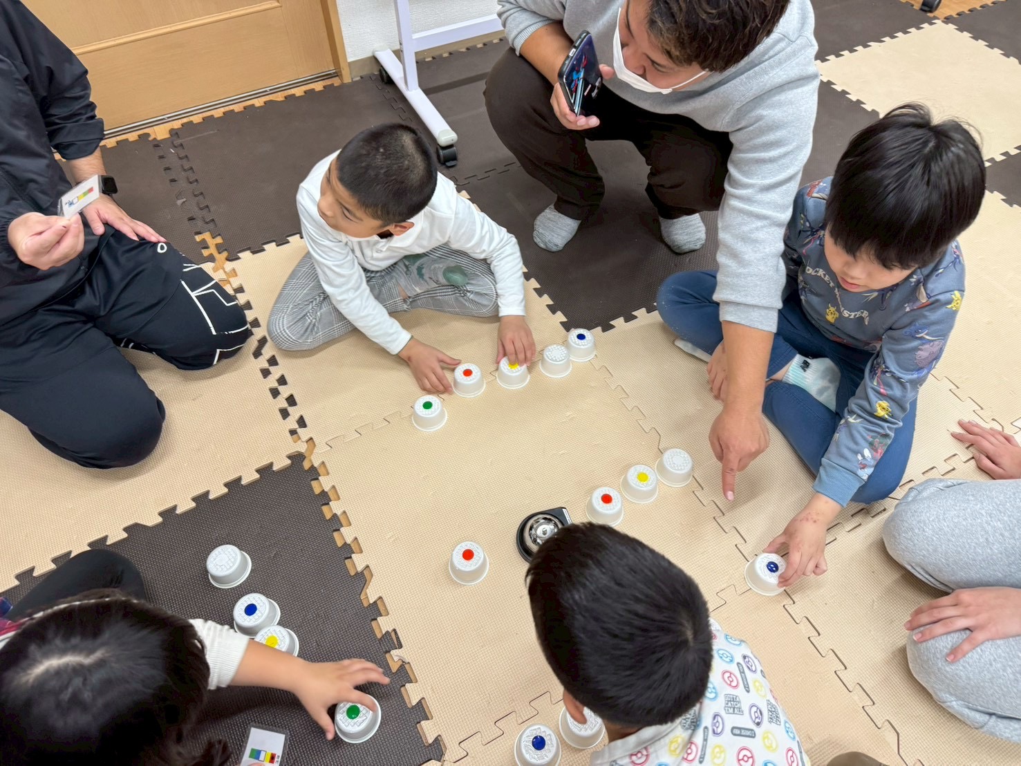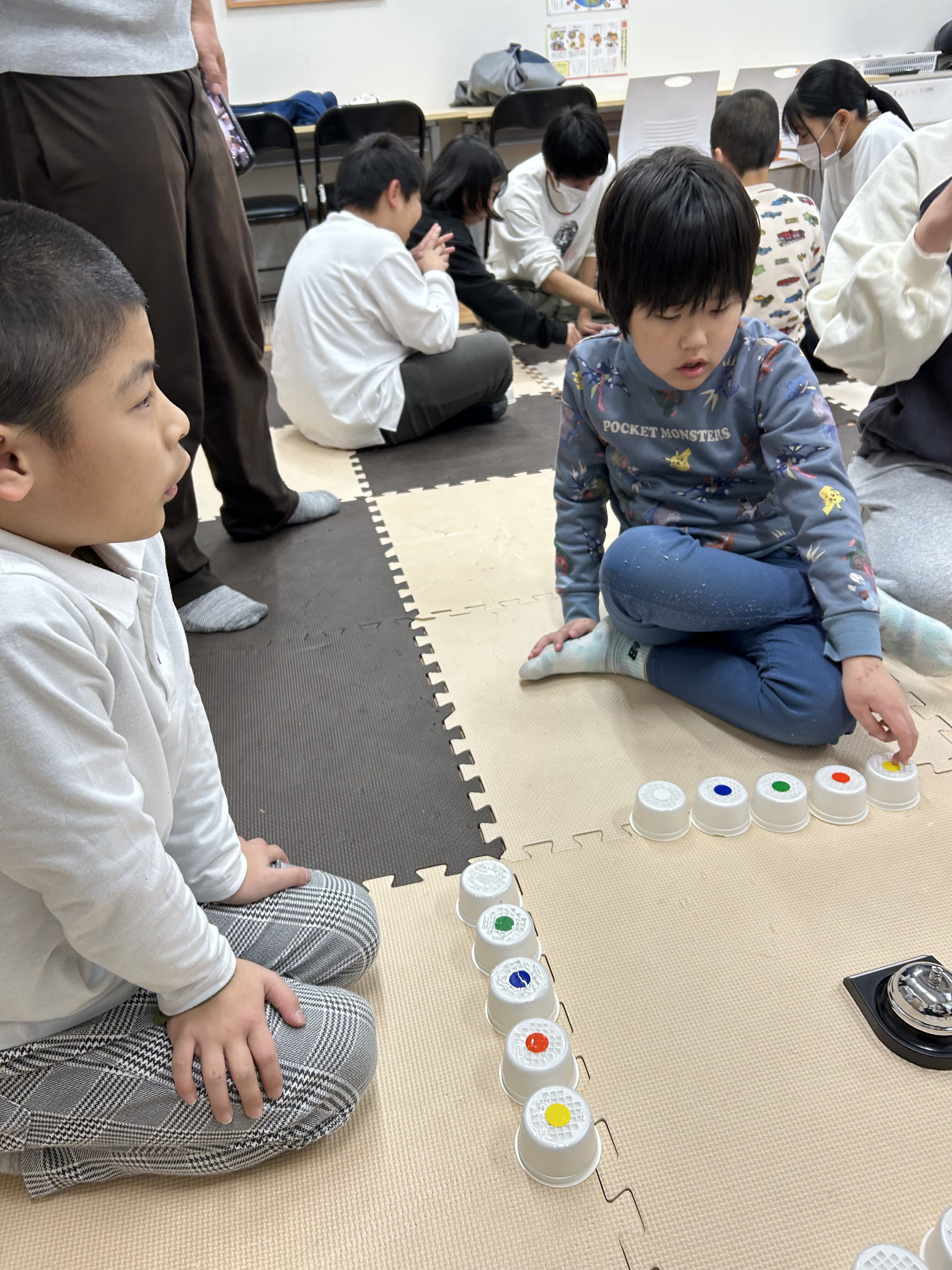 各グループではみんな真剣勝負でコップを先生から出されたお題通りに並べています✨