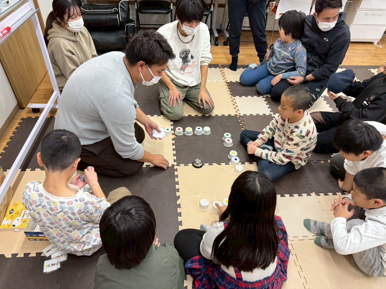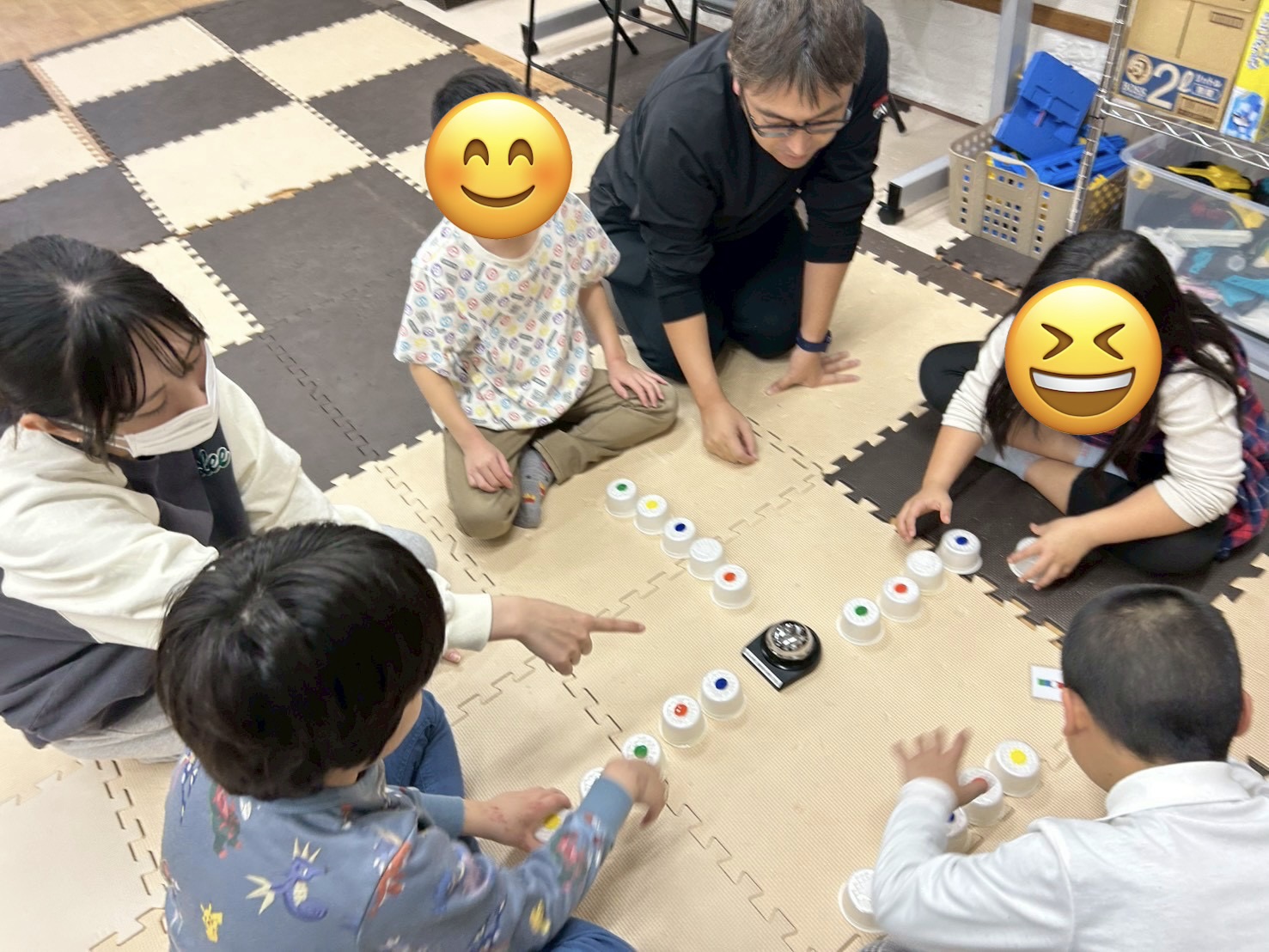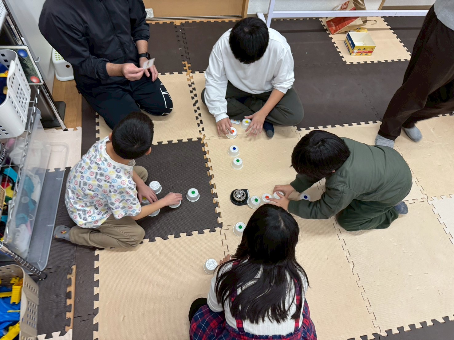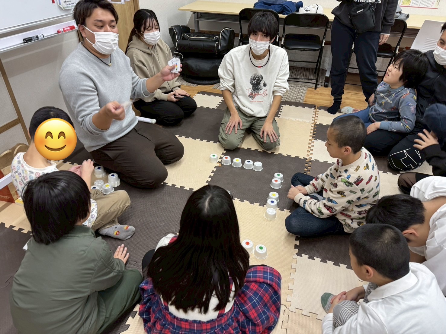 各グループではみんな真剣勝負でコップを先生から出されたお題通りに並べています✨