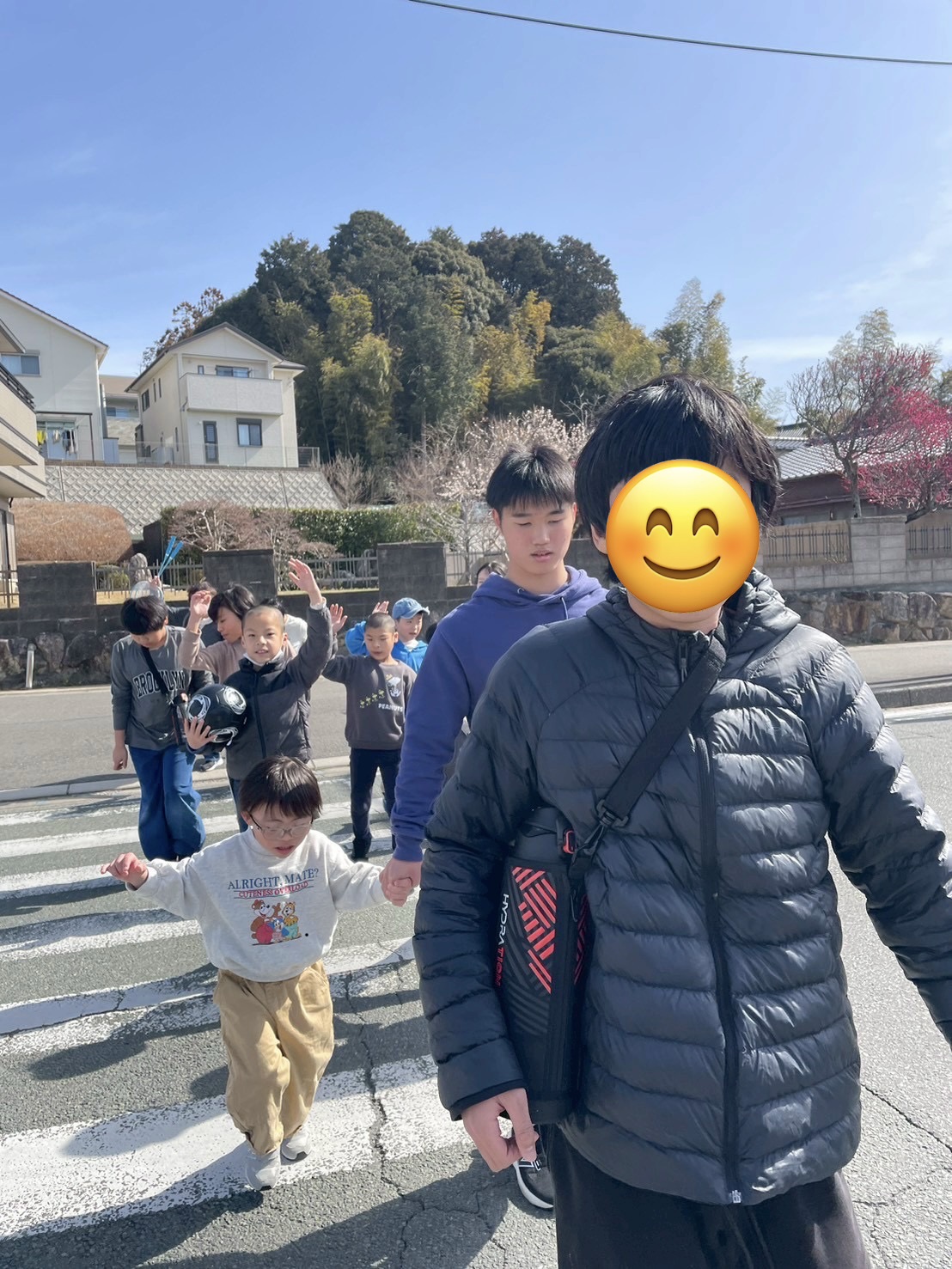 みんなで仲良く行きました🥳横断歩道を歩く時も手を上げて🖐️