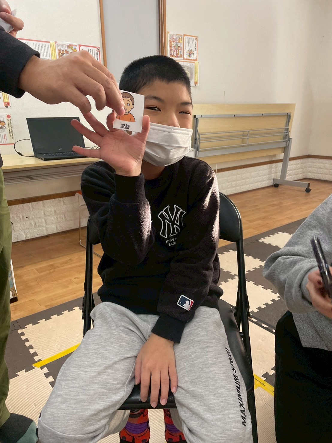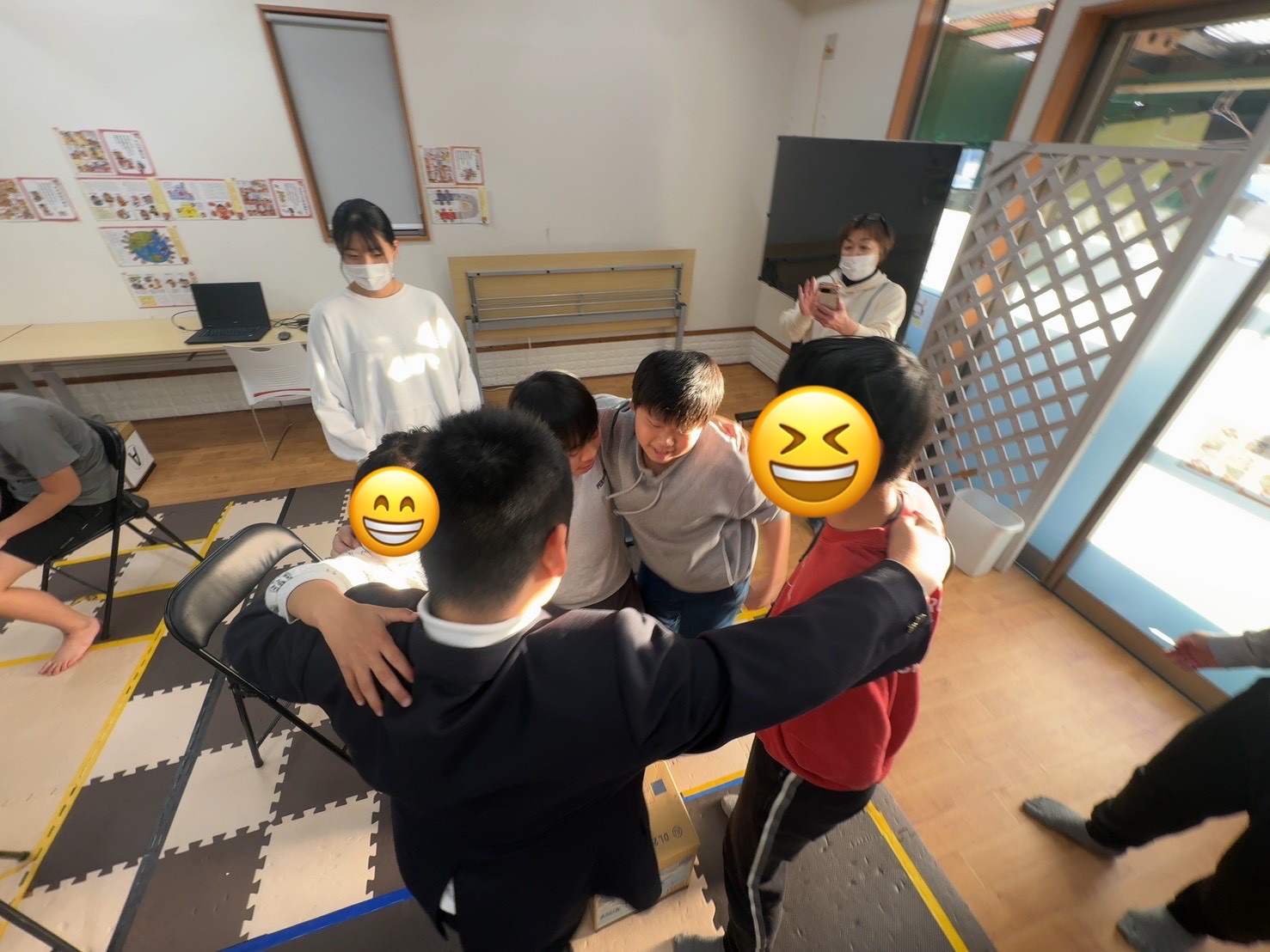 ジャンプしたり、ポーズをとったりと、体を動かすアクションに、自然と笑い声が広がり、グループ全体がとてもにぎやかな雰囲気に♪