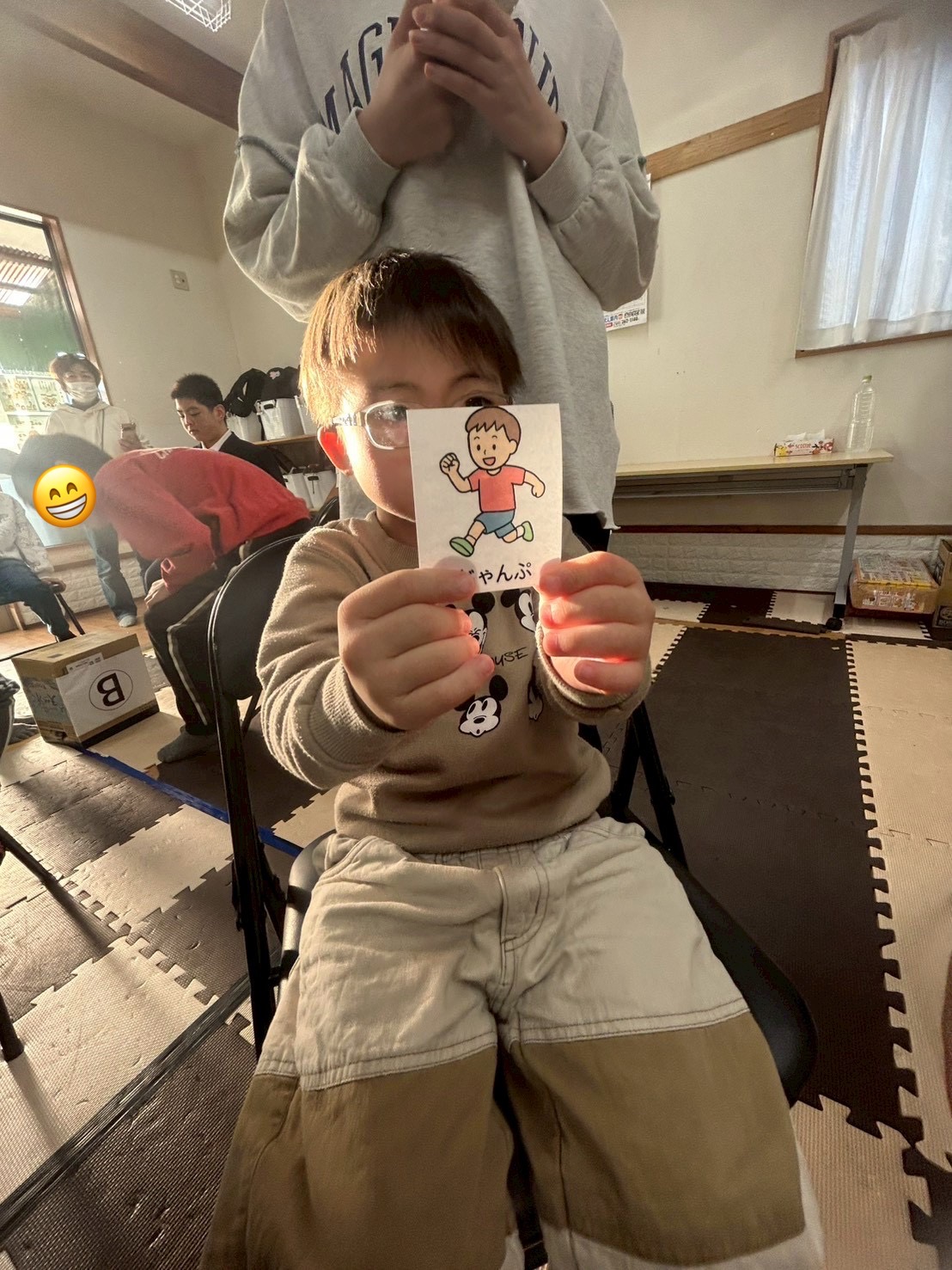 イラストが描かれたカードの中から1枚を選び、カードに書かれている内容をグループの皆んなで一緒にチャレンジします🕺