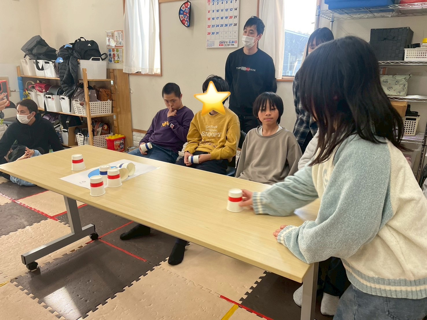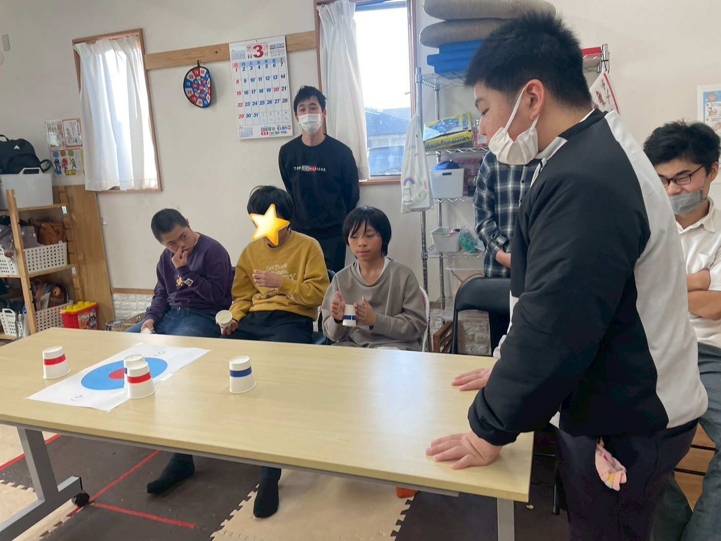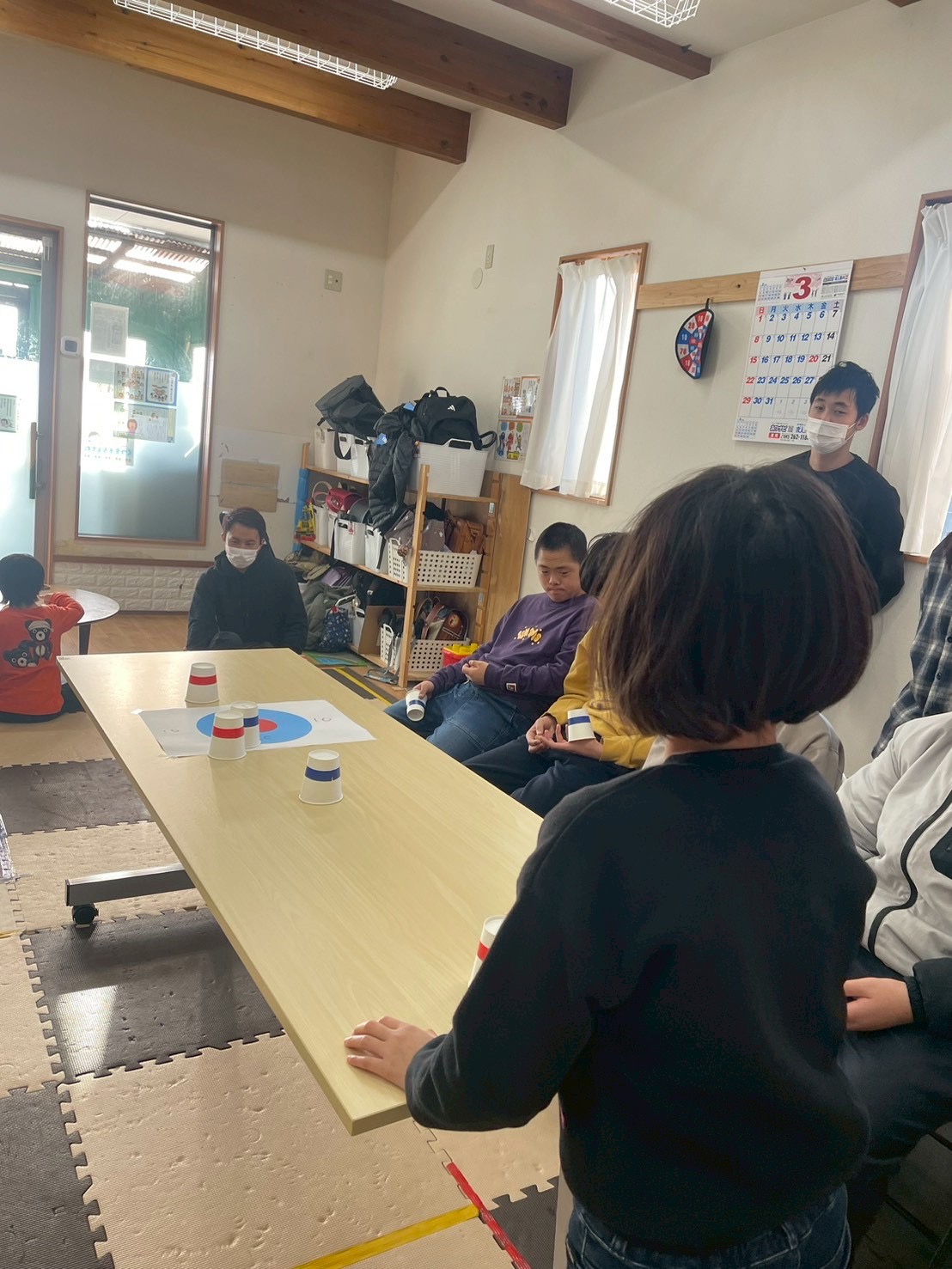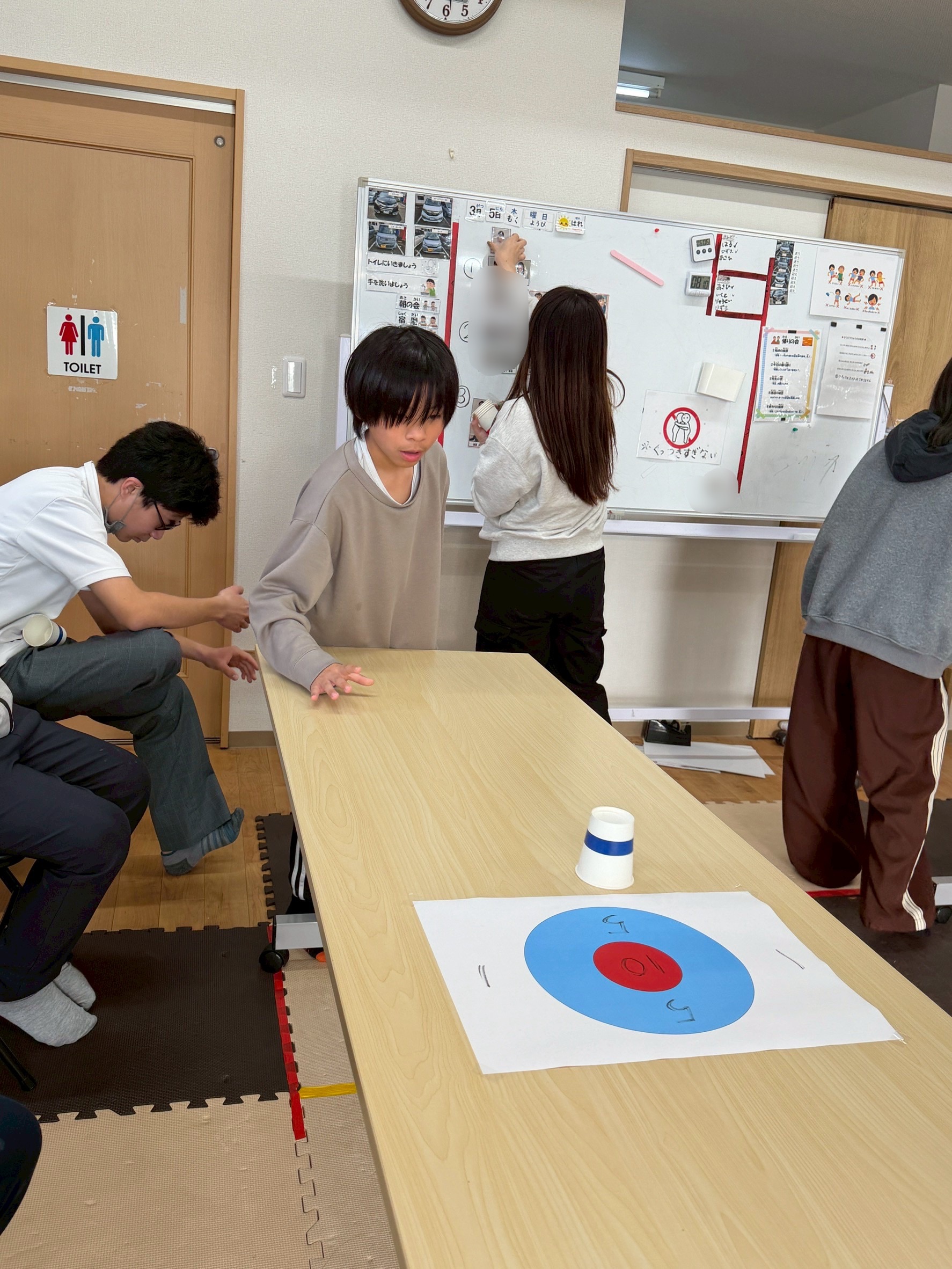 3回戦目はひとつの的に向かってみんなが投げます🥌前の人が置いた紙コップもそのままになるので、どこを狙うか戦略が試されます💡