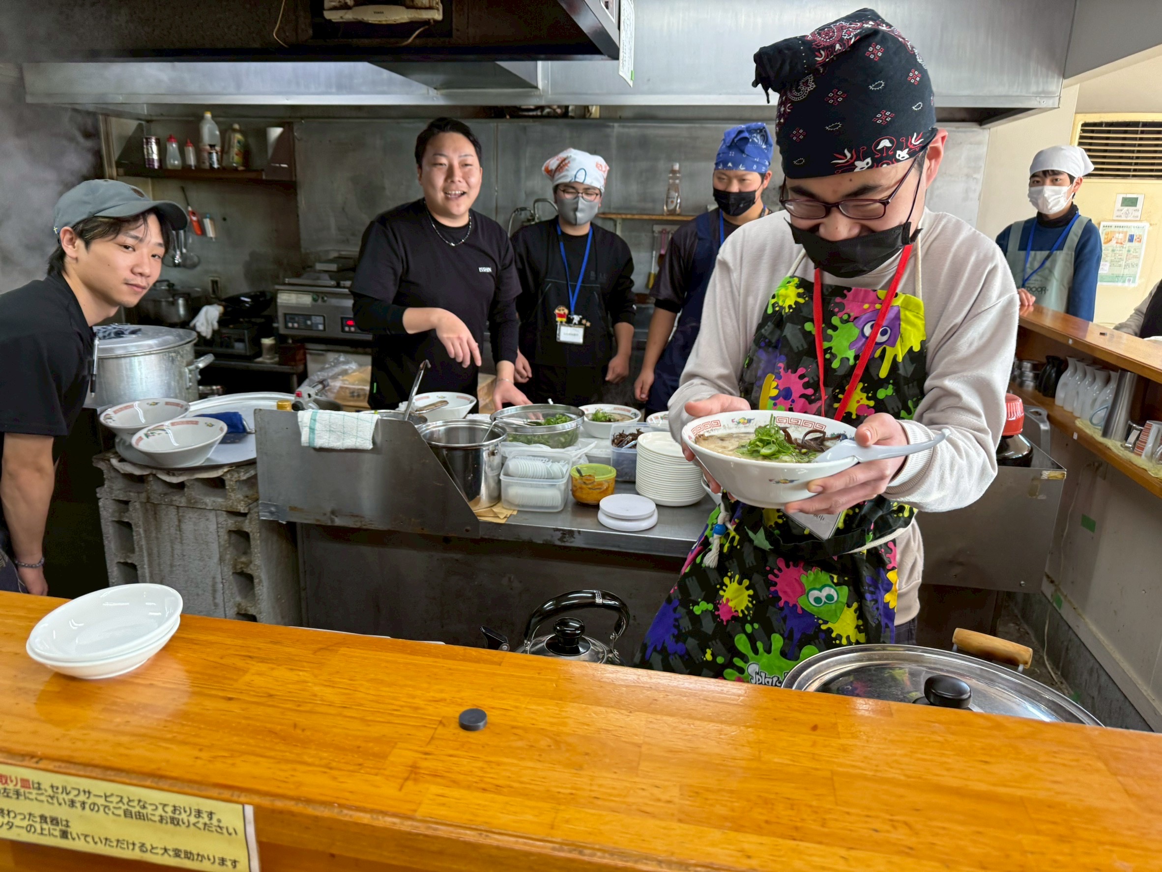 その後は、ラーメンをお客様のもとへ運ぶ配膳やお会計、店内の清掃、消耗品の補充など、さまざまな仕事を体験させて頂きました😊✨
