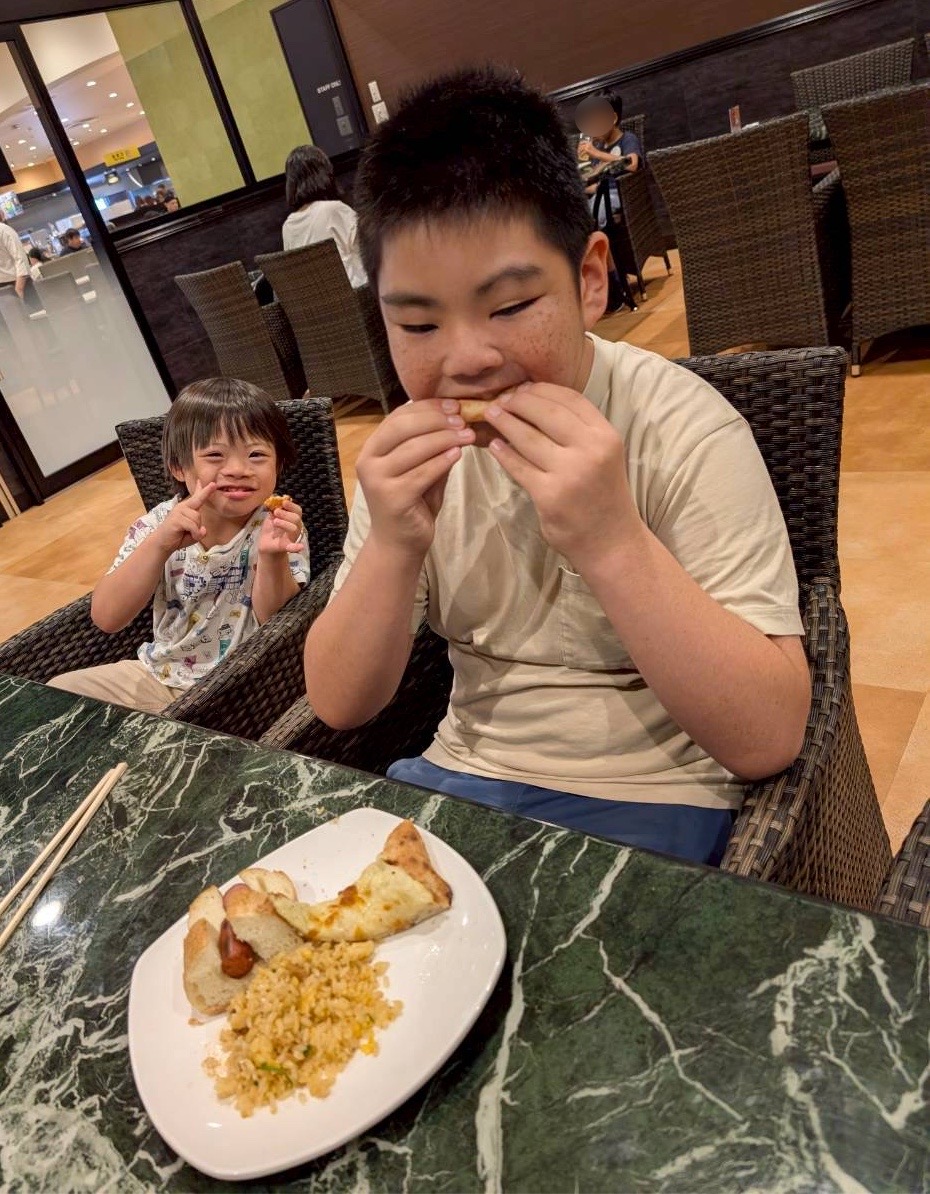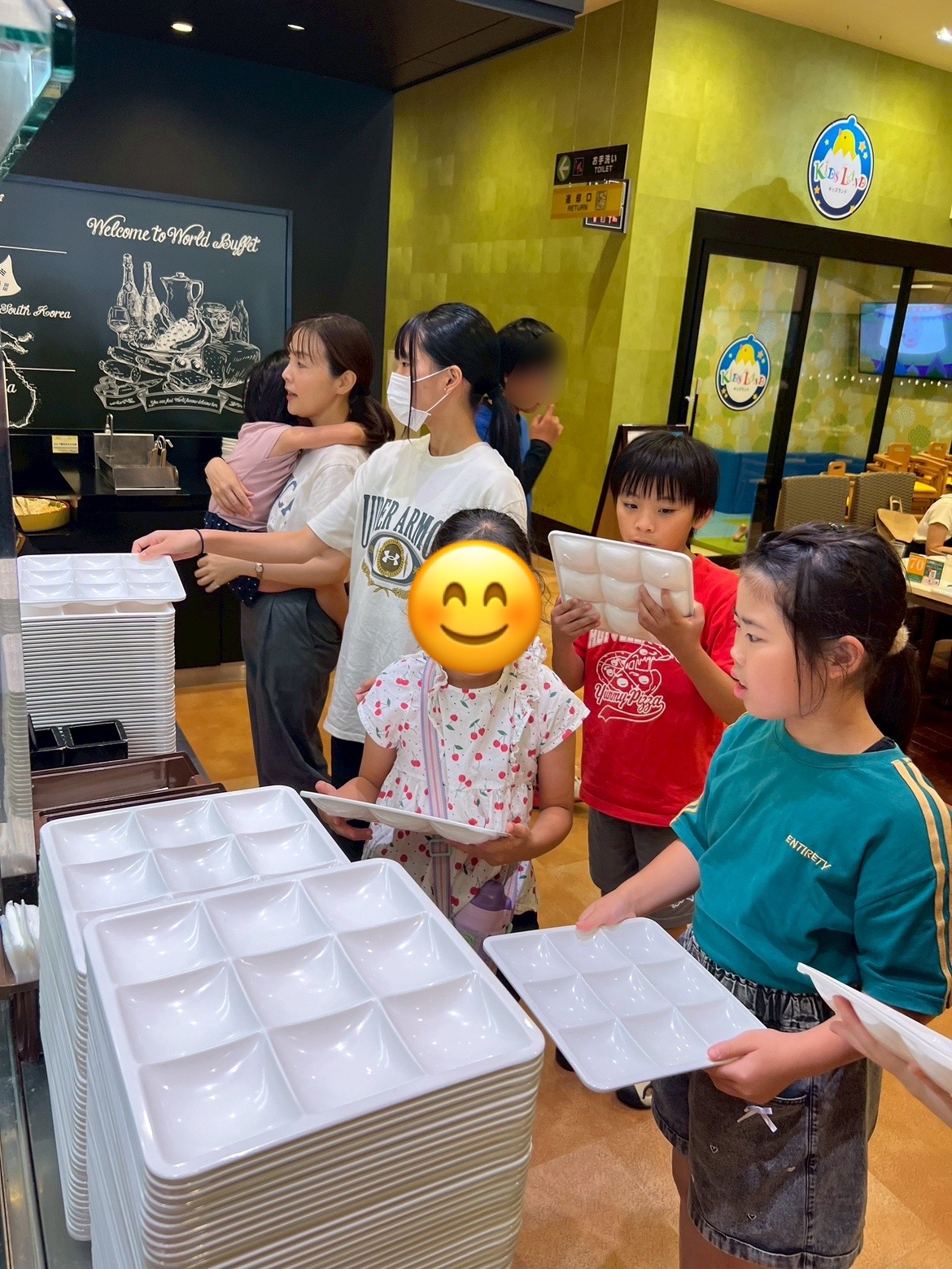 本日は外食活動ということで、「ワールドビュッフェ新宮中央店」へ行きみんなでお昼ご飯を食べました😊🎶