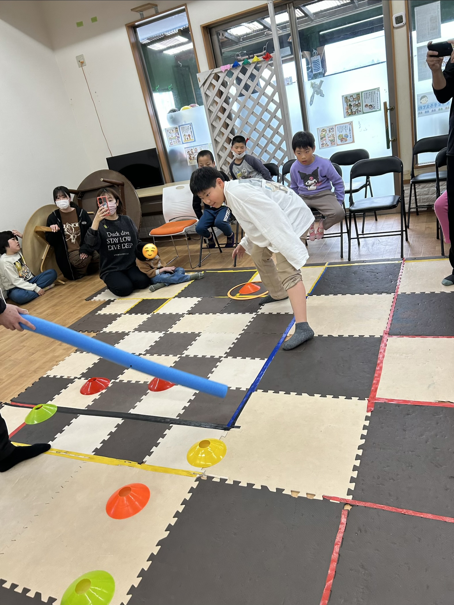 そしてボールの次は長い棒😱こちらも棒に触れることなくマーカーを取ります‼️ボールに比べると不規則に棒が邪魔してくるので避けるのが大変😭みんな上手に避けることができるか⁉️