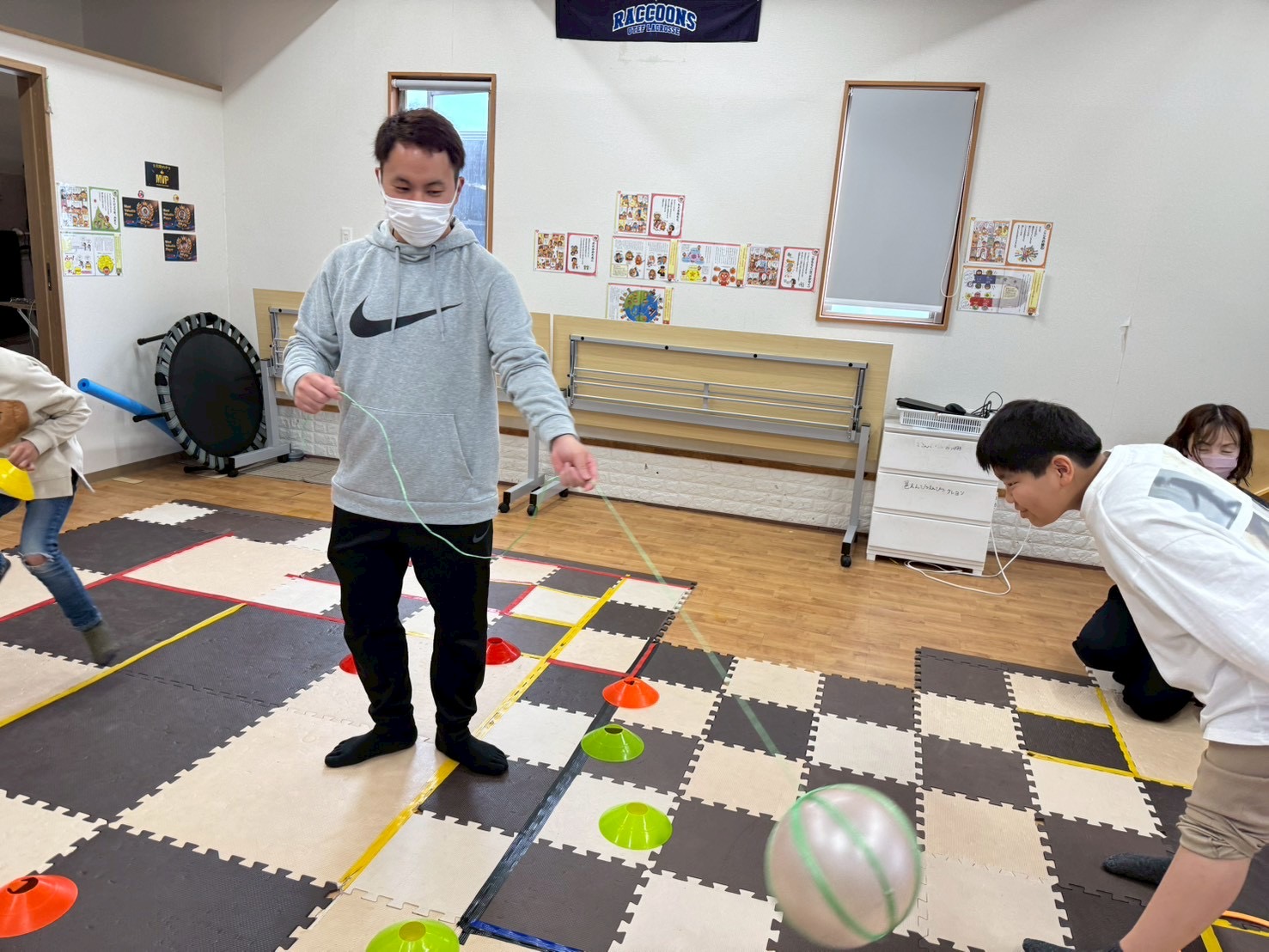 ボールや棒に当たらないようにする為に判断力と素早く取る為の俊敏な動きが重要になります👍避けながら取ることで普段とは違った動きもする為とても良い運動になります💪
