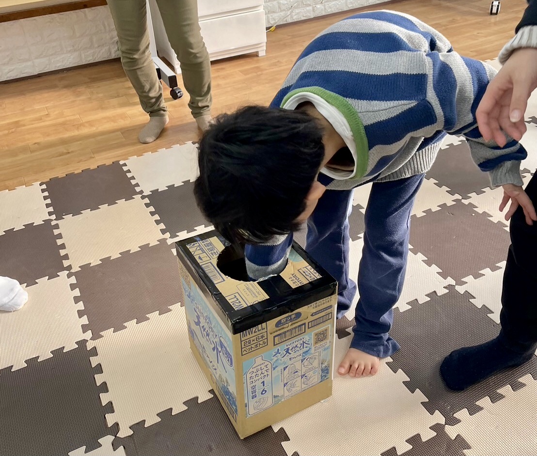 順番に箱の中に手を入れてボールを掴みます