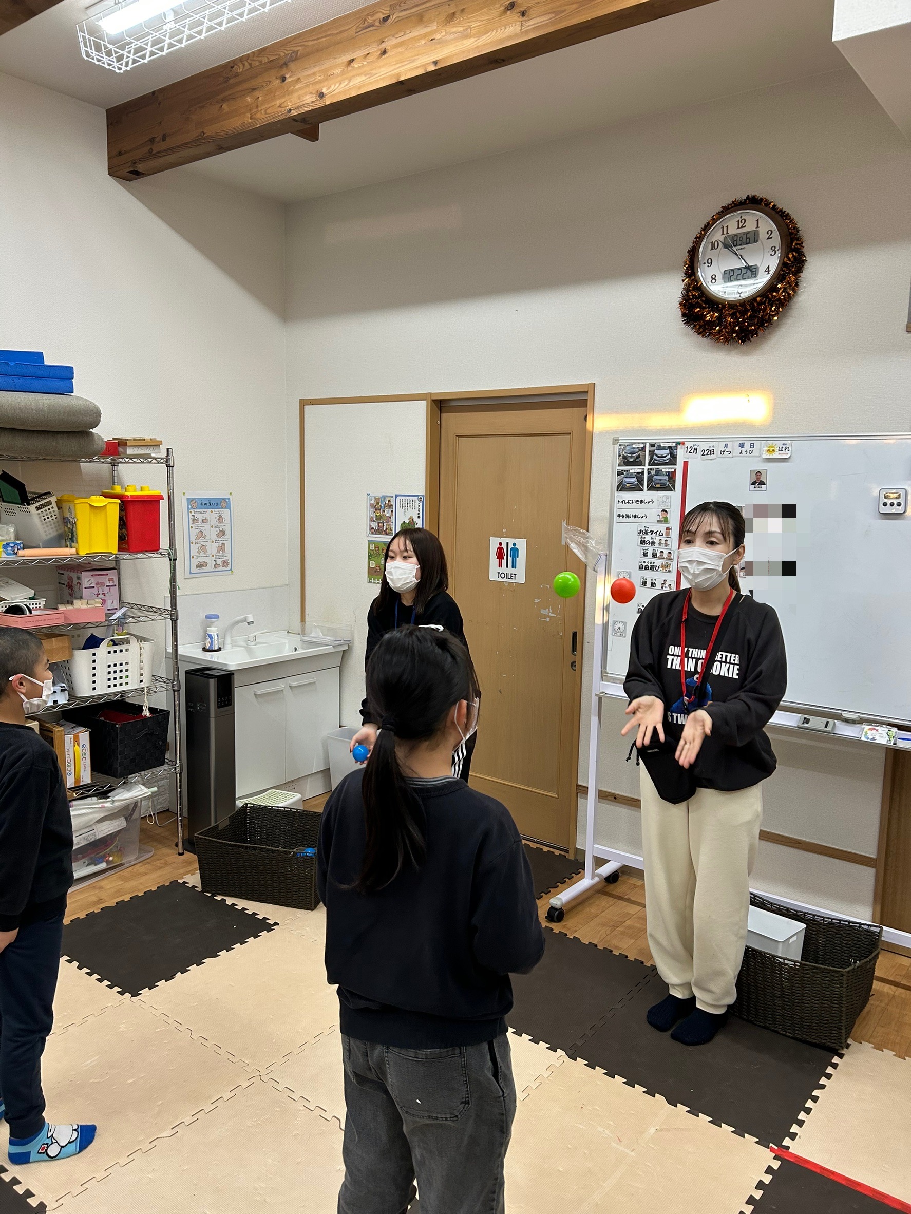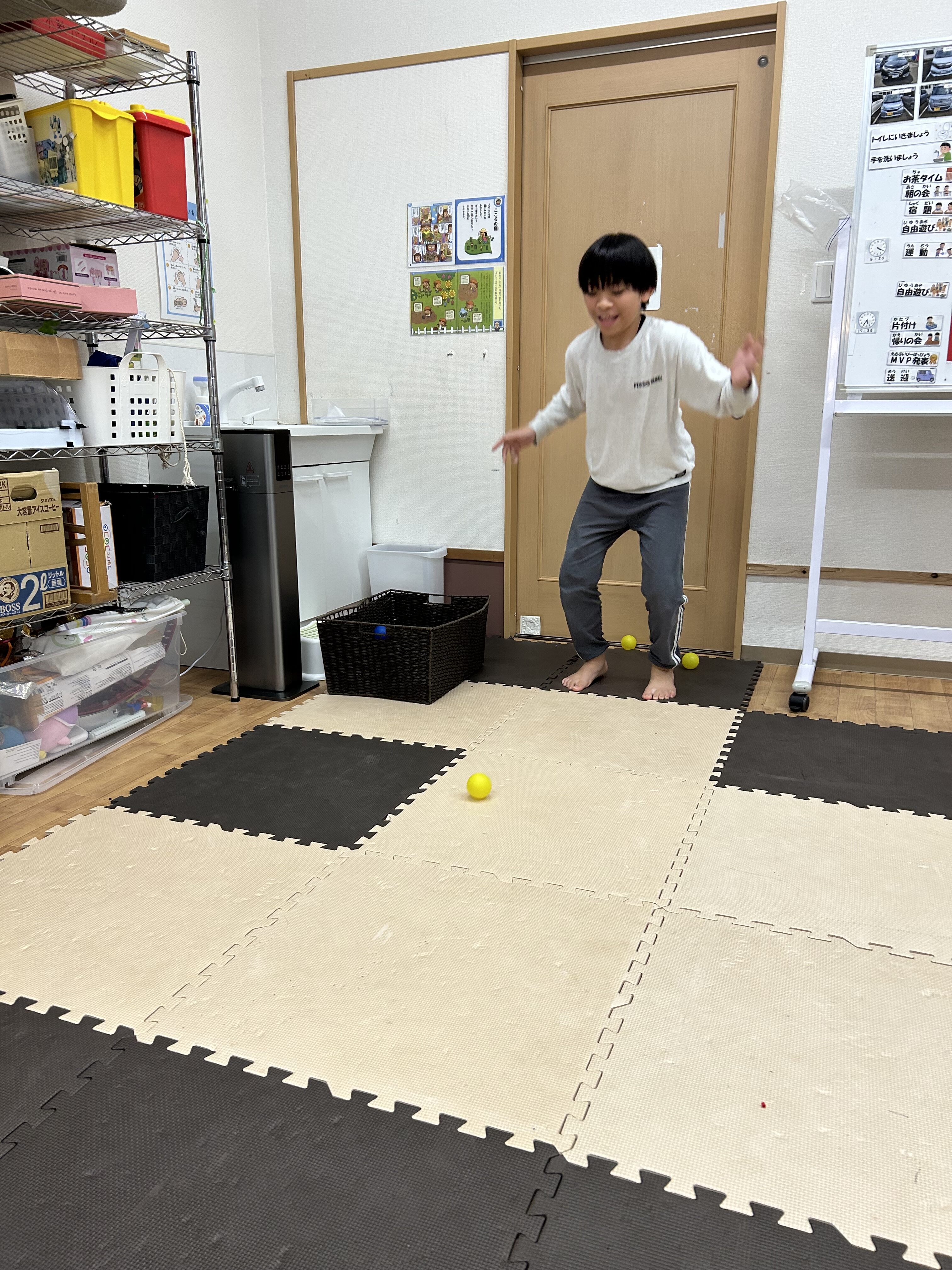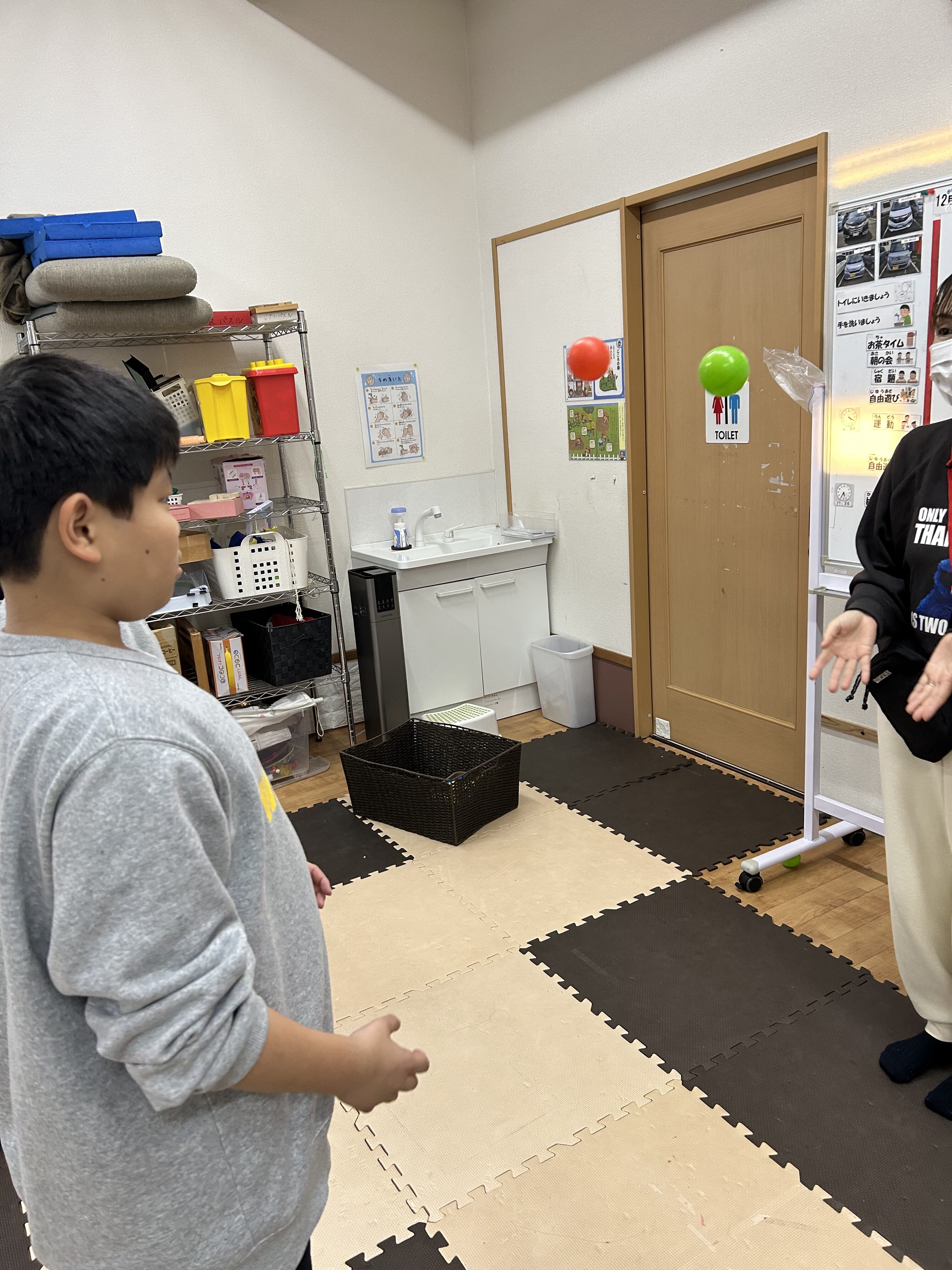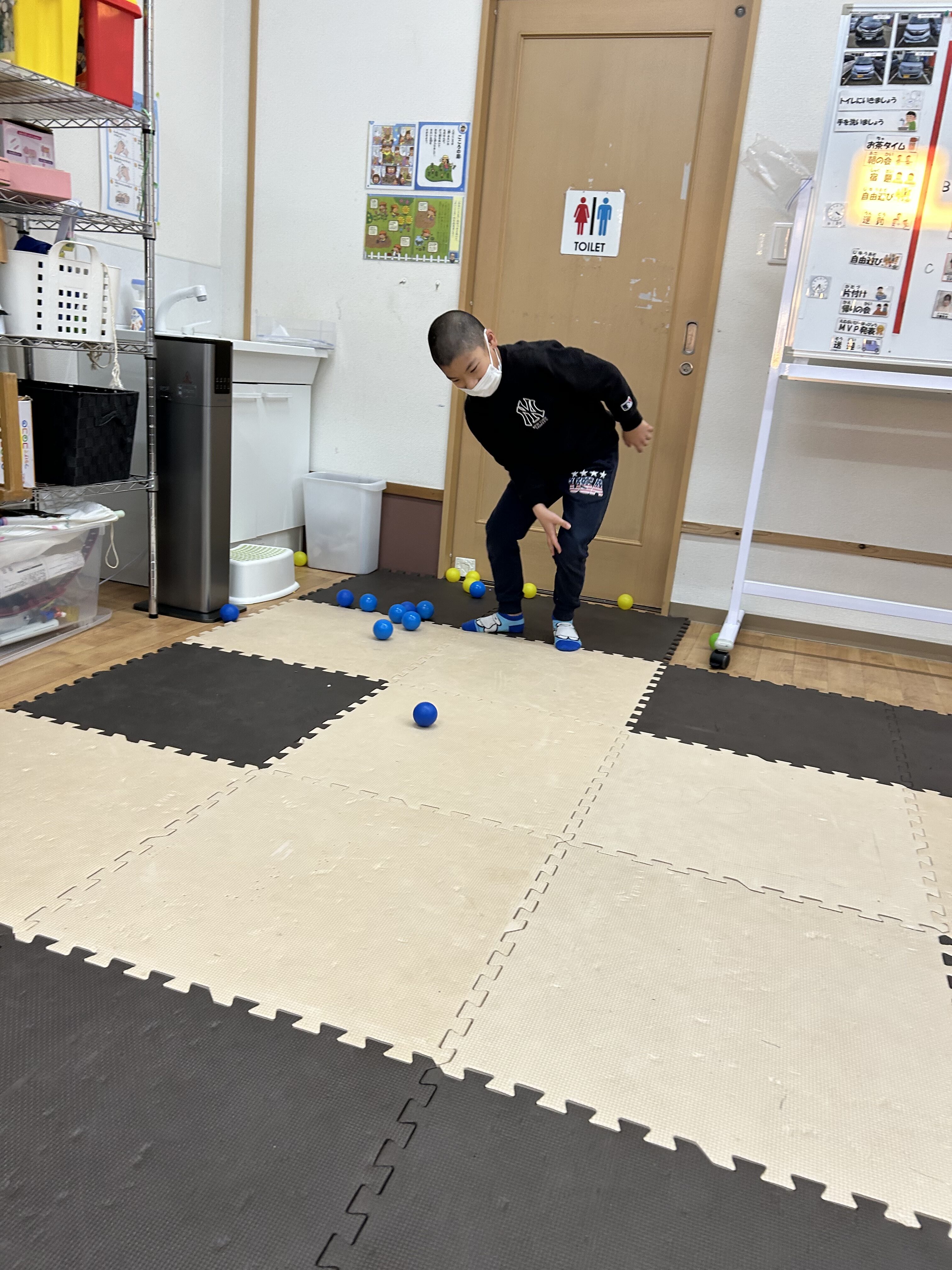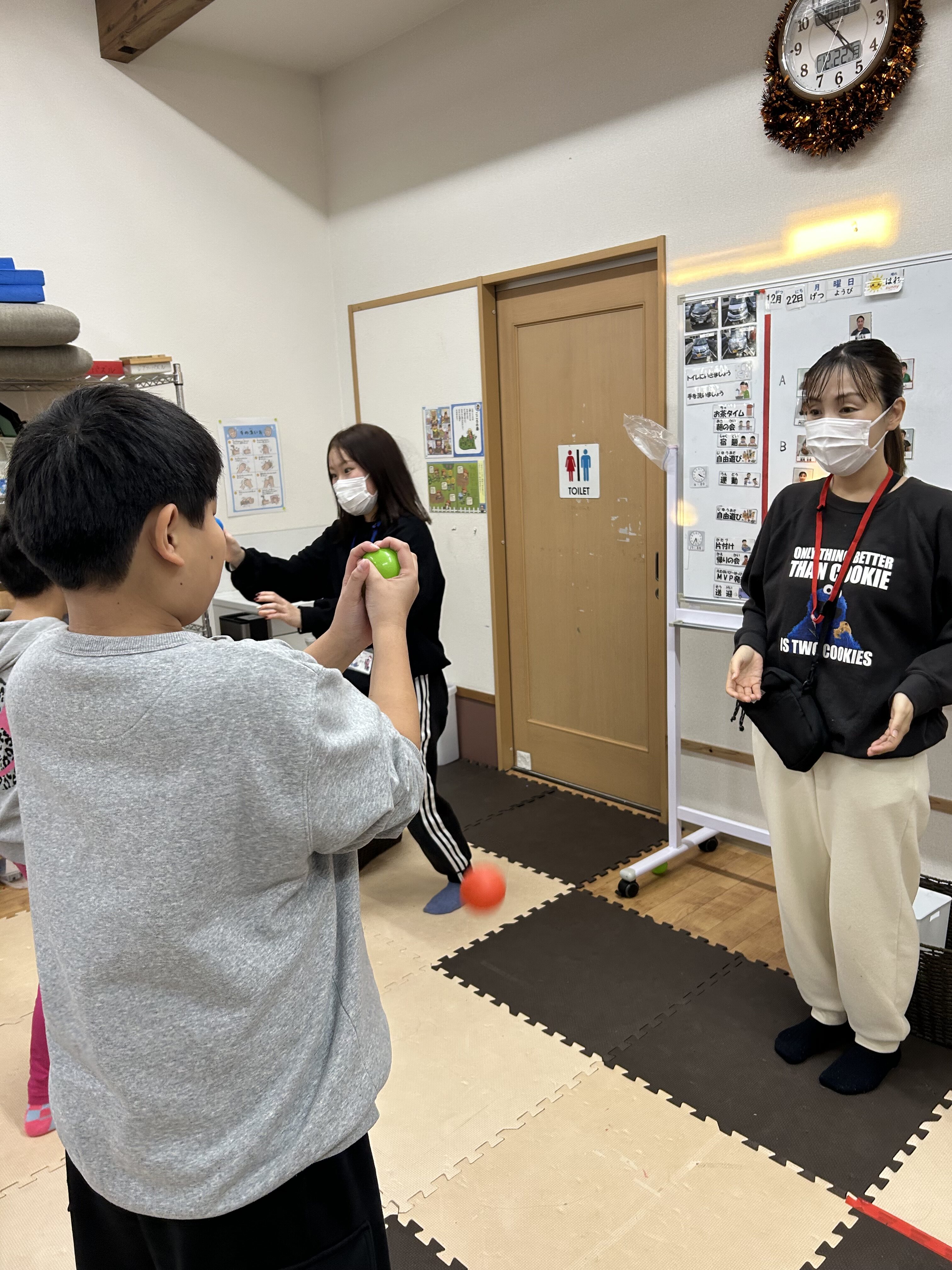 2球同時に投げます!投げたと同時に先生から色を指定されます!子供達はその指定された色のボールを取るといったトレーニング🏋️