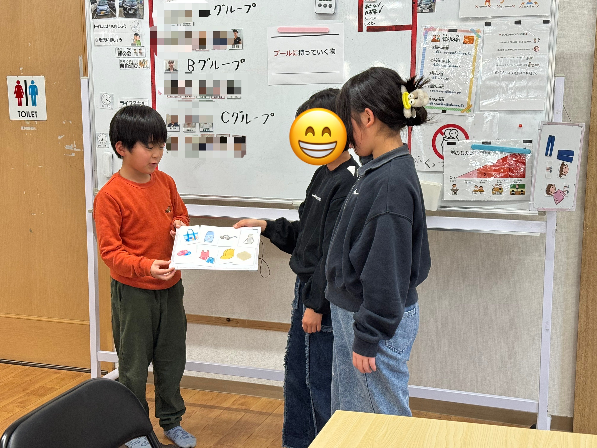 持ち物がまとまった後は、グループごとに前に出て発表を行いました🎤