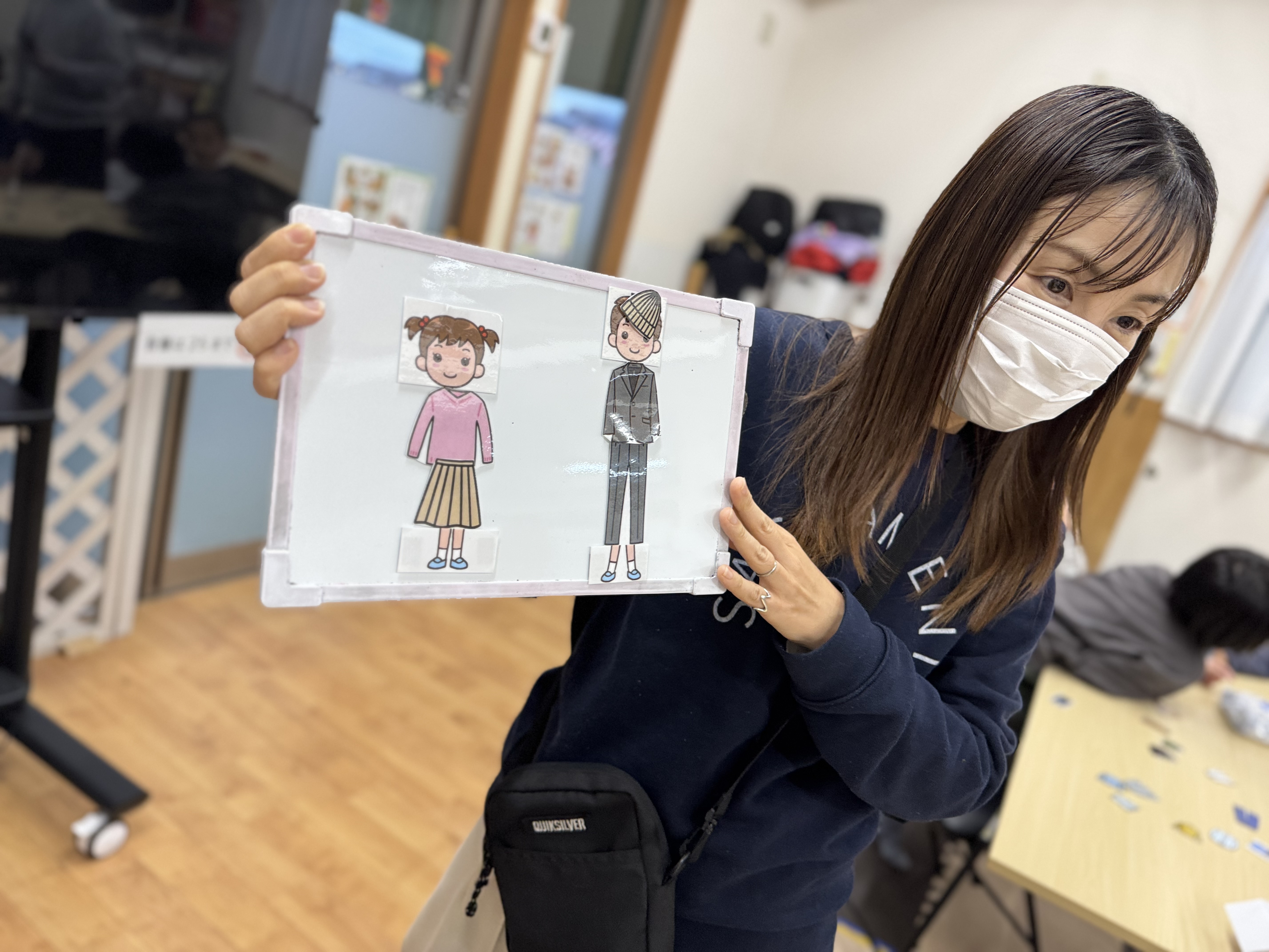 次にグループワークを行い、季節に合わせた服装を選んで貰いました😊