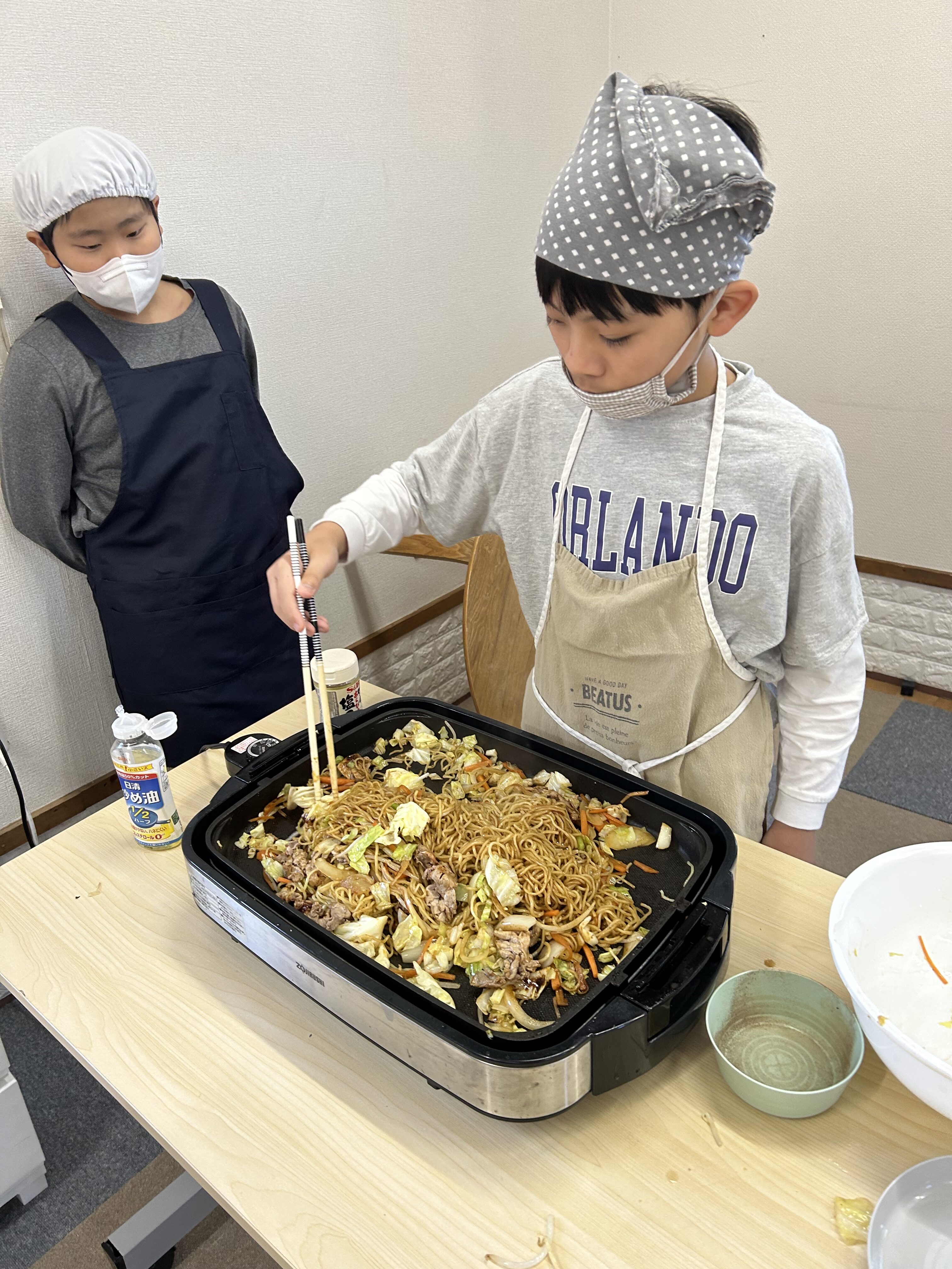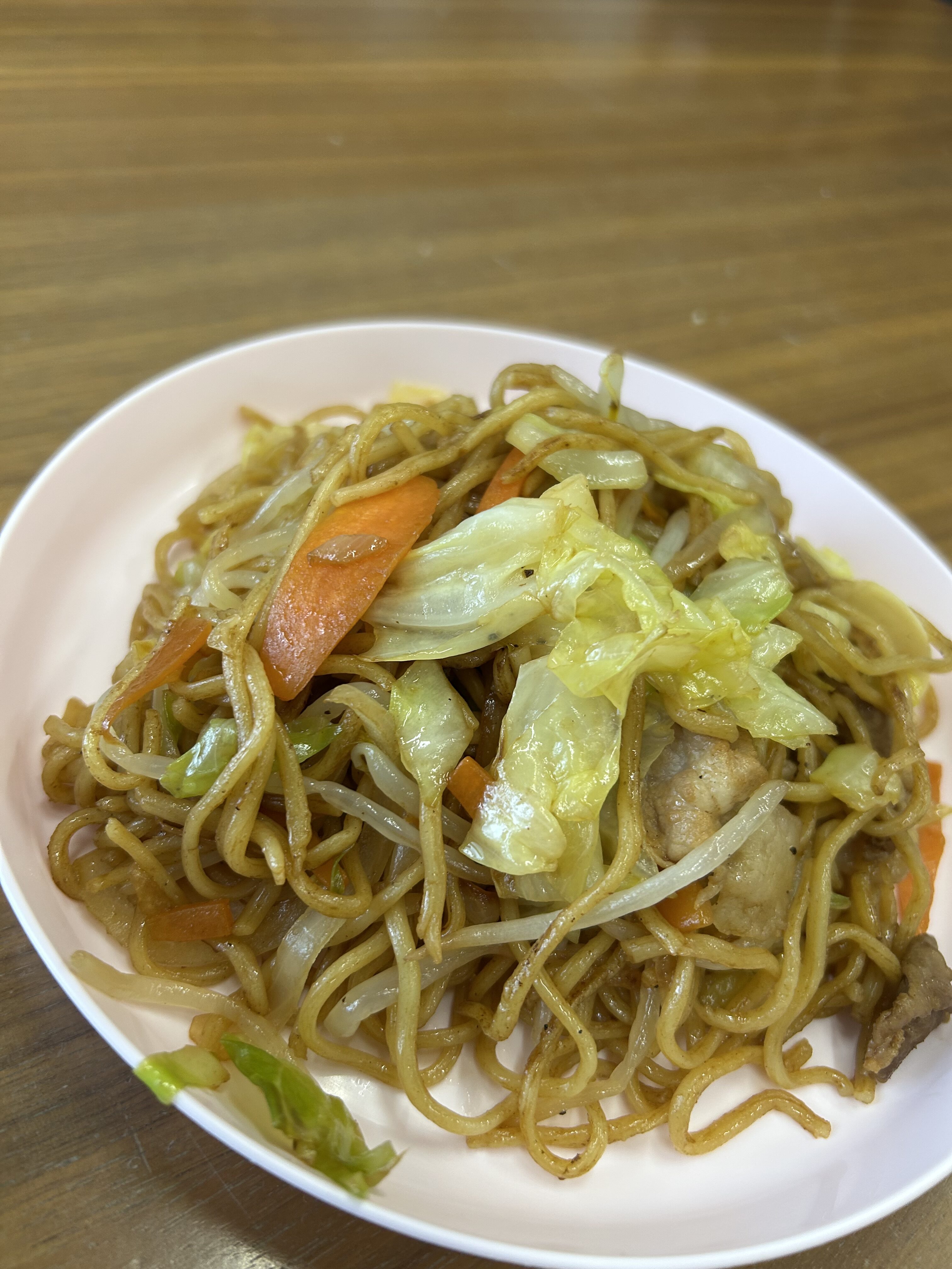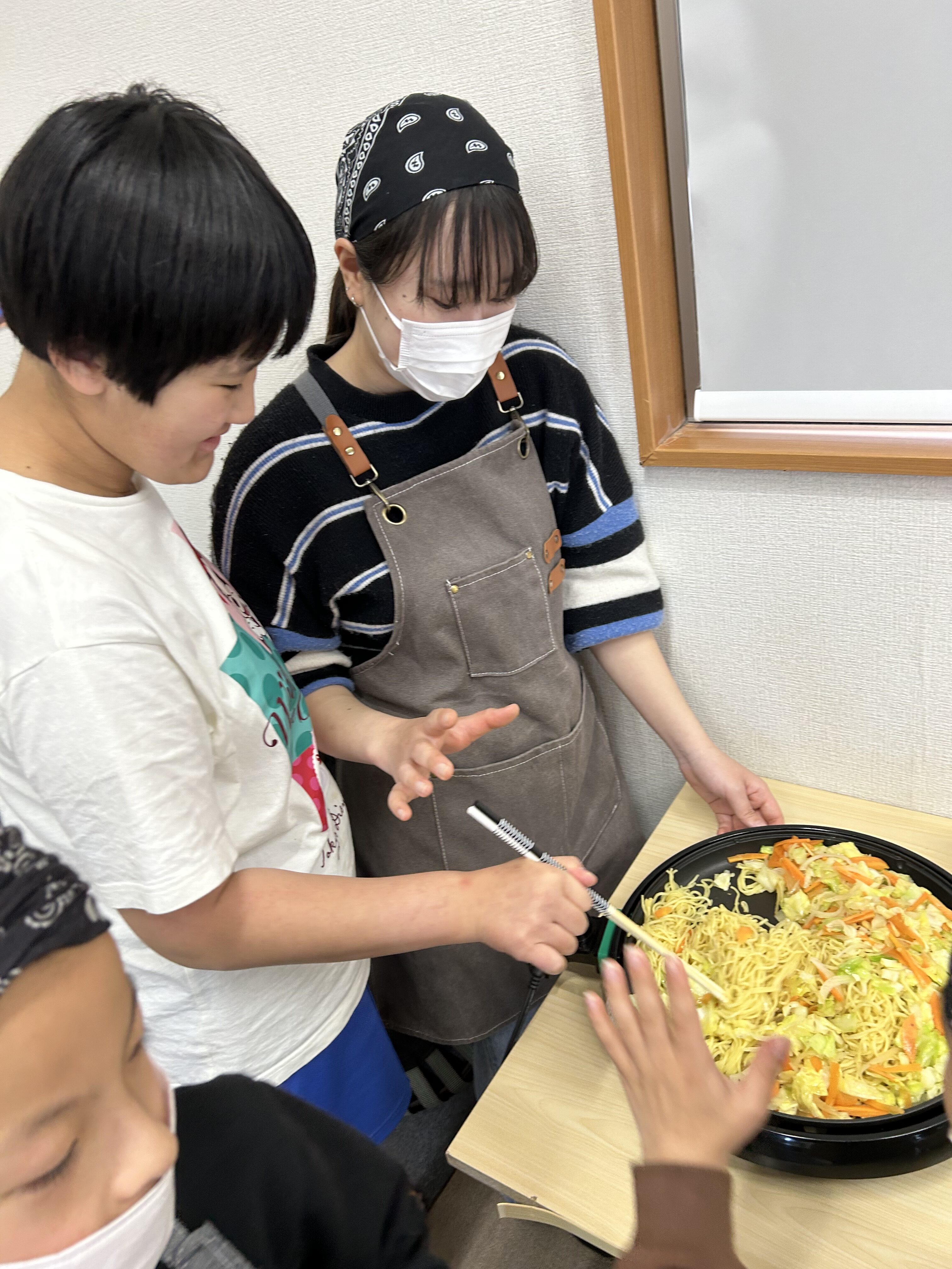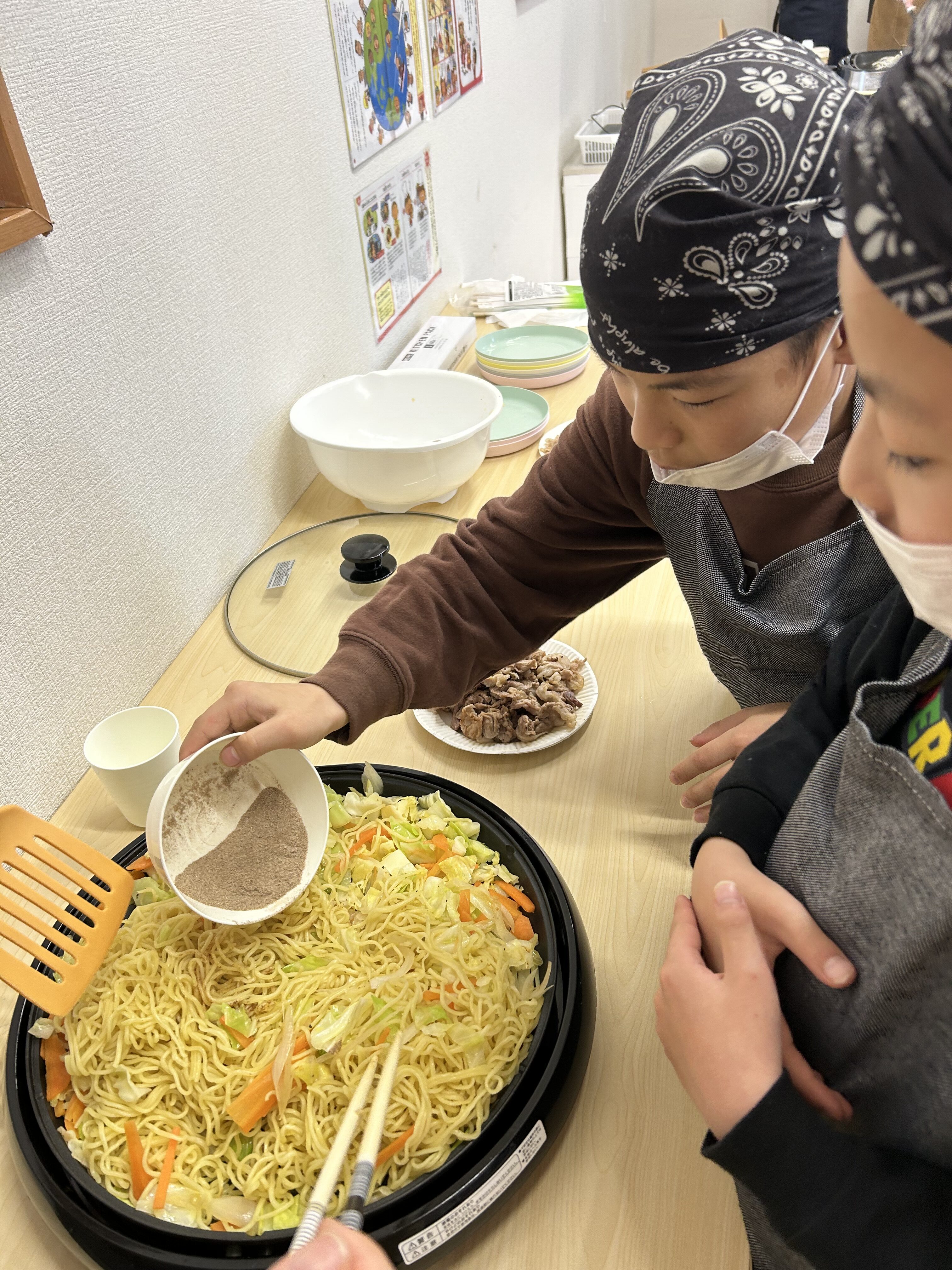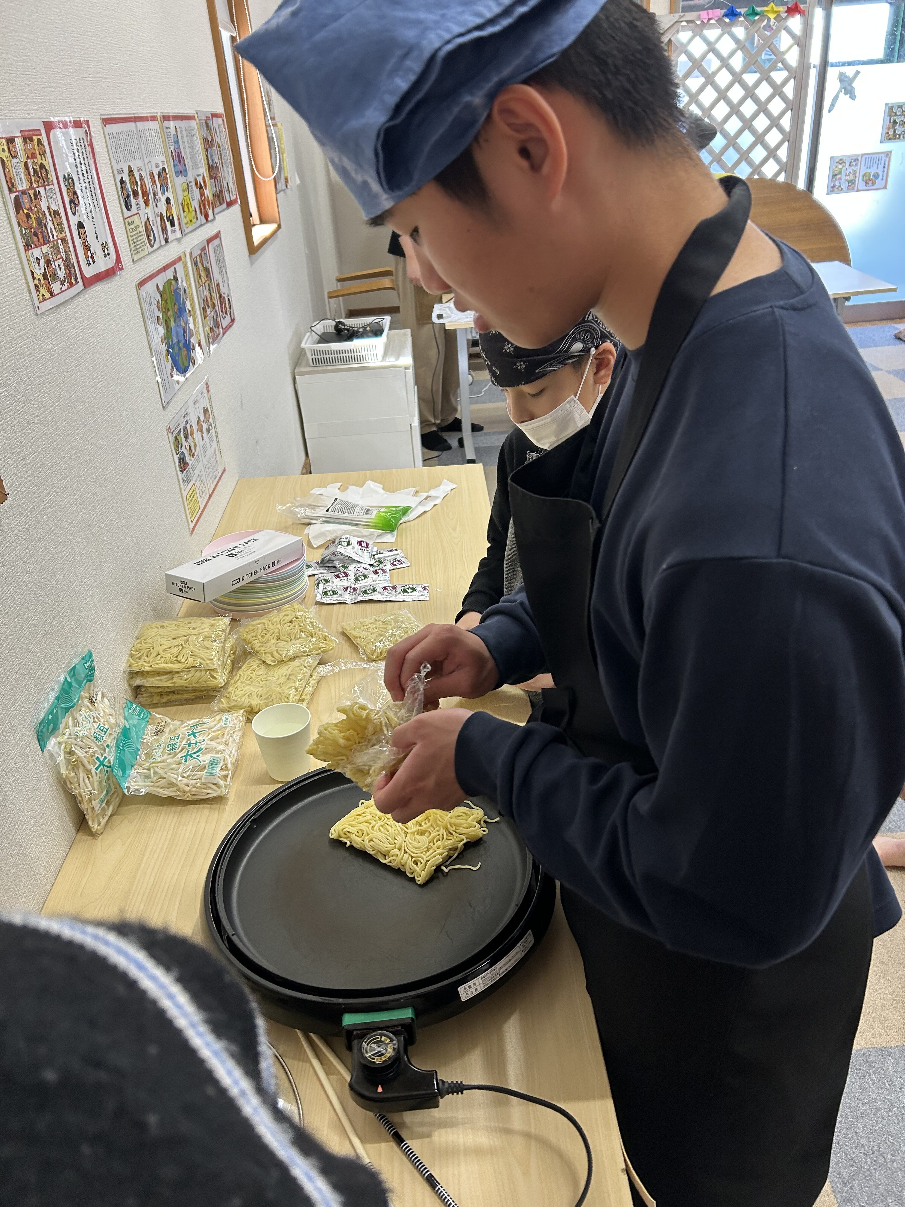 完璧に混ぜ合わせる事ができたら完成✨みんなで協力して作った焼きそばが出来ました‼️