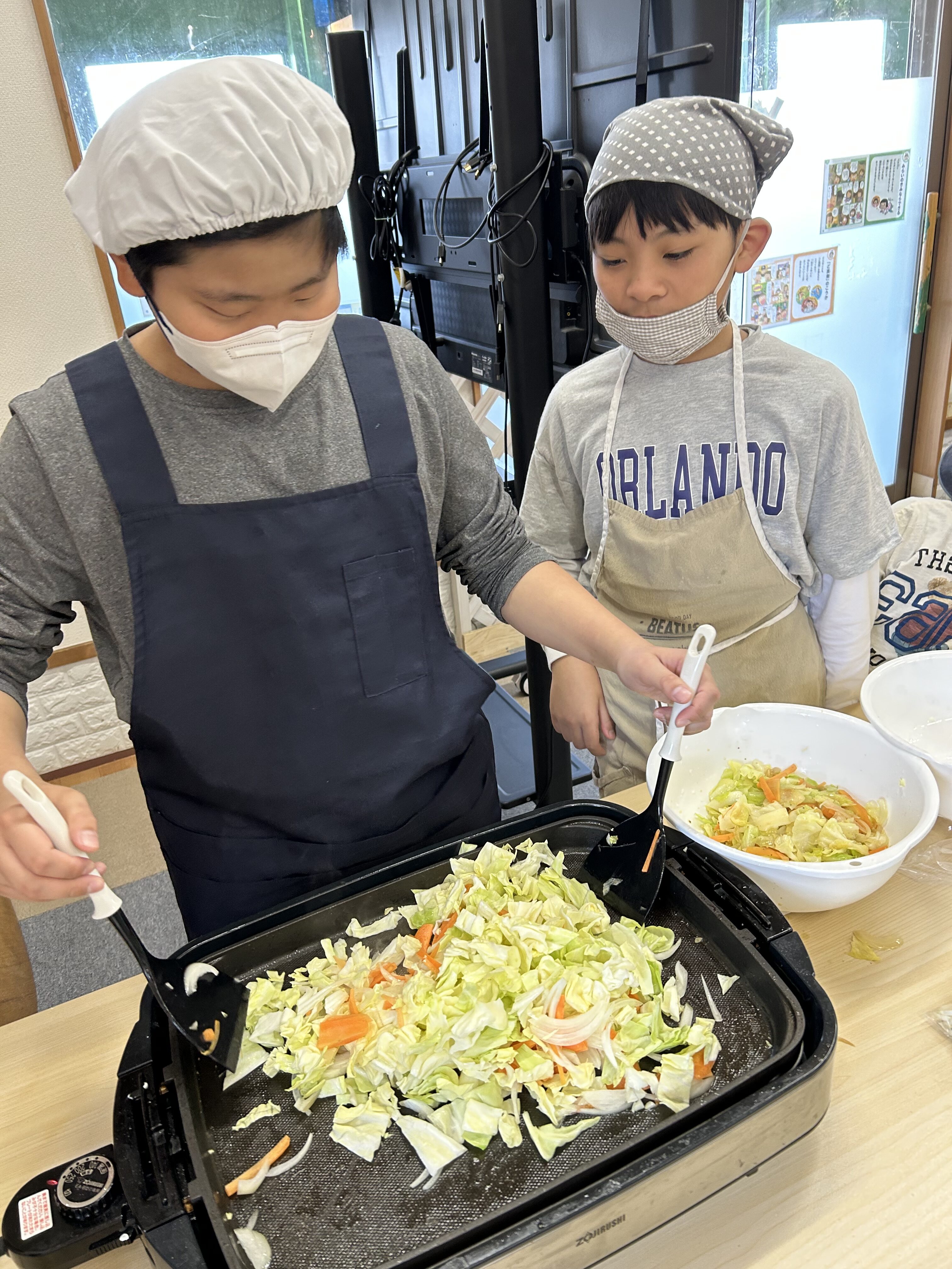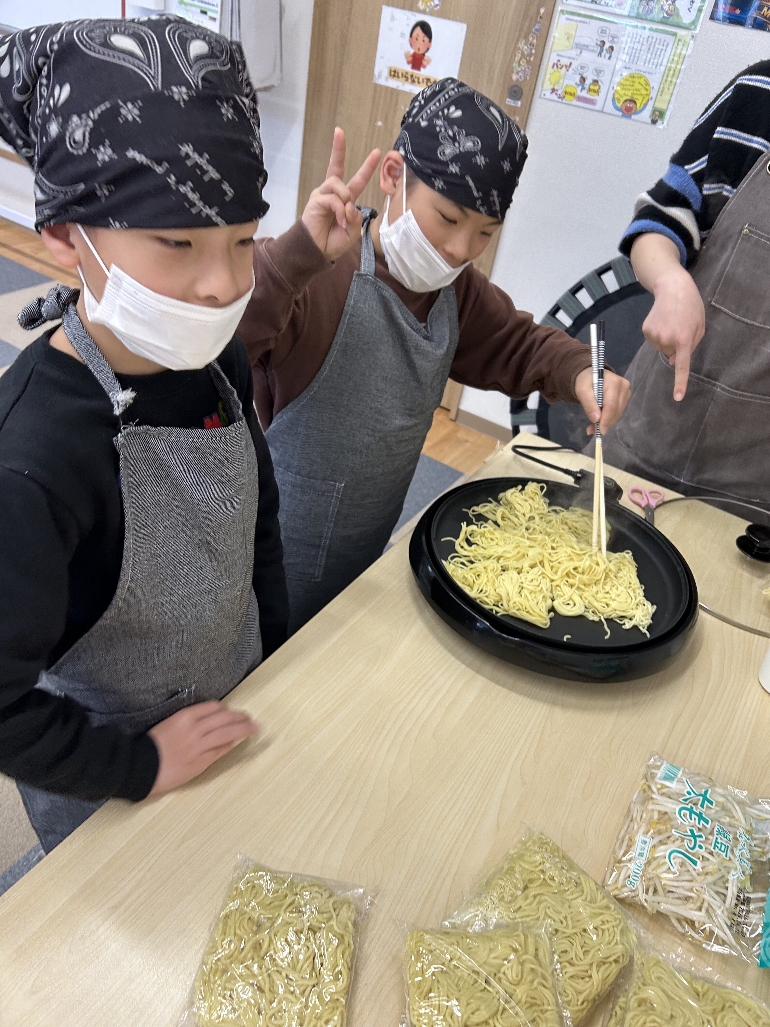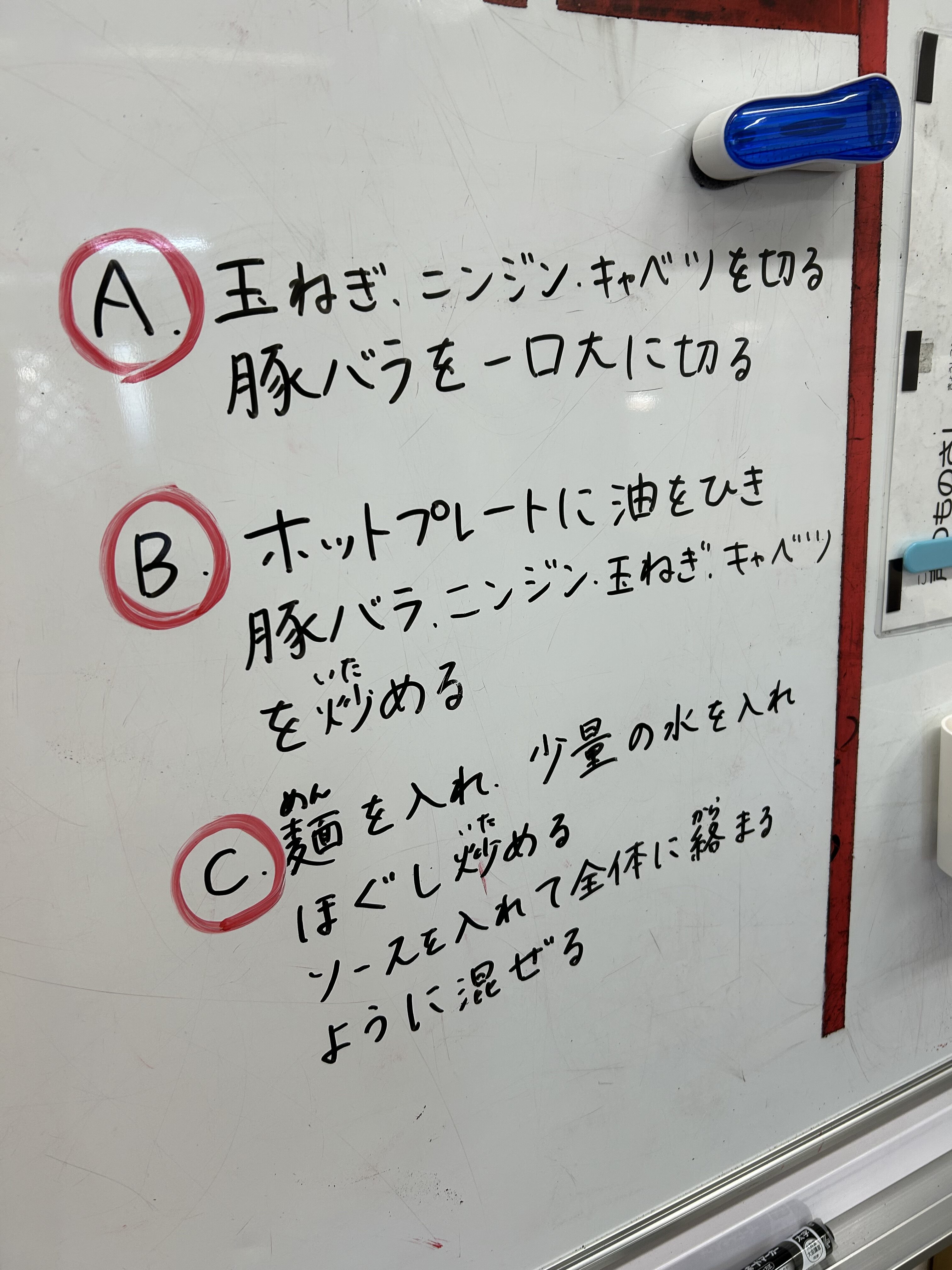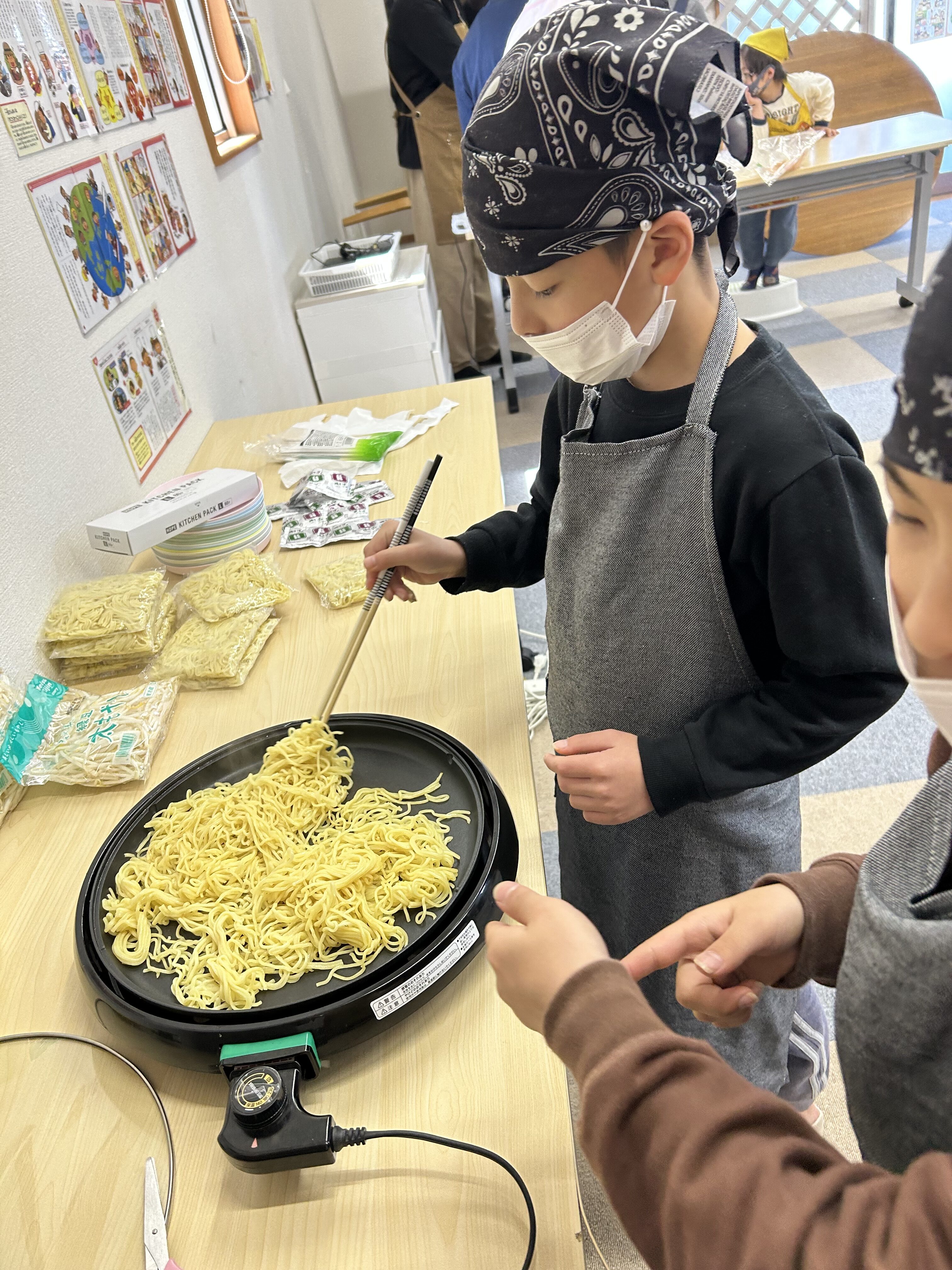 完璧に混ぜ合わせる事ができたら完成✨みんなで協力して作った焼きそばが出来ました‼️
