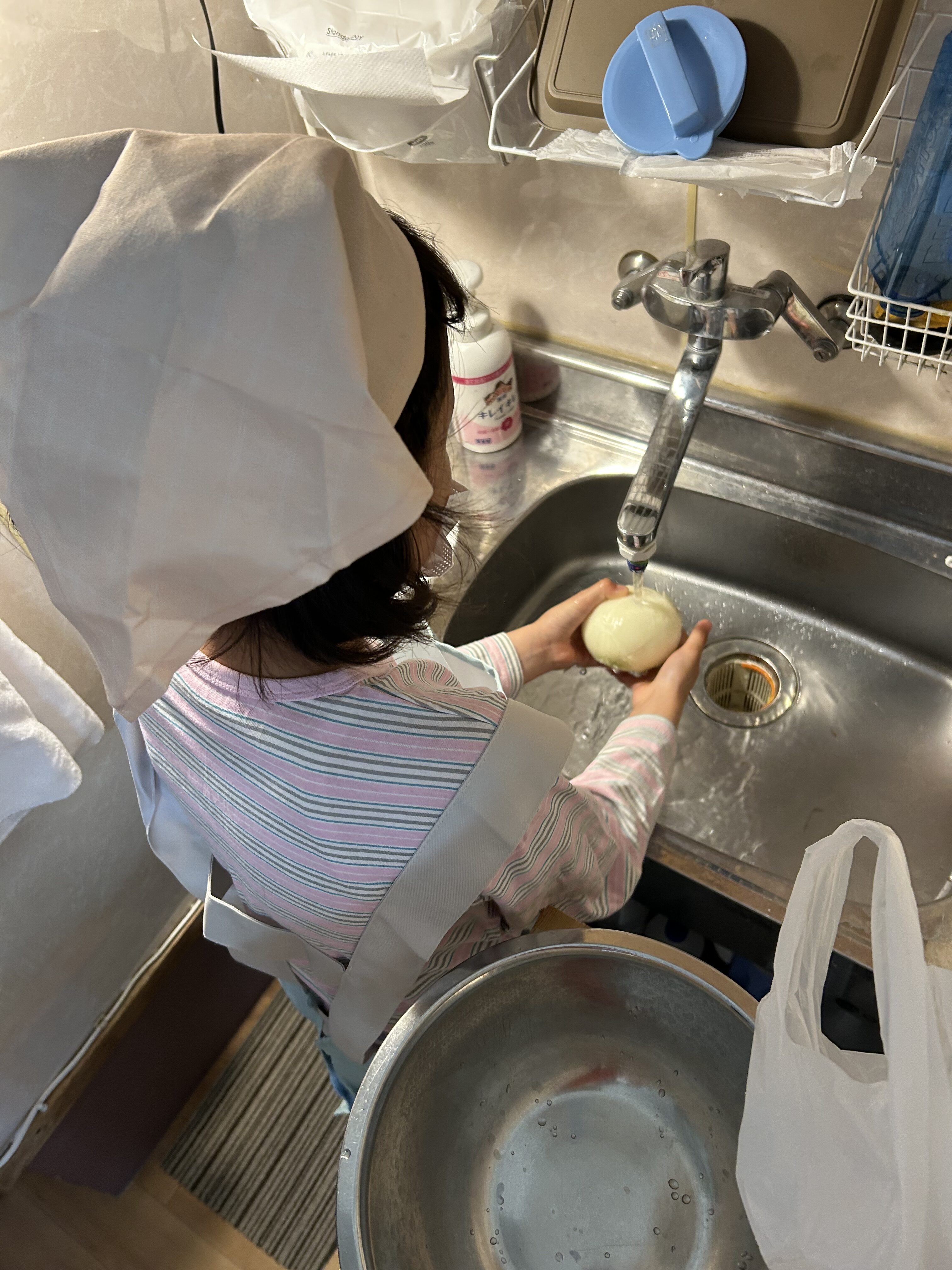 玉ねぎは🧅は外の皮と身を一緒に向かないように剥きました‼️