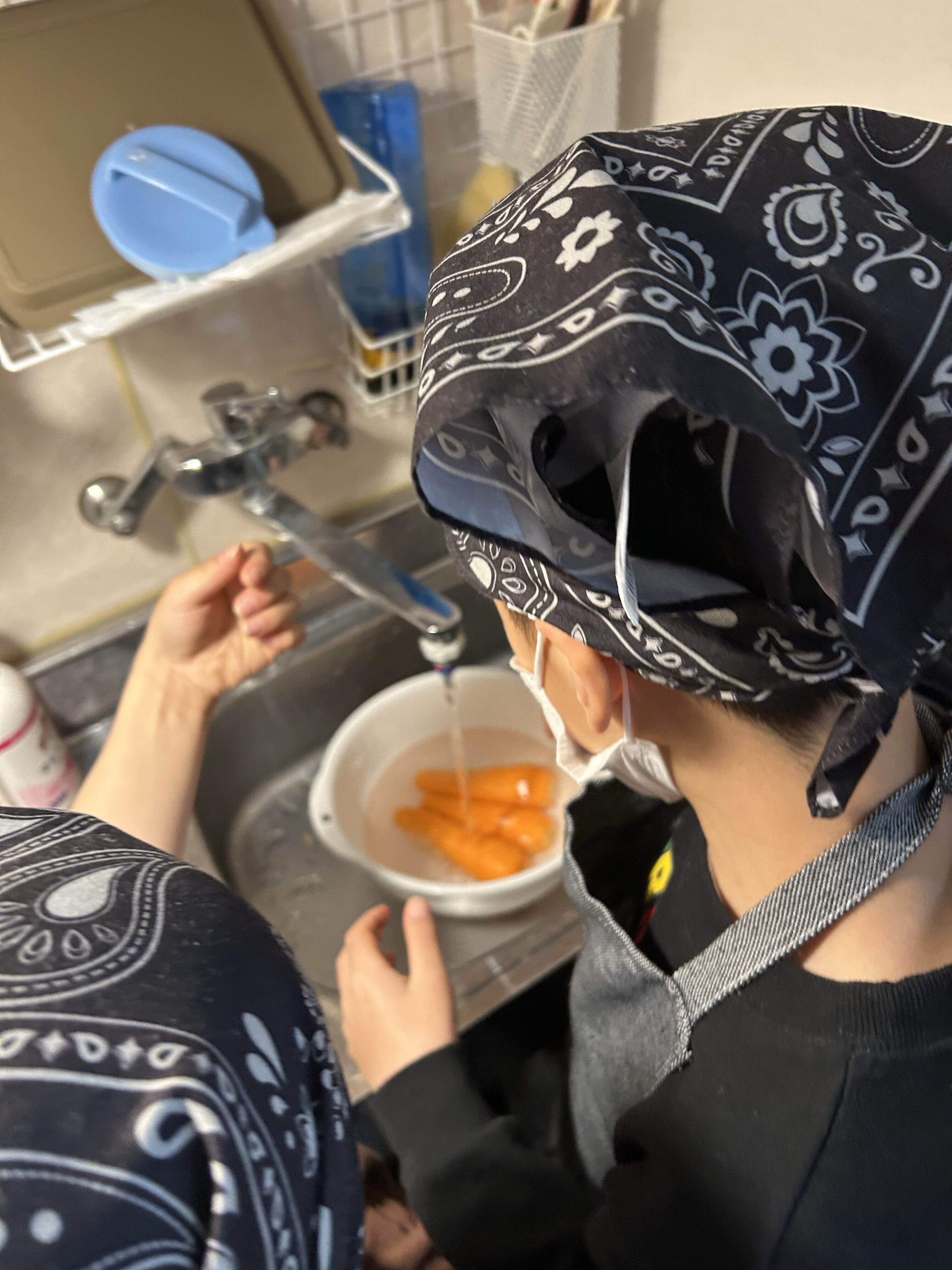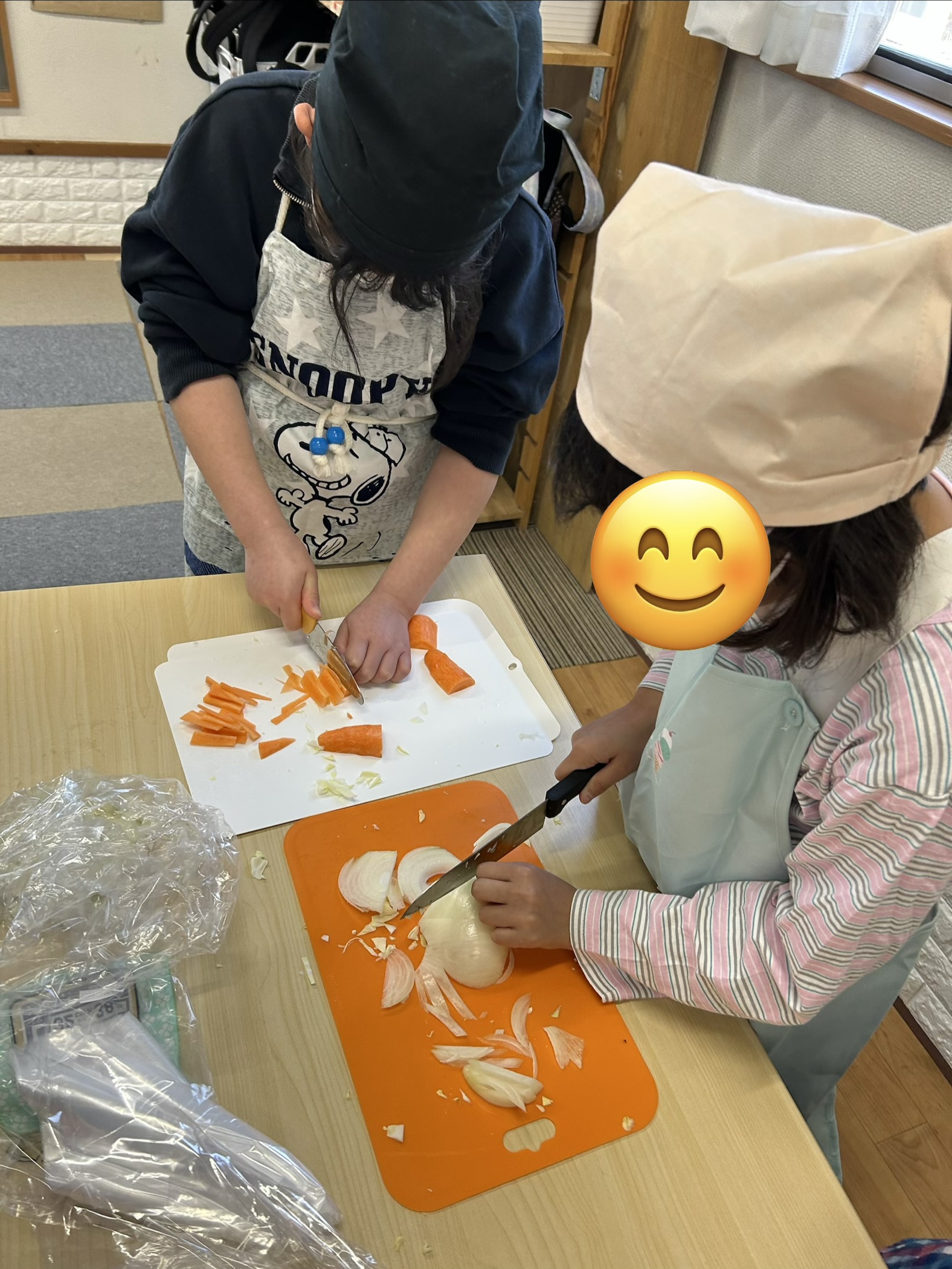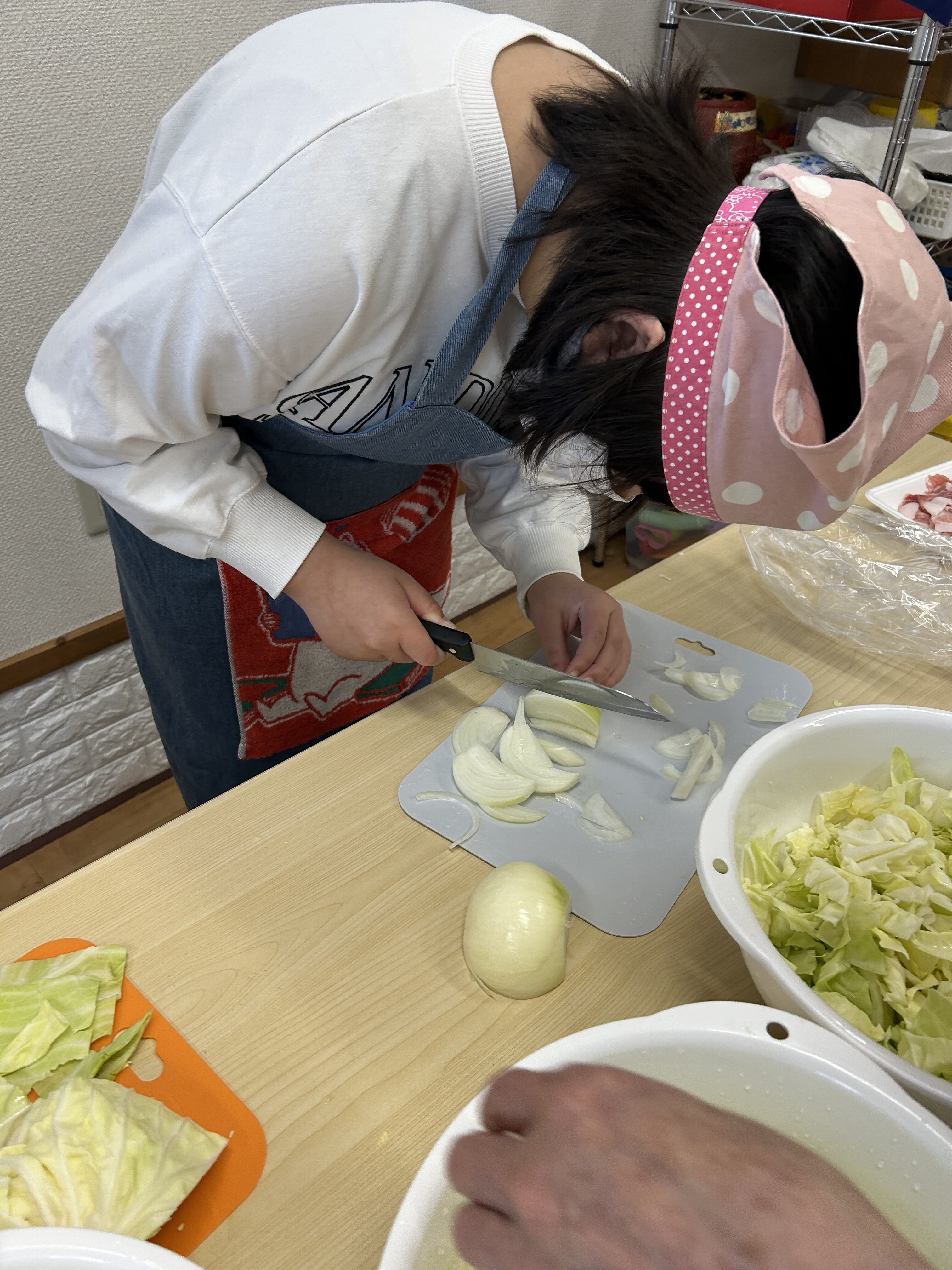 まずはA班が野菜を切っていきます🥕🧅🥬