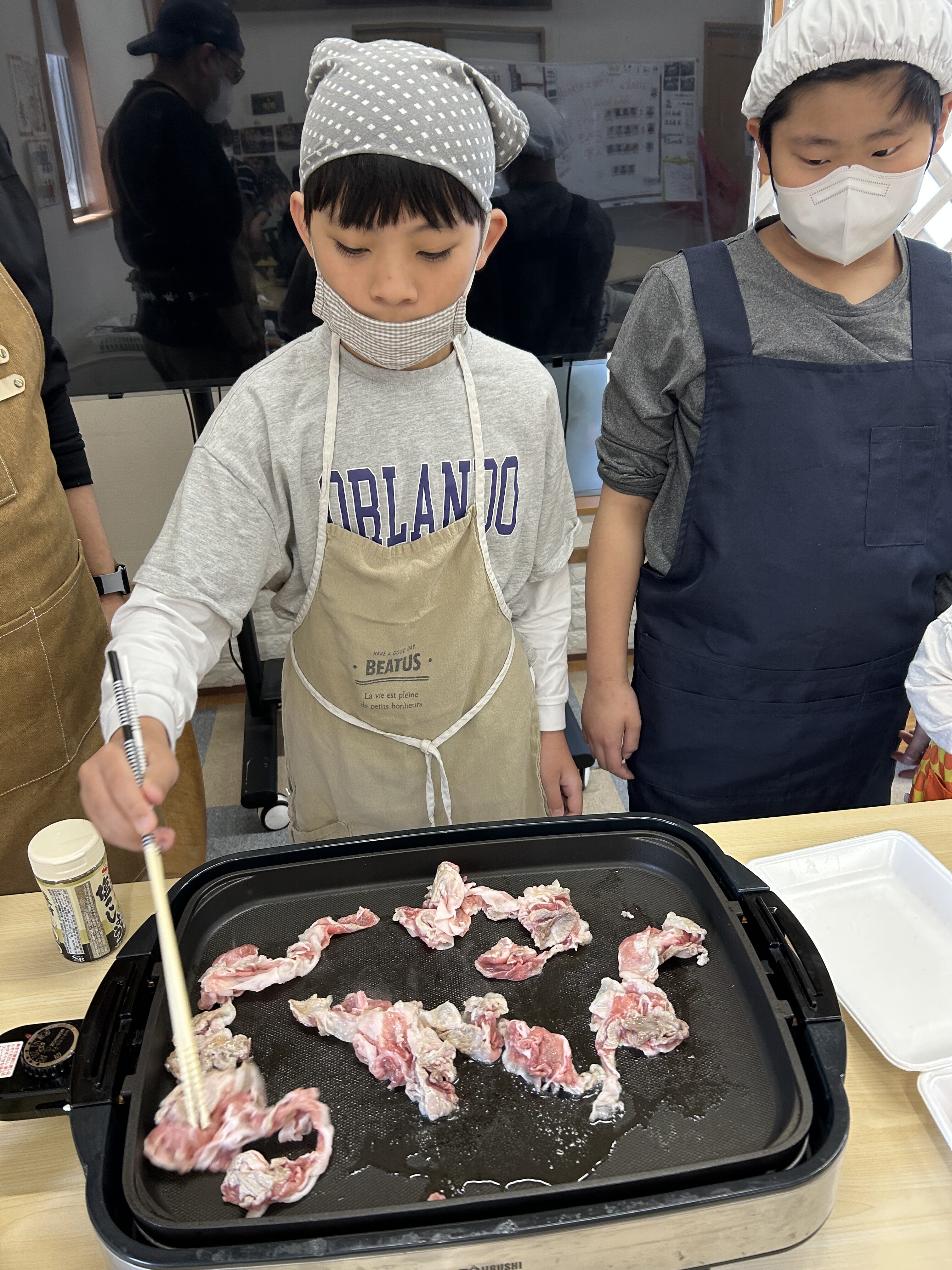 ホットプレートに油を引いてから焼きます‼️上手に焼けるかな⁉️