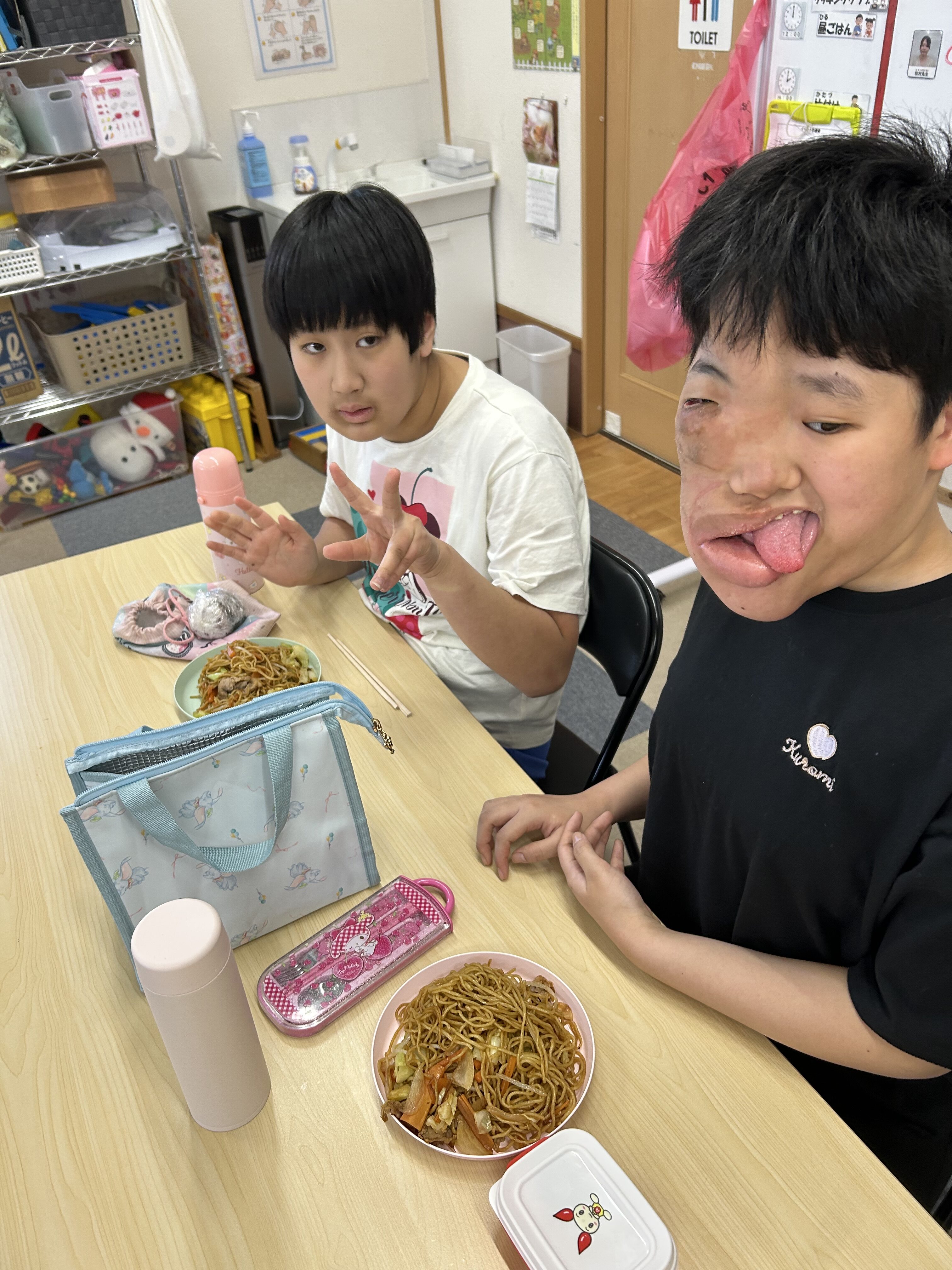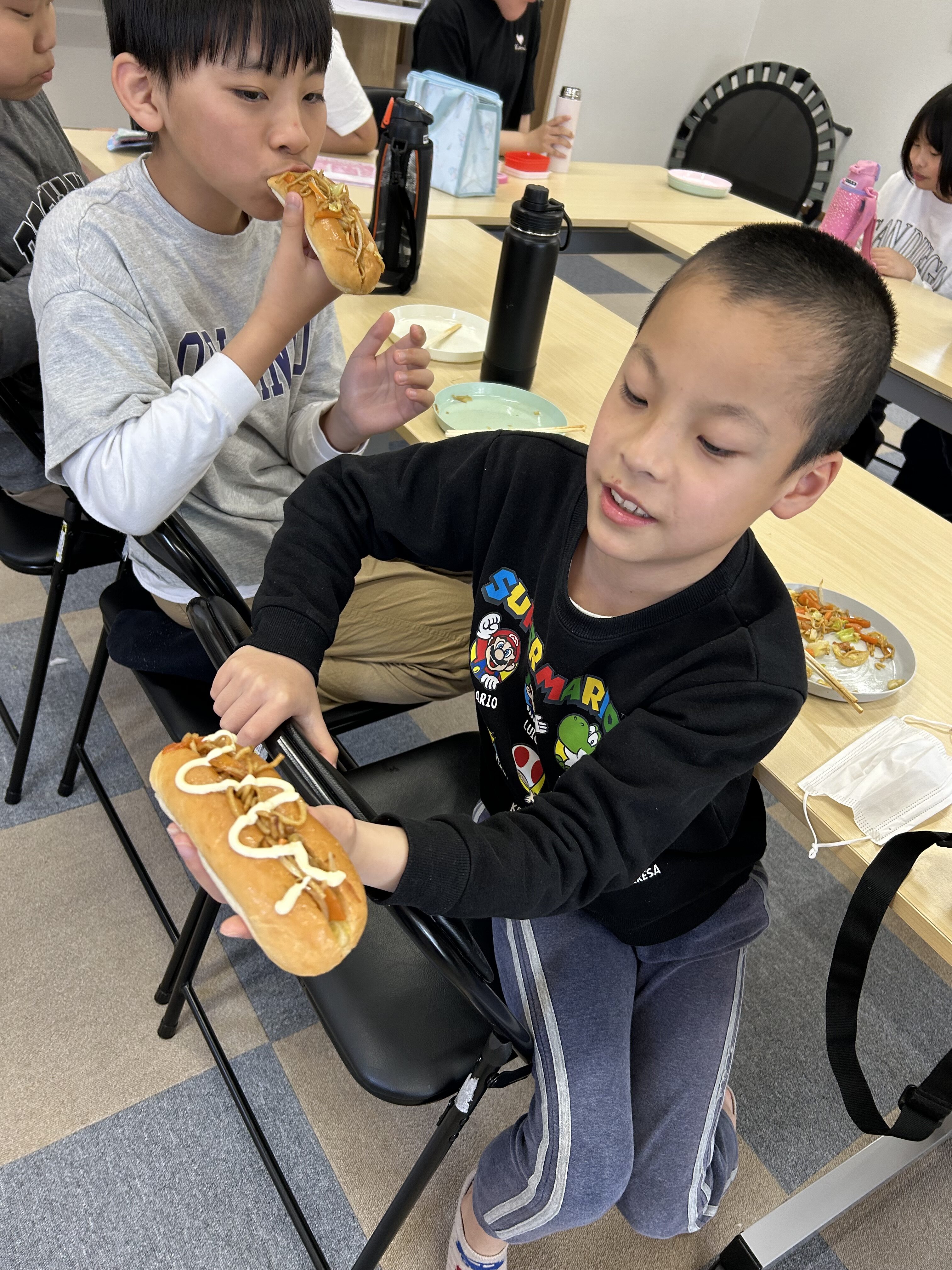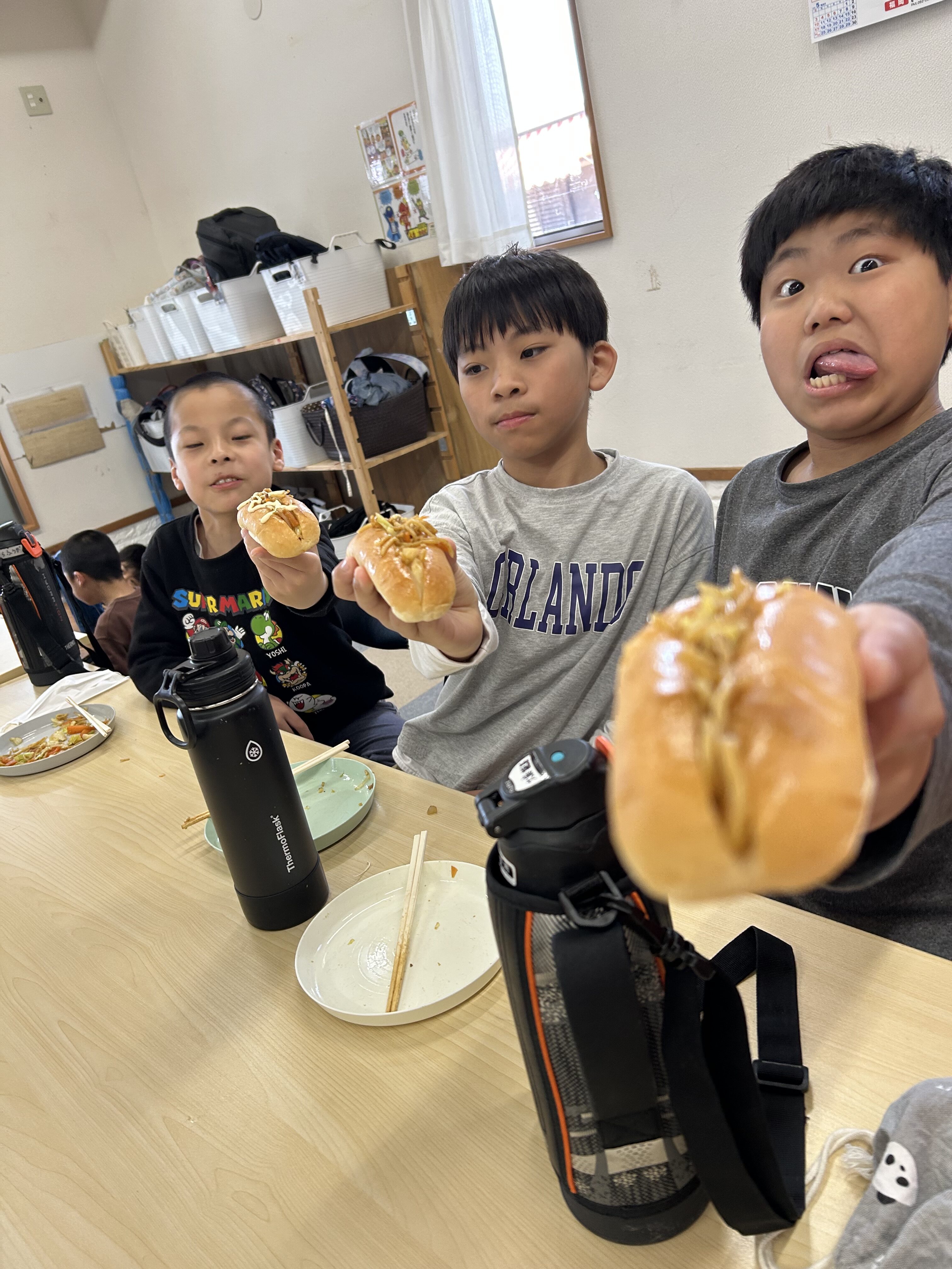 なんとパンを持ってきている子供もいて焼きそばパン🍞にして食べていました😆他の友達にも分けててみんな大喜び🤩とても美味しそうでした‼️