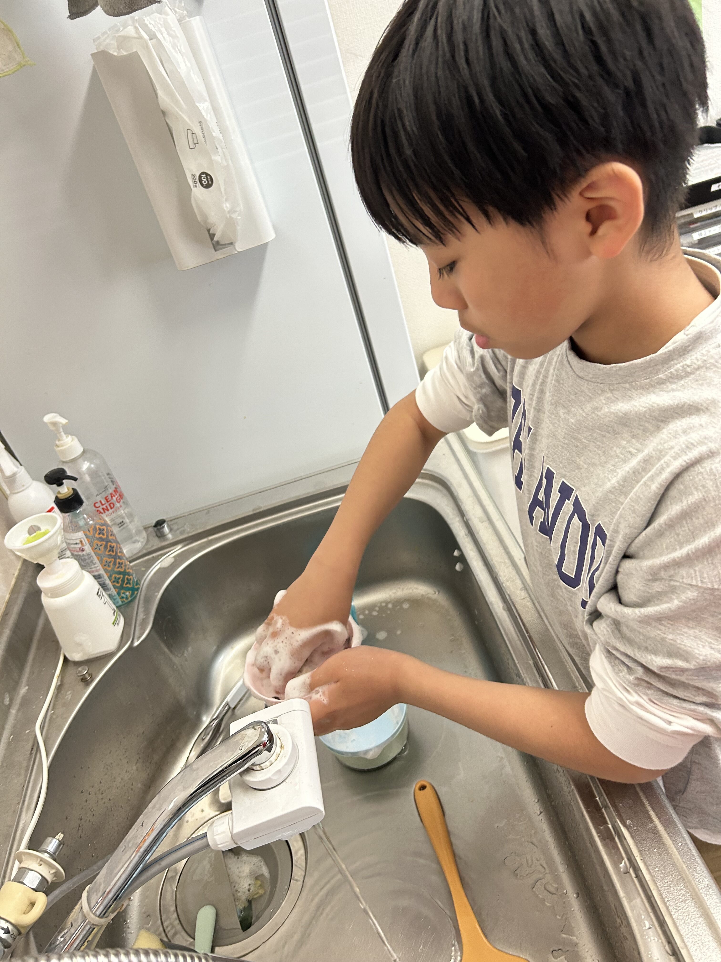 そして今日は中学生のお兄さんお姉さんにはお片付けを手伝ってもらいました‼️上手にお皿を洗ったり、拭いたり出来ていました👍お家でもお手伝いしてね✨