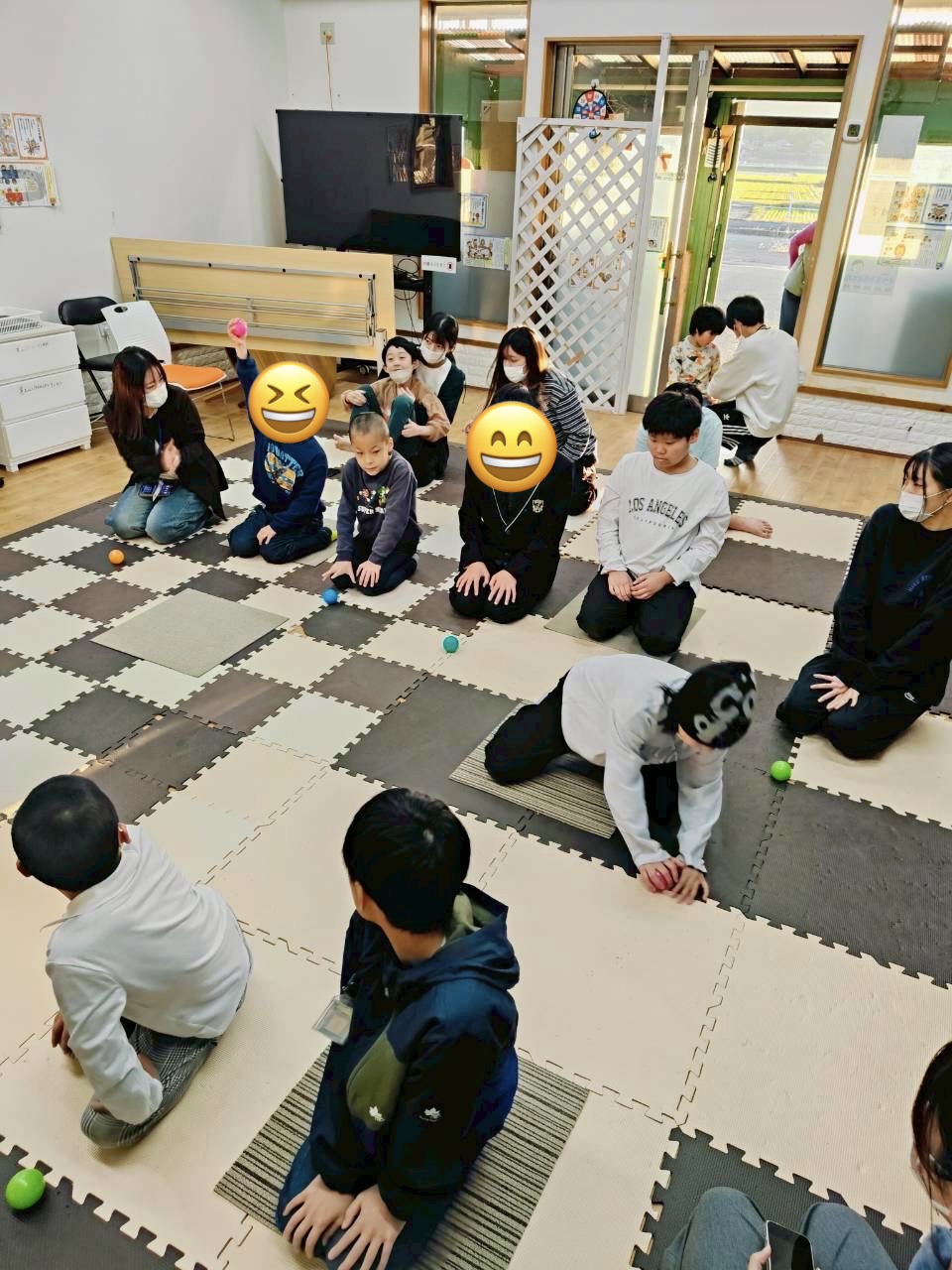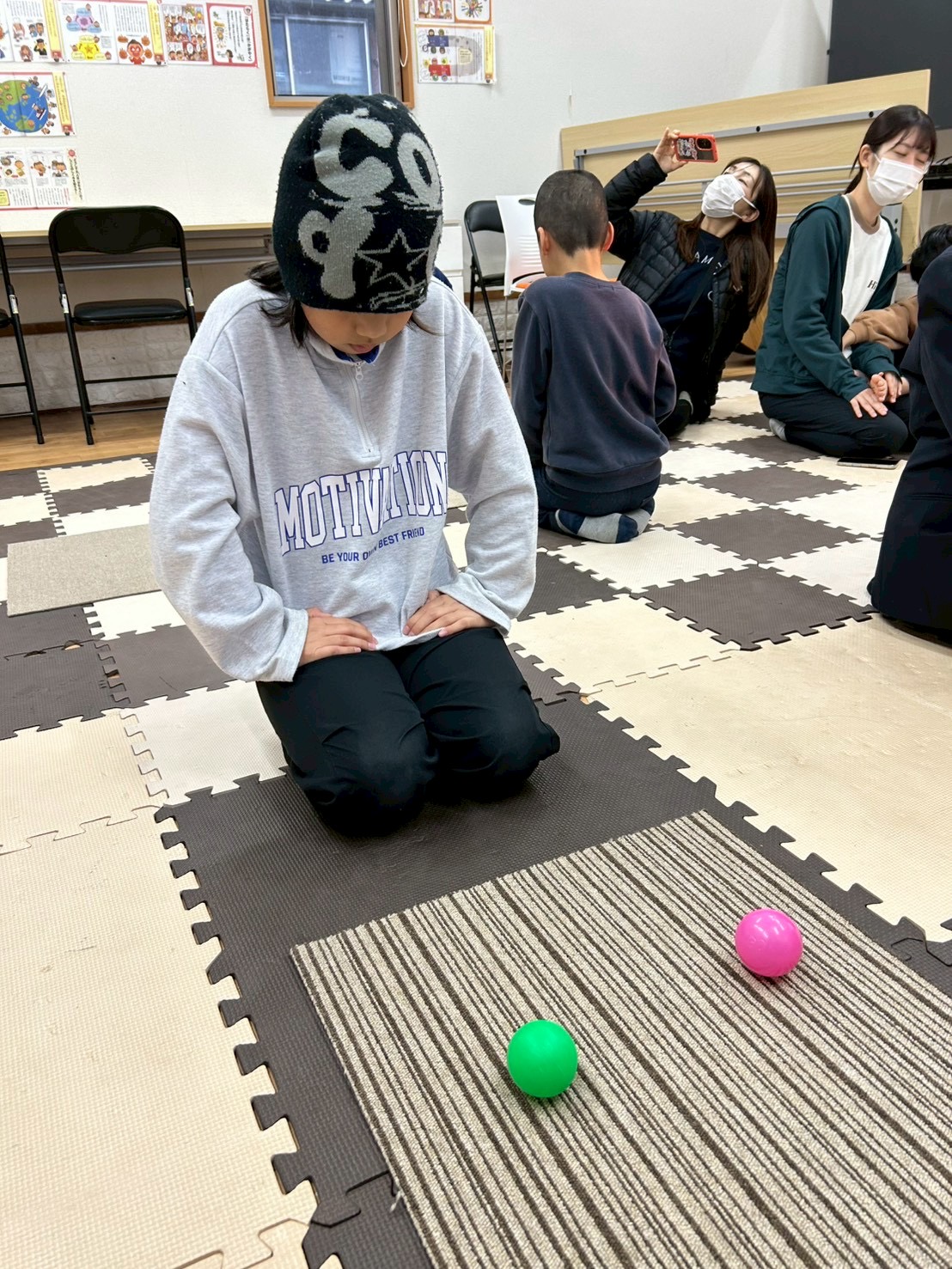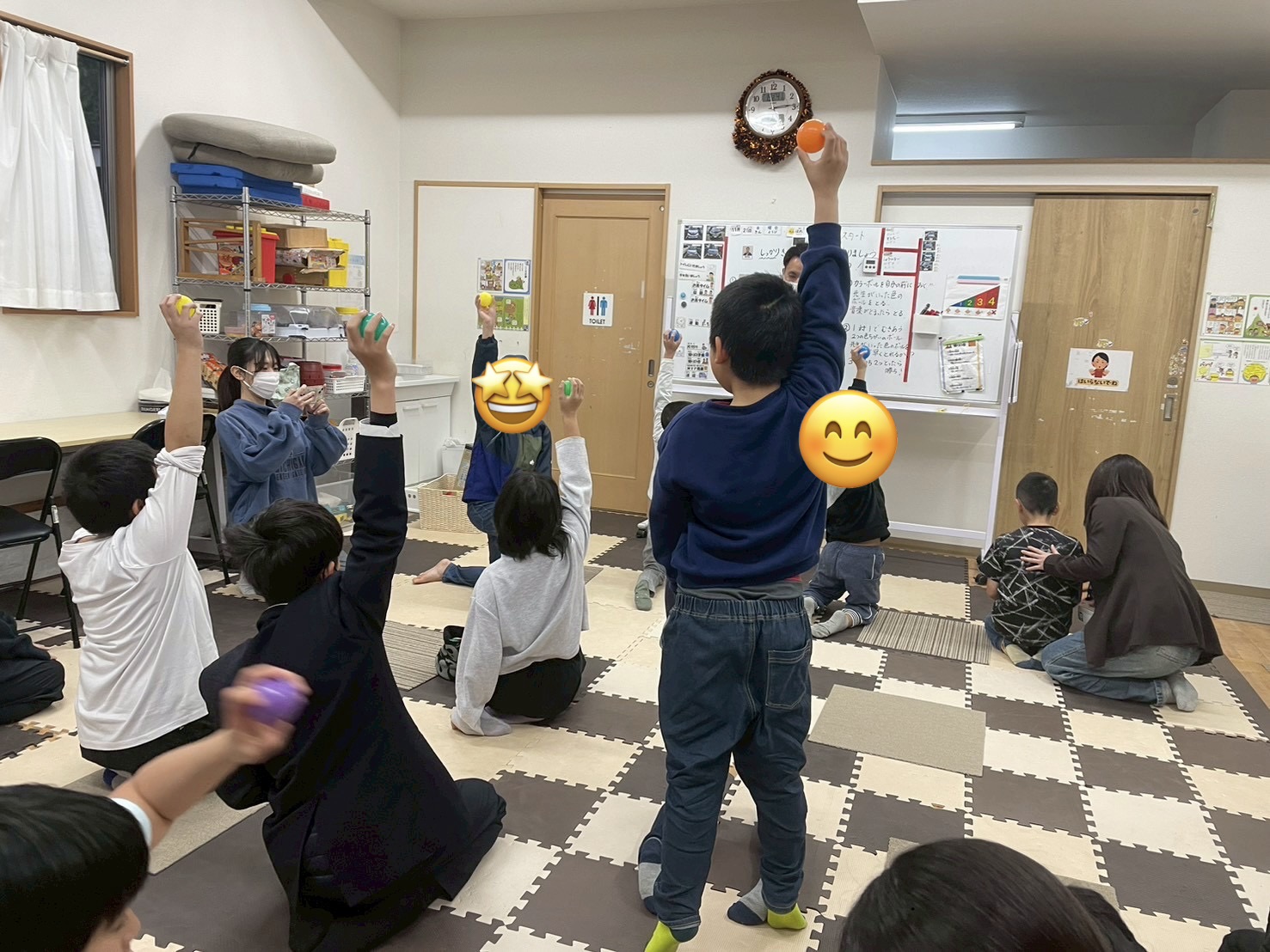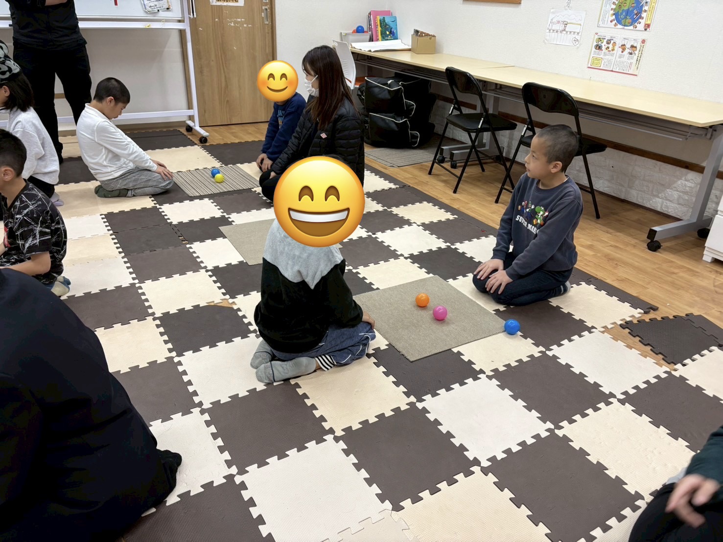 先生から指示があり自分が該当するカラーボールをみんな素早く取れています🤩🤩🤩