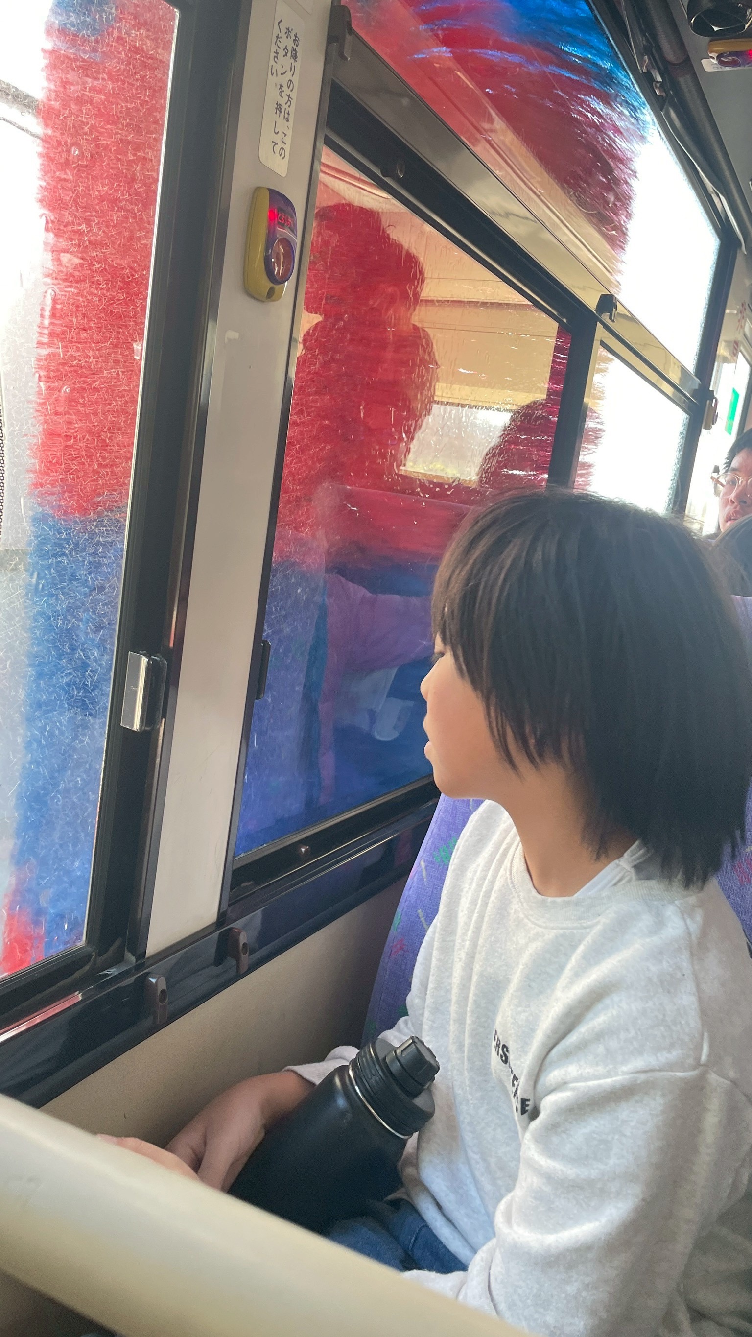 次は、実際にバスに乗車して、移動しながらバスの洗車を体験しました🧽
