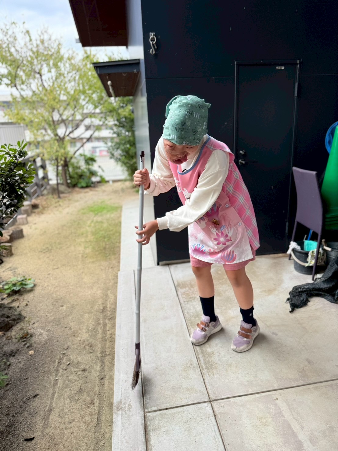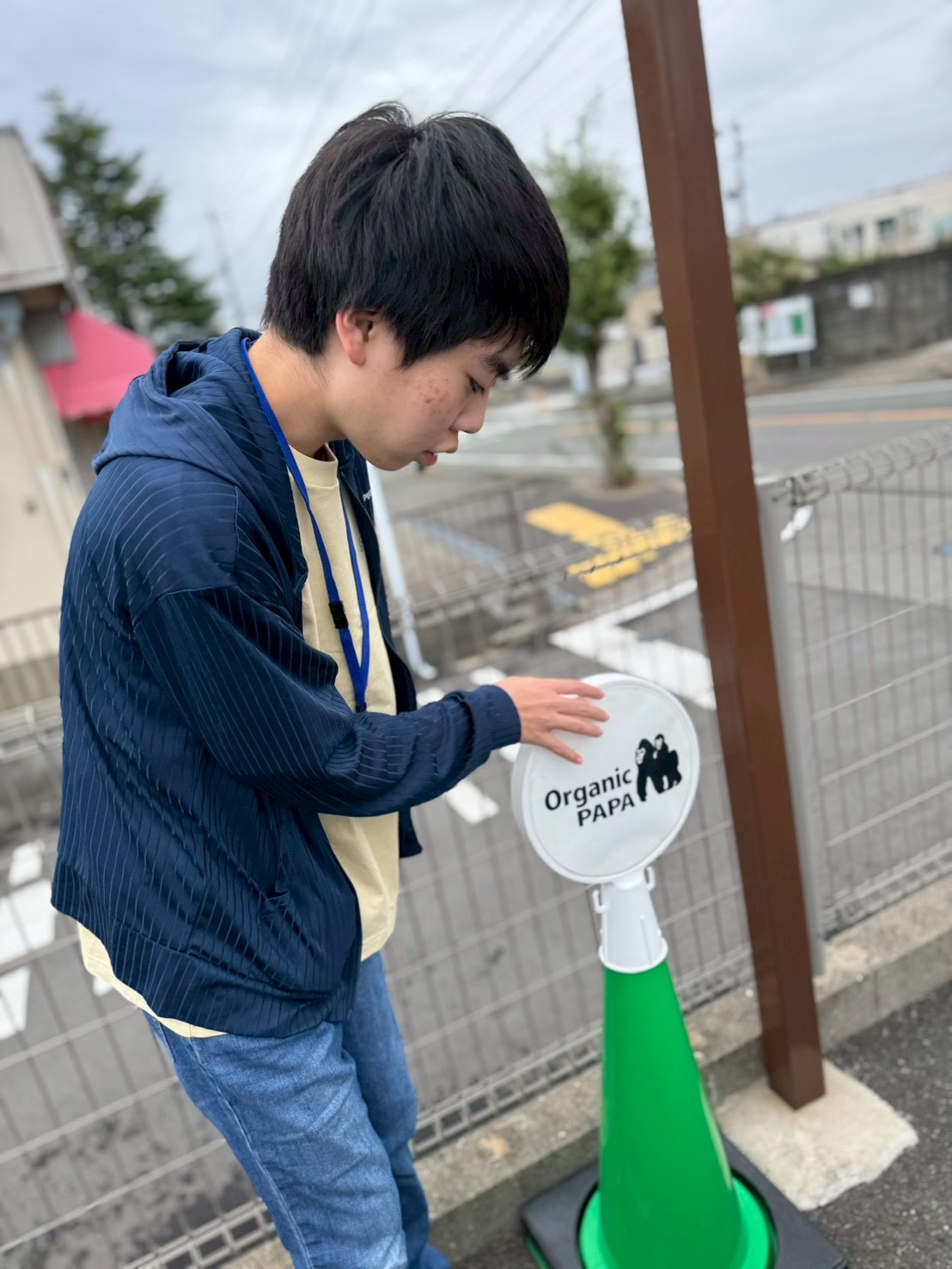 駐車場のコーンを並べたり、お客様が決めたよく来店できるようお店の周りを綺麗に掃いたり🧹