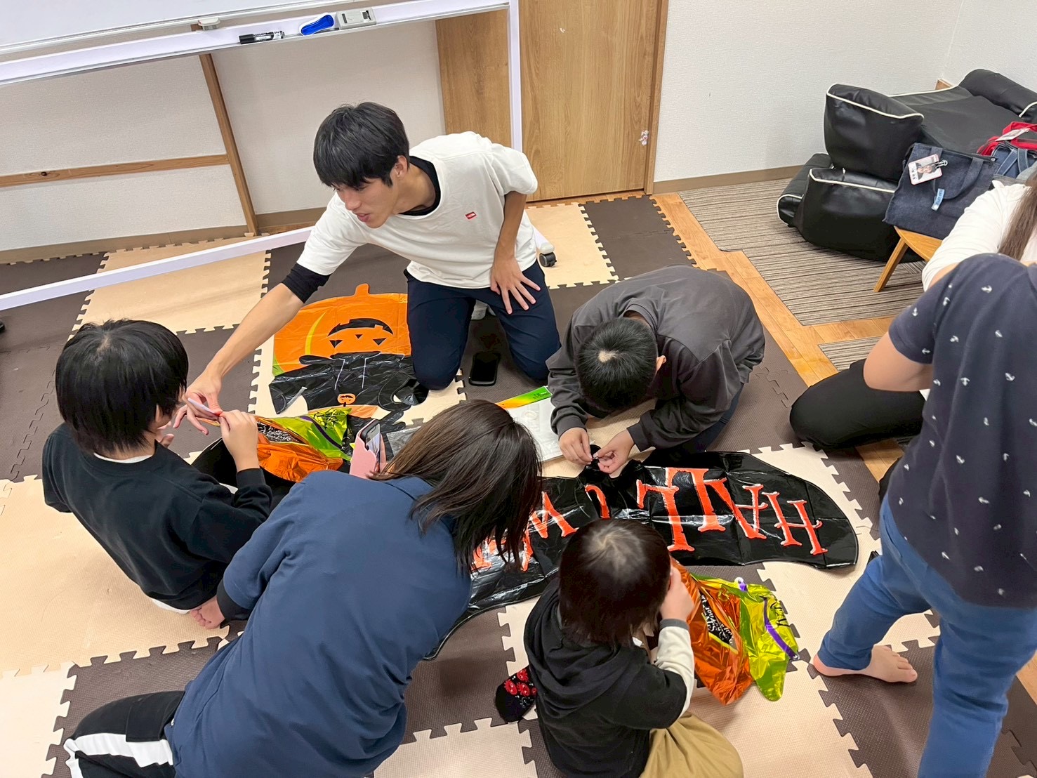 中高生が職場体験へ行っている間、お留守番組はプレイルームをハロウィン仕様に飾りつけしてくれていました🦇