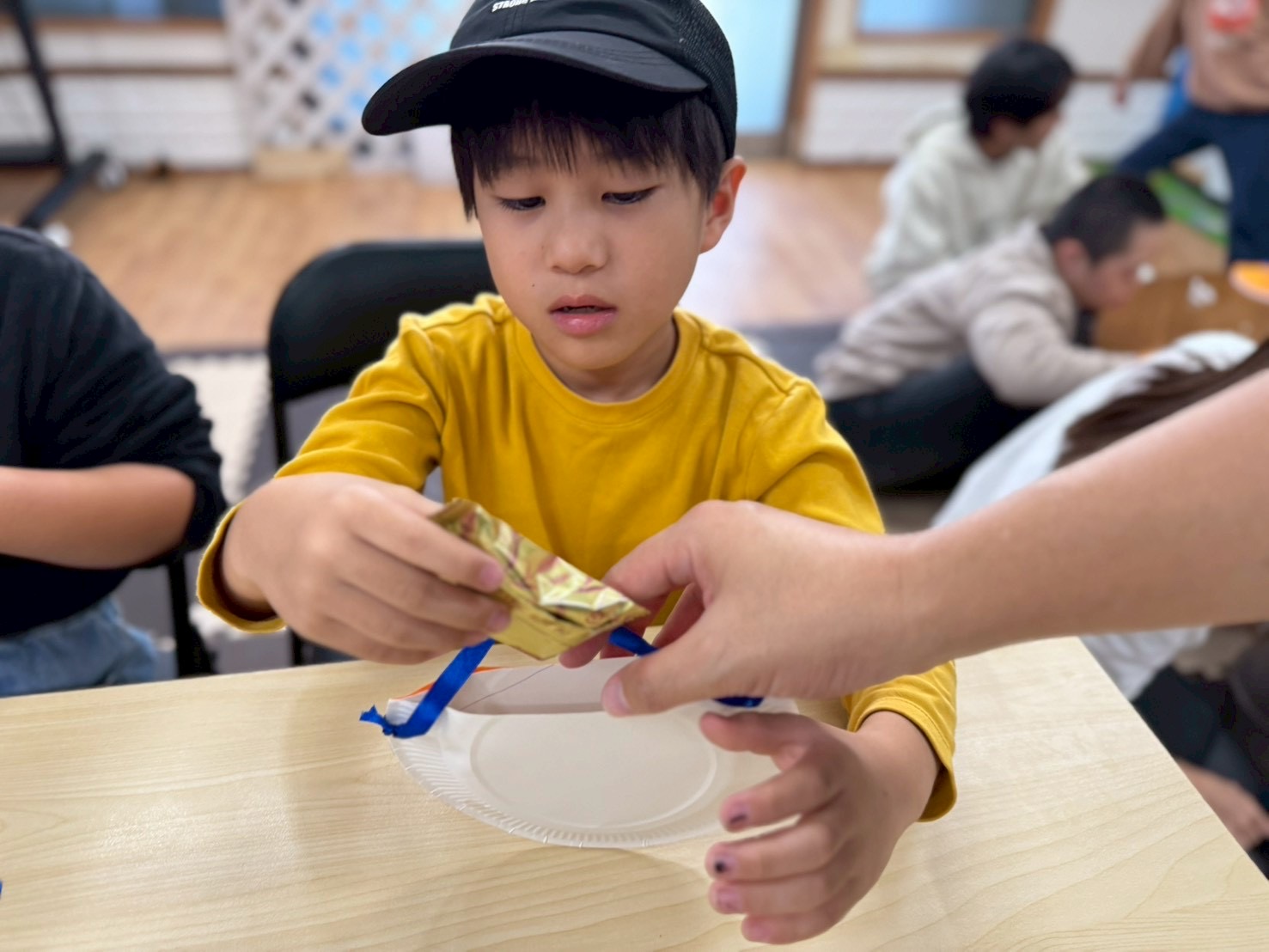 お菓子を詰めてお家に持って帰りました🍪🍫