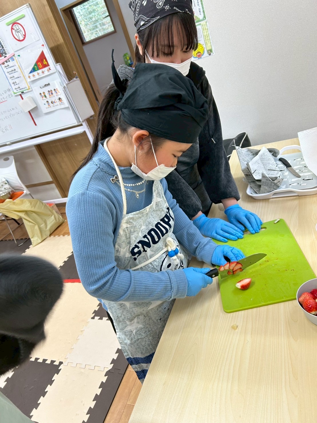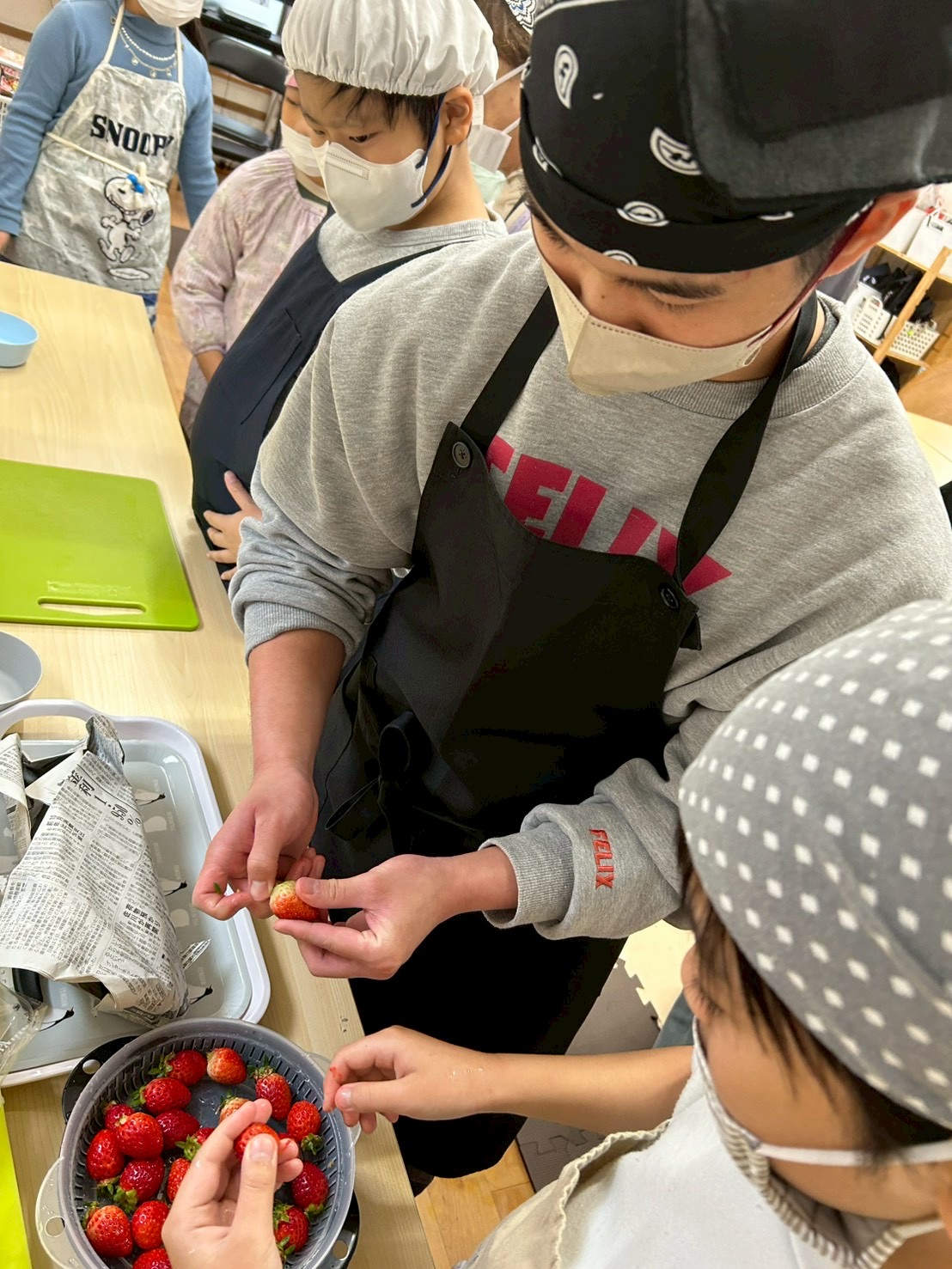 各グループ、食材のカットや生クリームの準備など担当の役割をしっかりこなし、「ここはこうしよう❕」と話し合い、協力しながら作ることができていました🥹✨