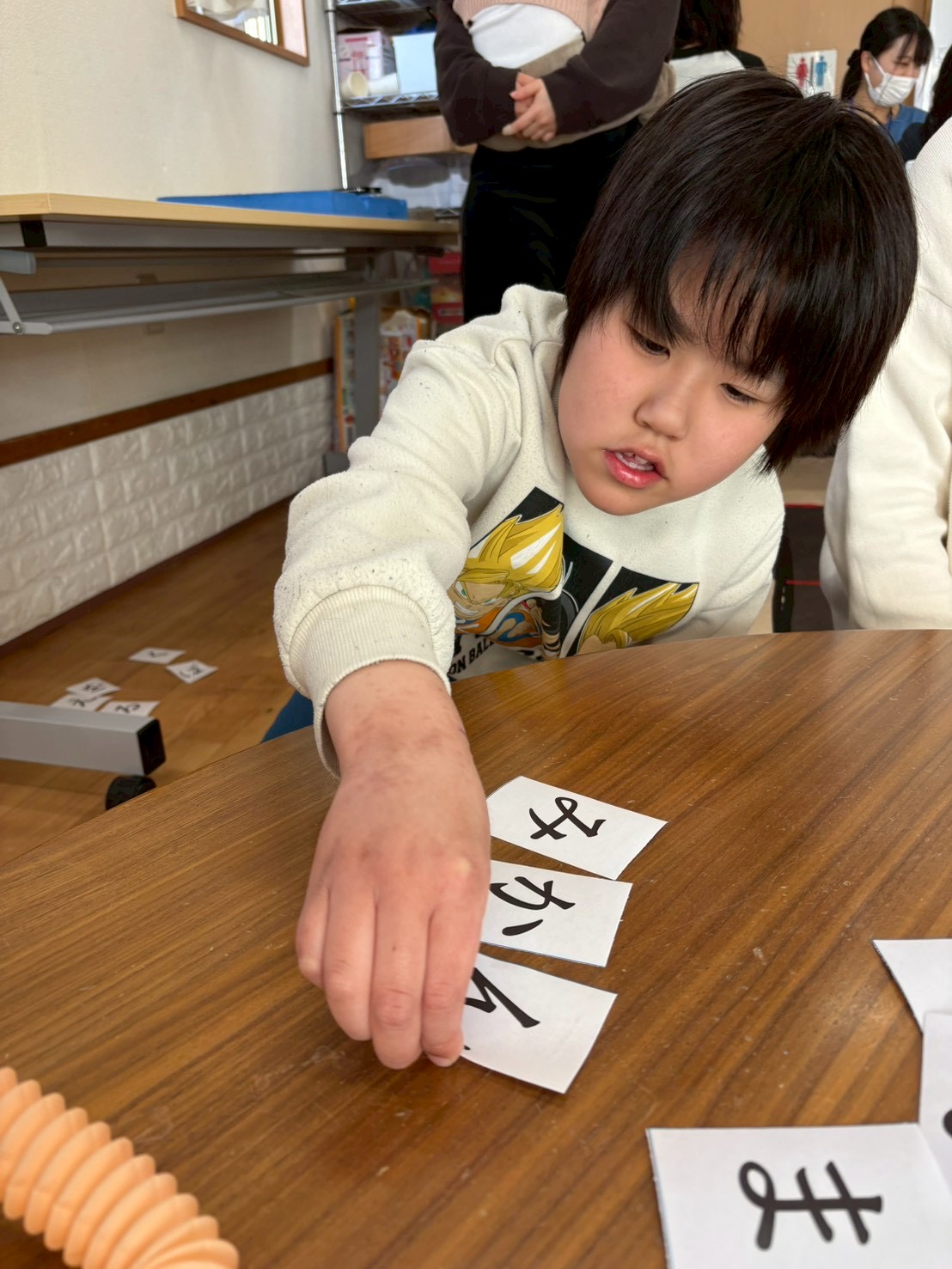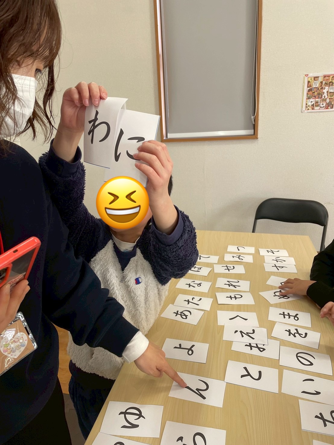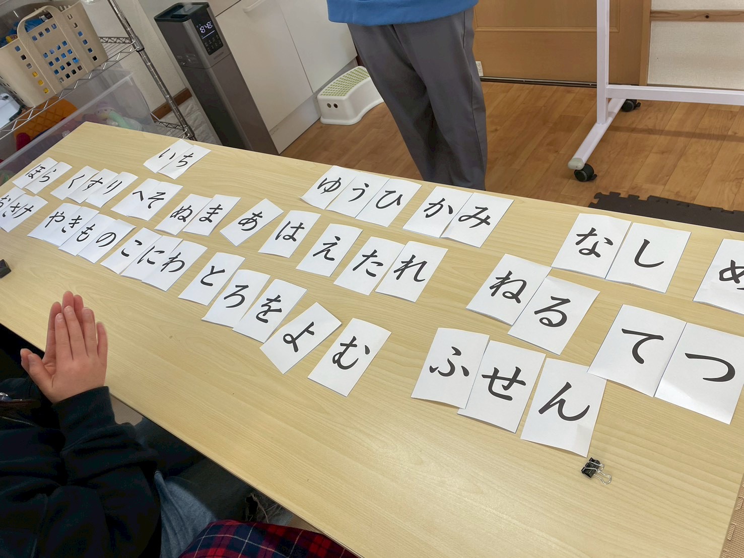 スタッフがお題を出し、そのお題に沿った言葉や単語をひらがなのカードの中から沢山探し出そう🔍というゲームです🪄