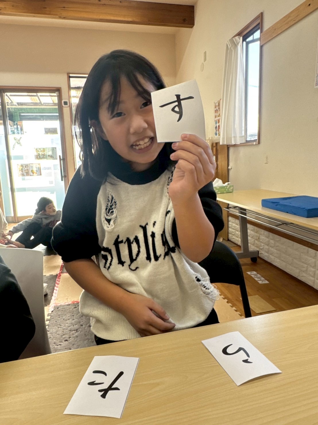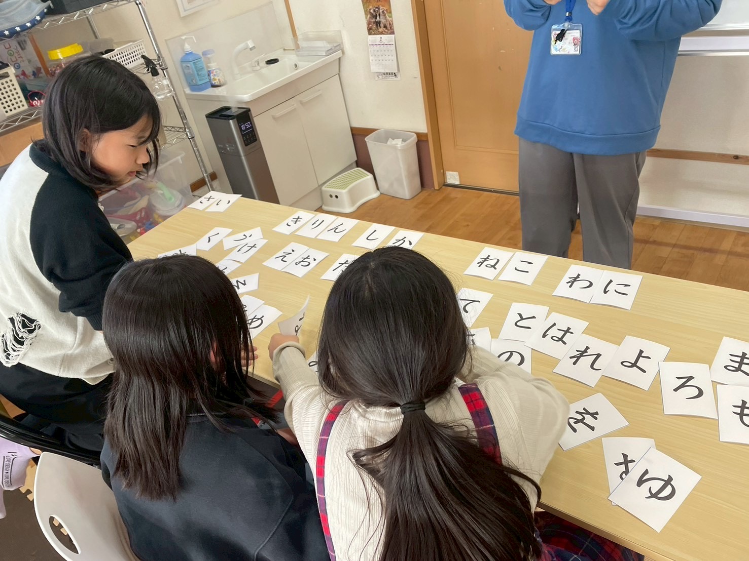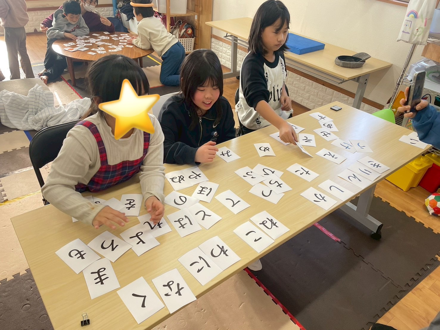 スタッフがお題を出し、そのお題に沿った言葉や単語をひらがなのカードの中から沢山探し出そう🔍というゲームです🪄