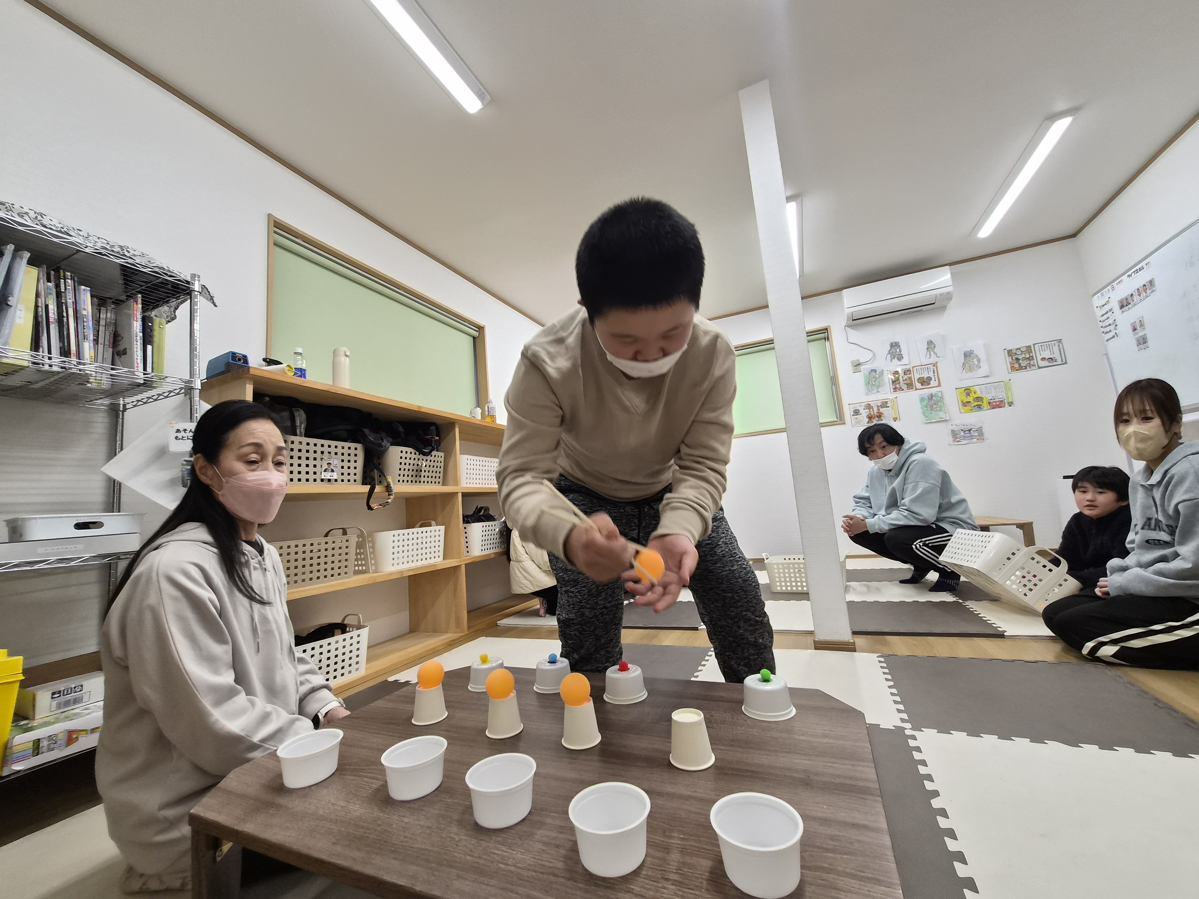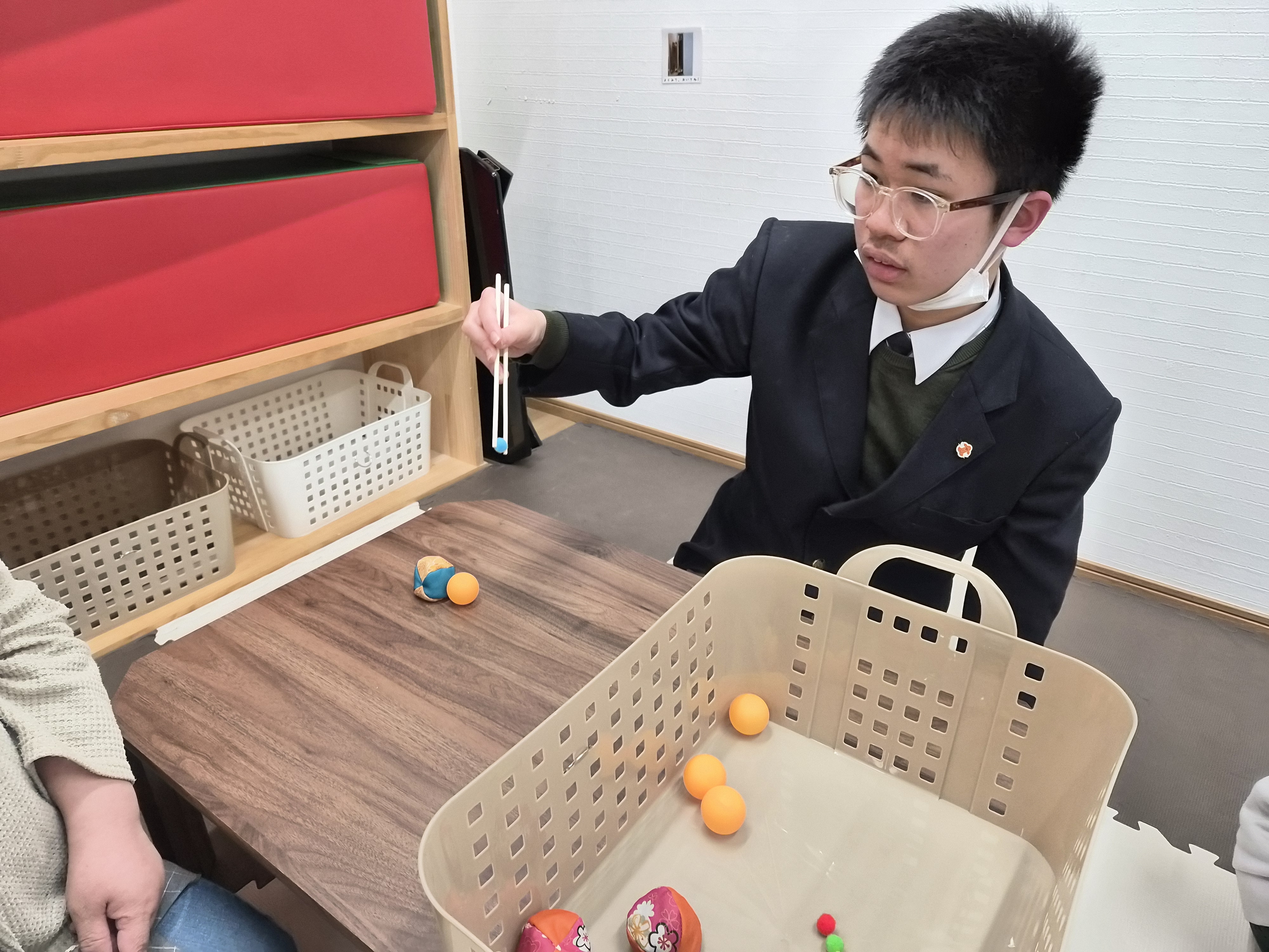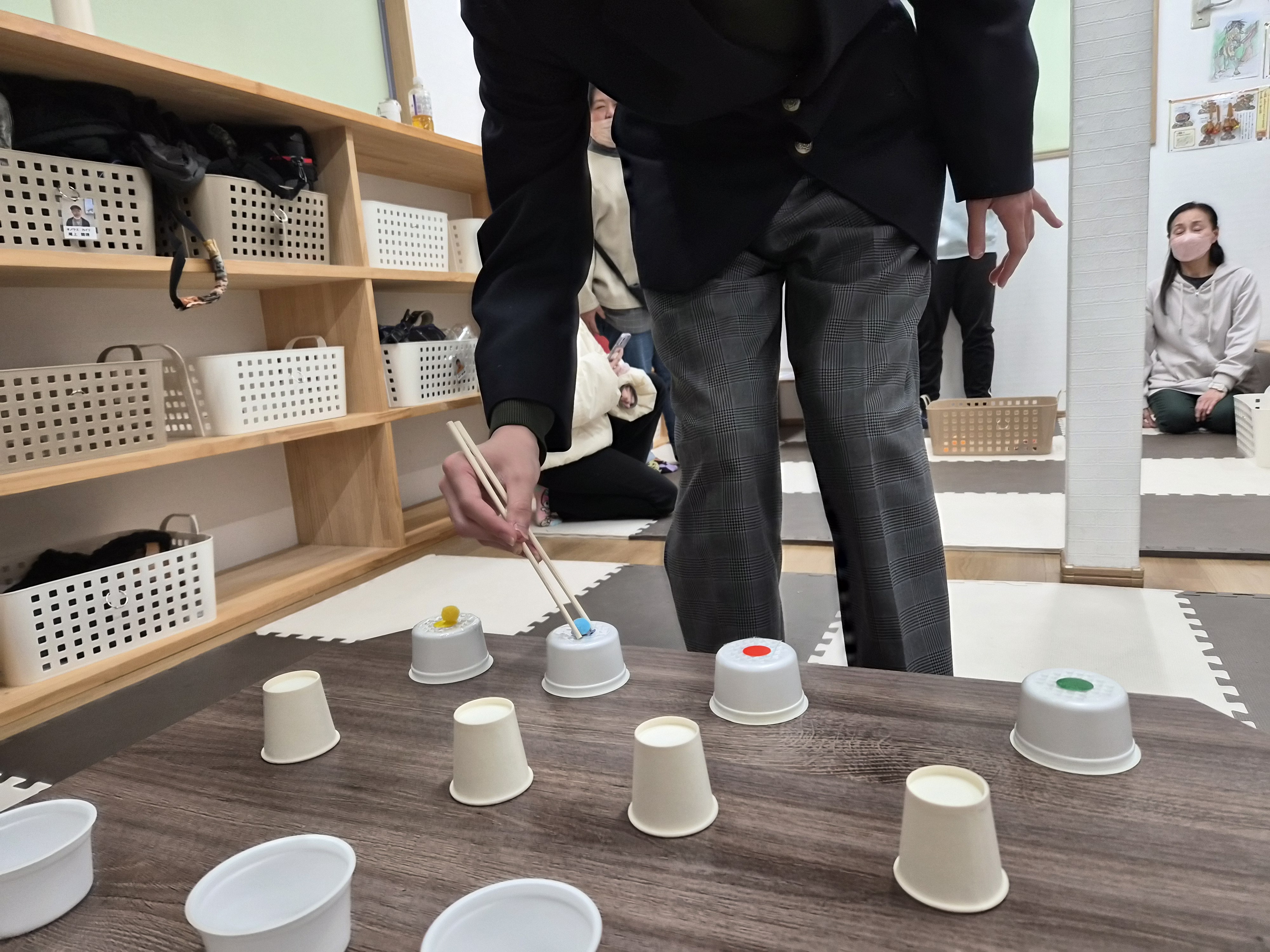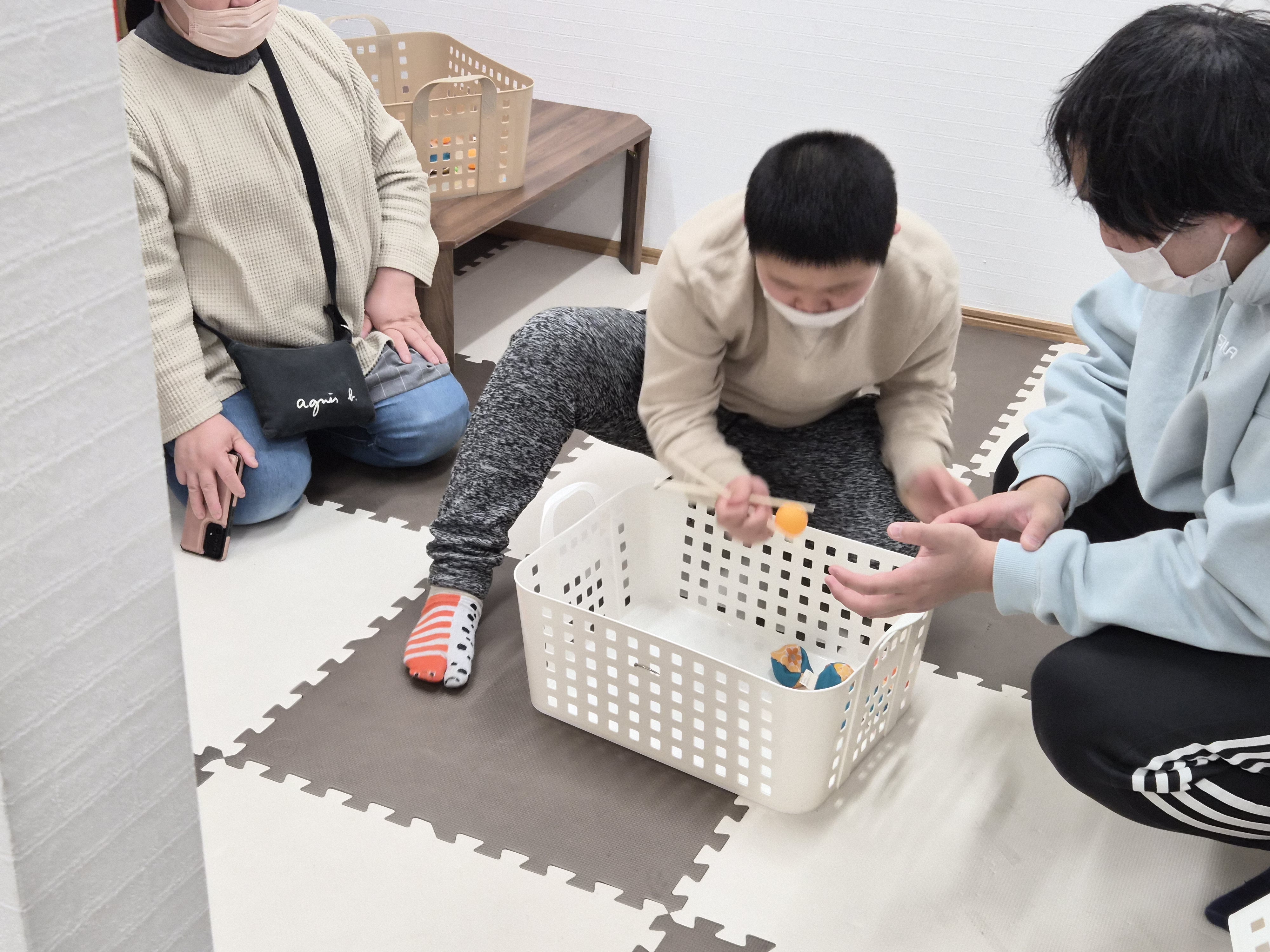 本日の活動では、お箸を使って指先の感覚やものをつかむ際の力加減等…を意識出来るように取り組みました🥢