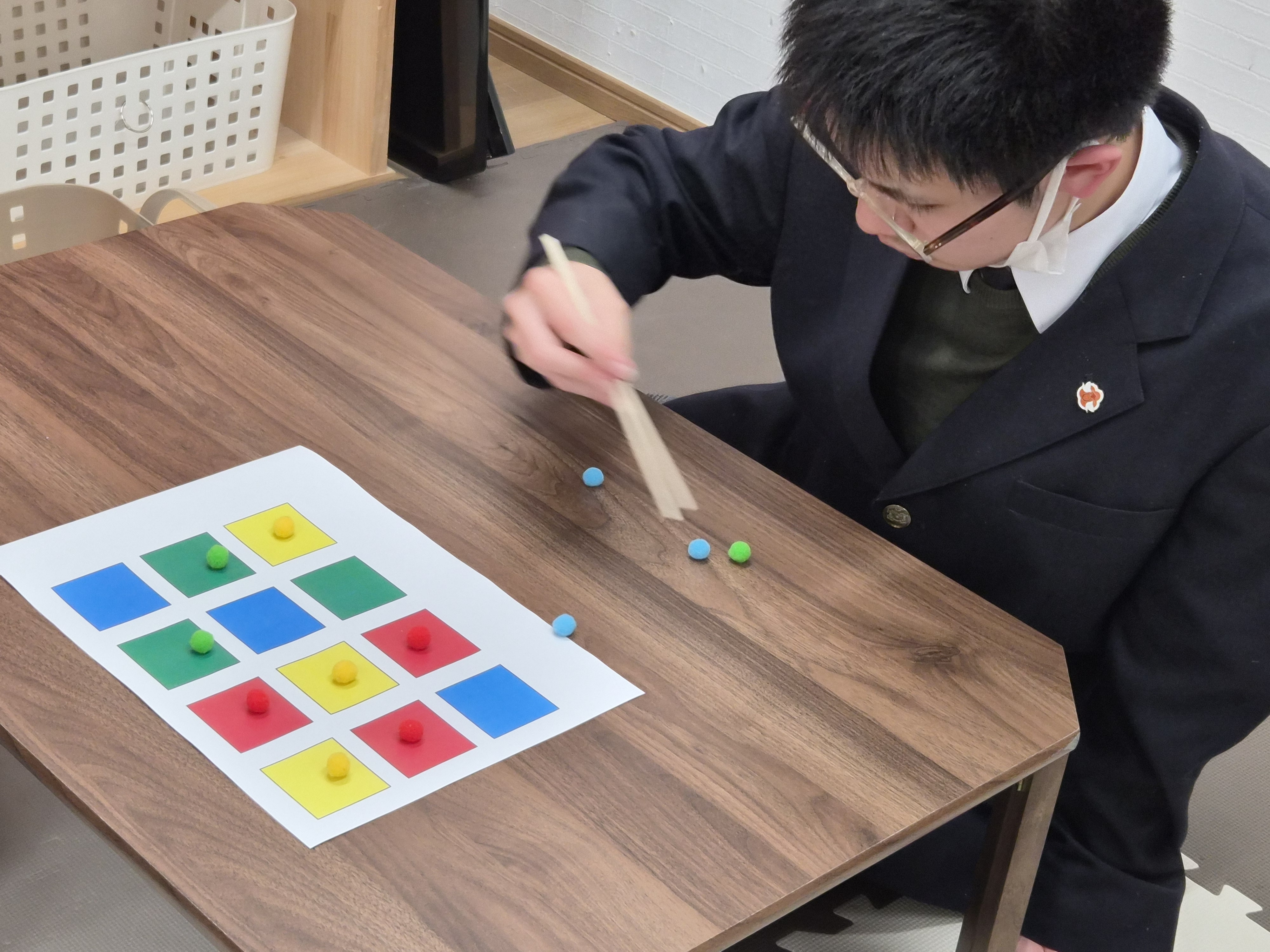 決められた場所に置く❗という作業をしました💦もちろんお箸🥢を使っておこないます❗