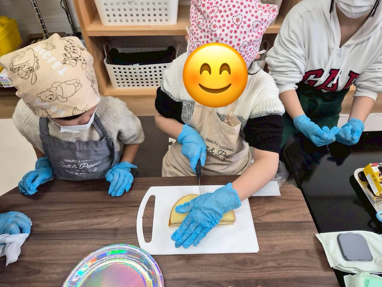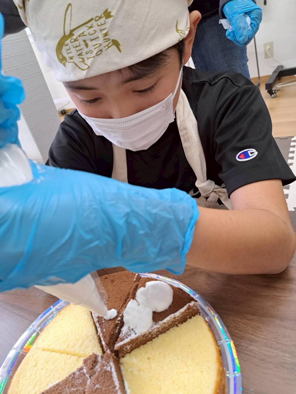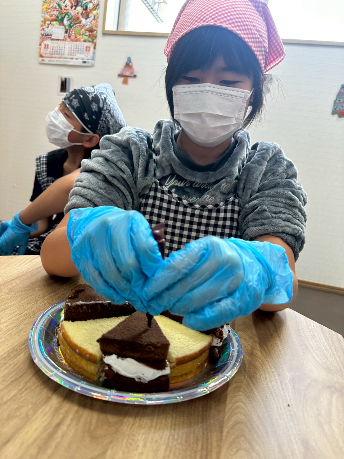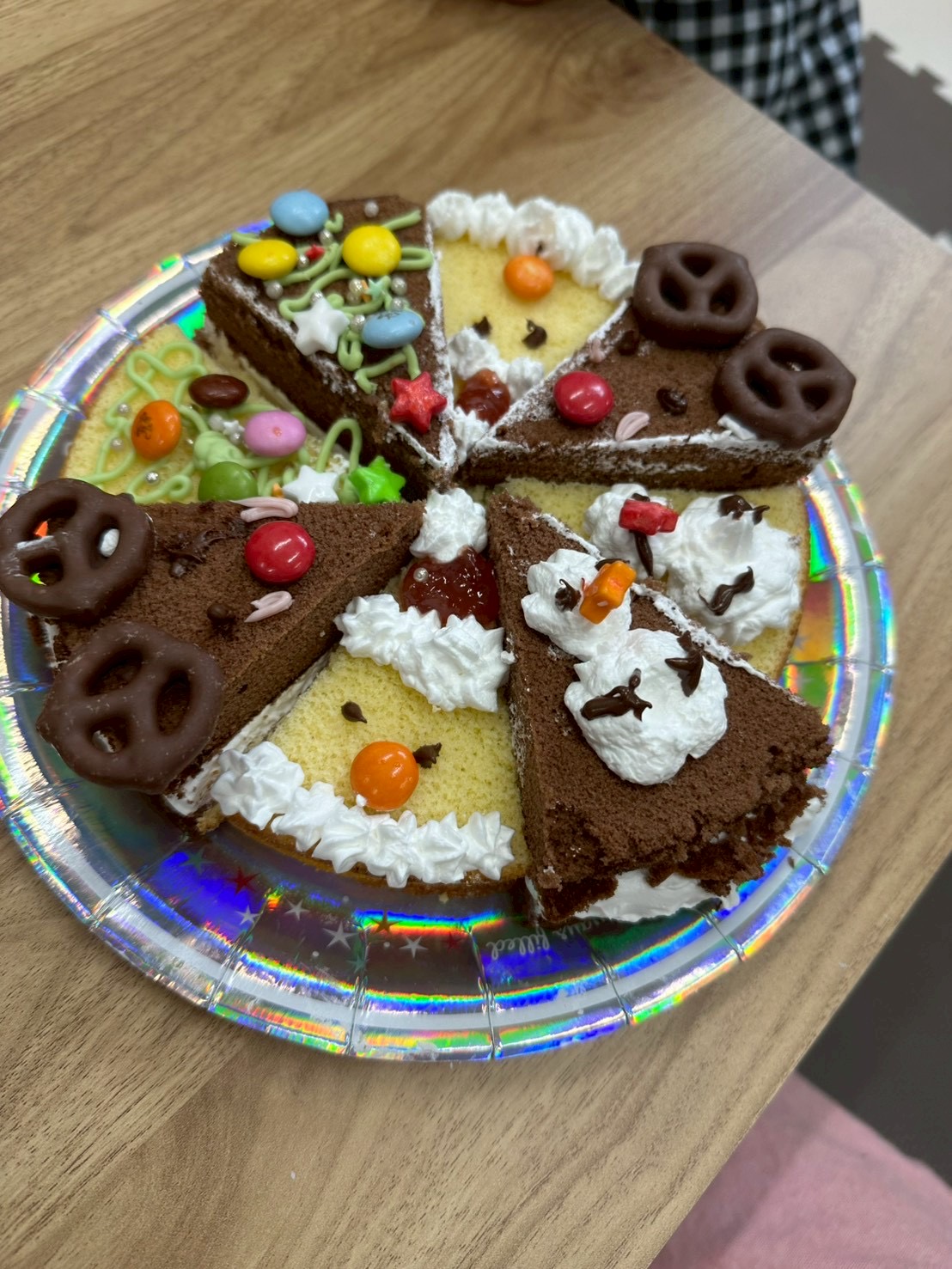 本日は、クッキング活動にて、スポンジケーキにクリスマスデコレーションをしました🎄✨️