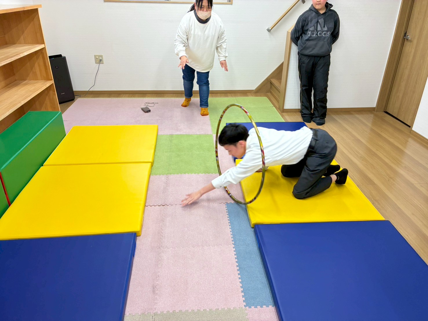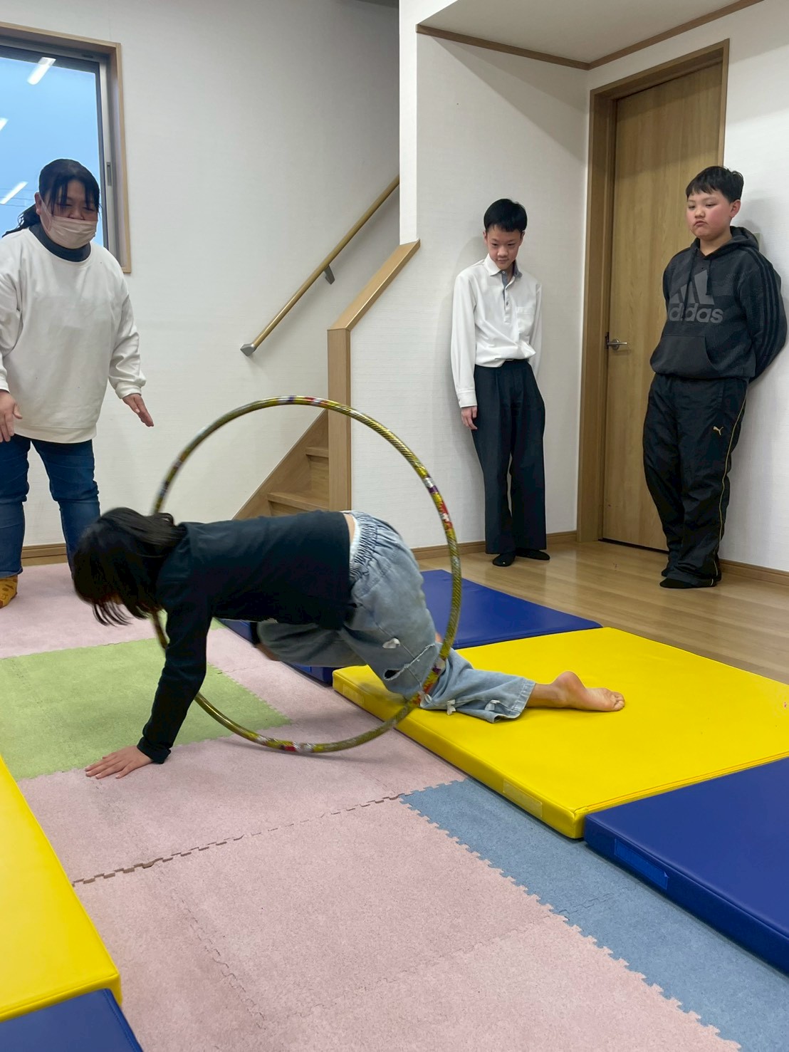 ①タイミングあわせてフラフープくぐり