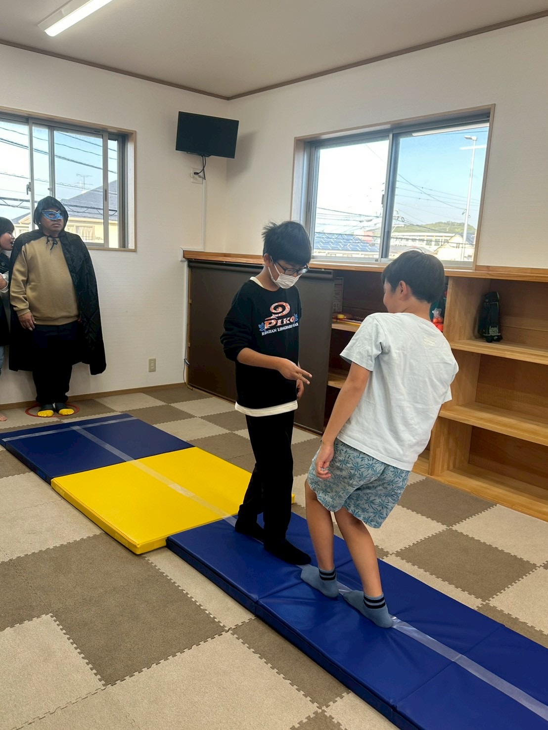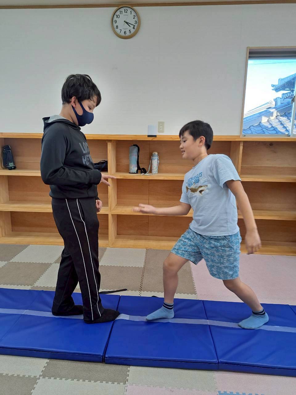 今回は初めてなので、コースを一本橋風にして線を引いて行いました✋