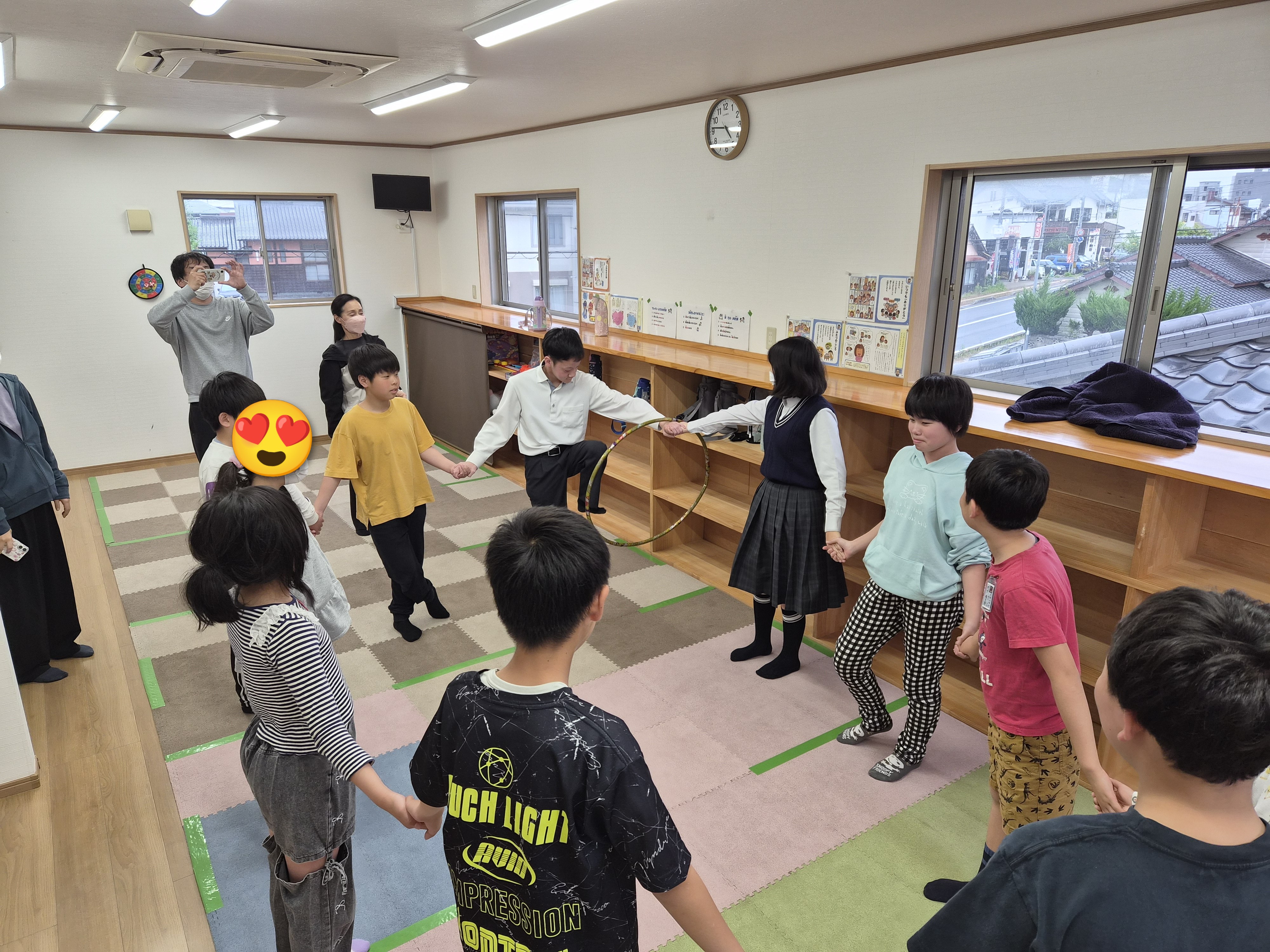 みんなで輪になります❗今度は、みんなで協力して取り組みます😁