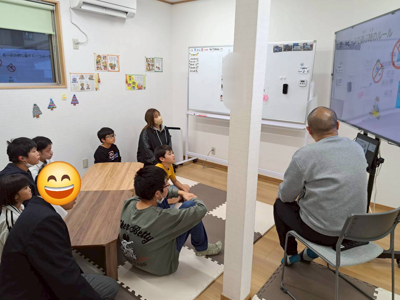 来所してからすること、室内での遊び方、トイレ、送迎車などでのルールをクイズ形式でやってみました✋