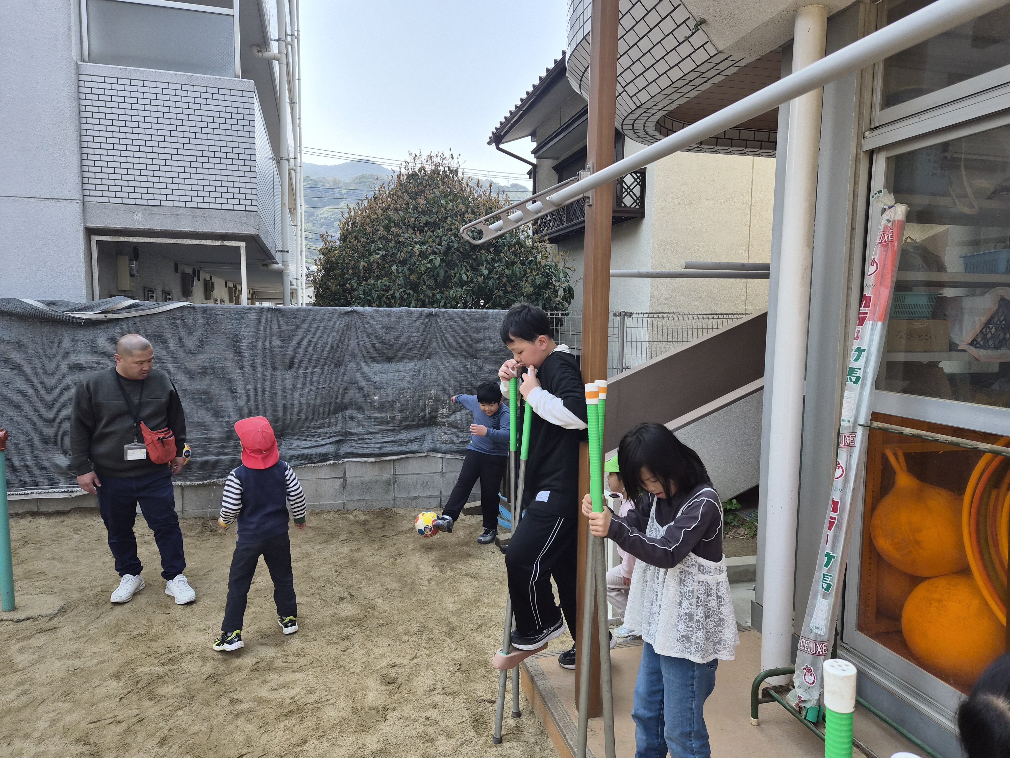 早速、園庭で園児のみなさんと外遊びです❗しっかりと準備をして…🕺