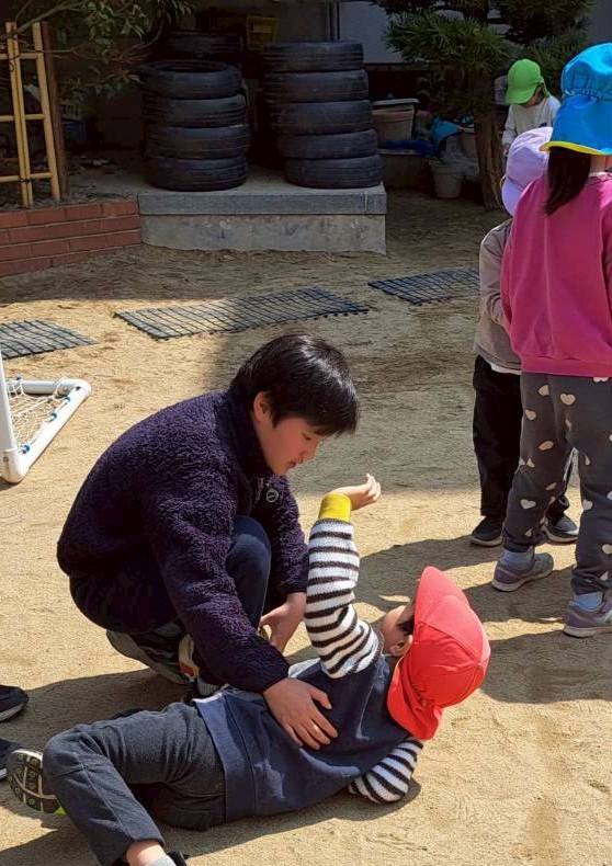 遊びの途中で、転けた園児に手を…優しい場面もありました😢