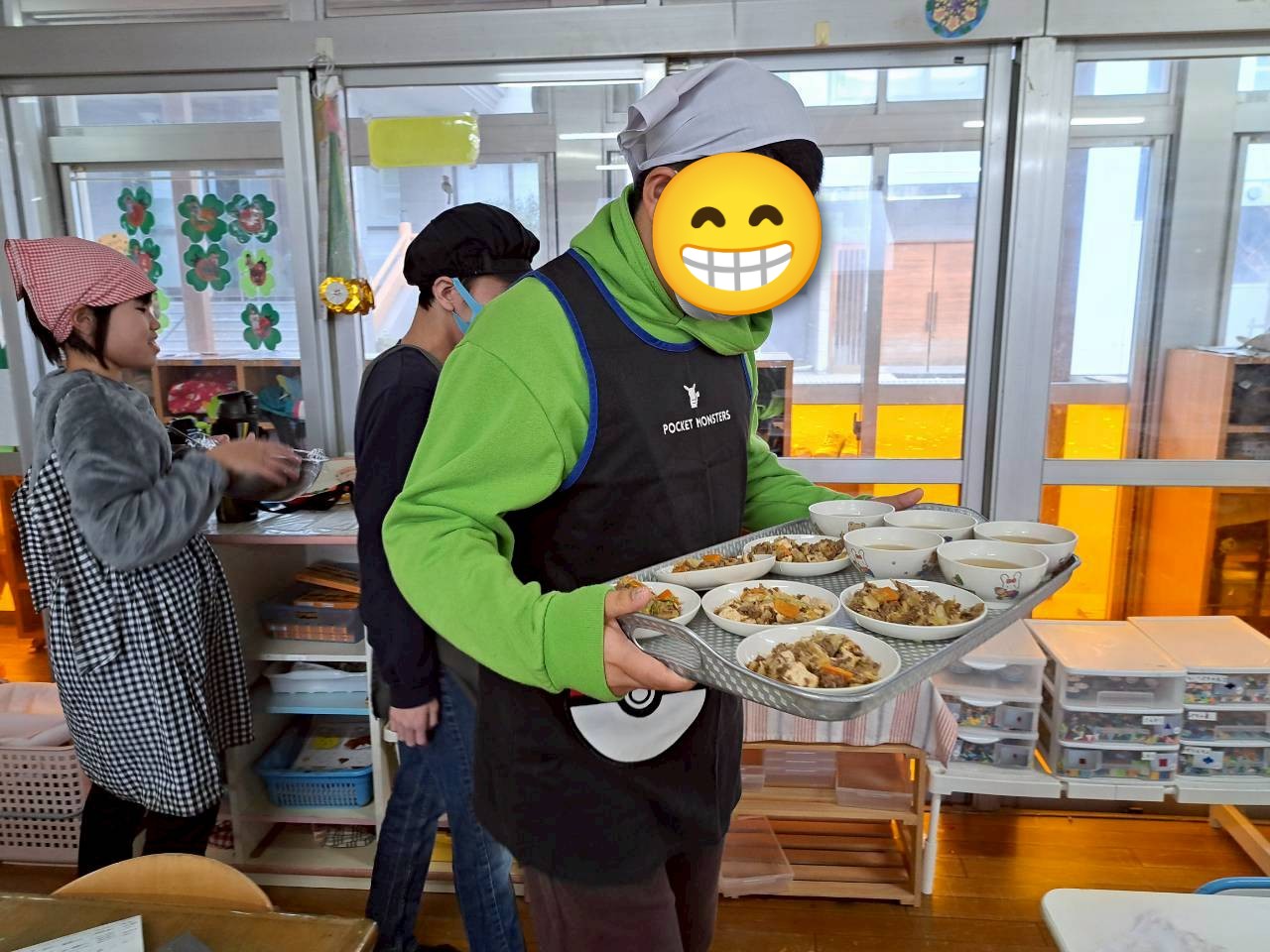 給食の配膳準備もお手伝いします🙋♂️
