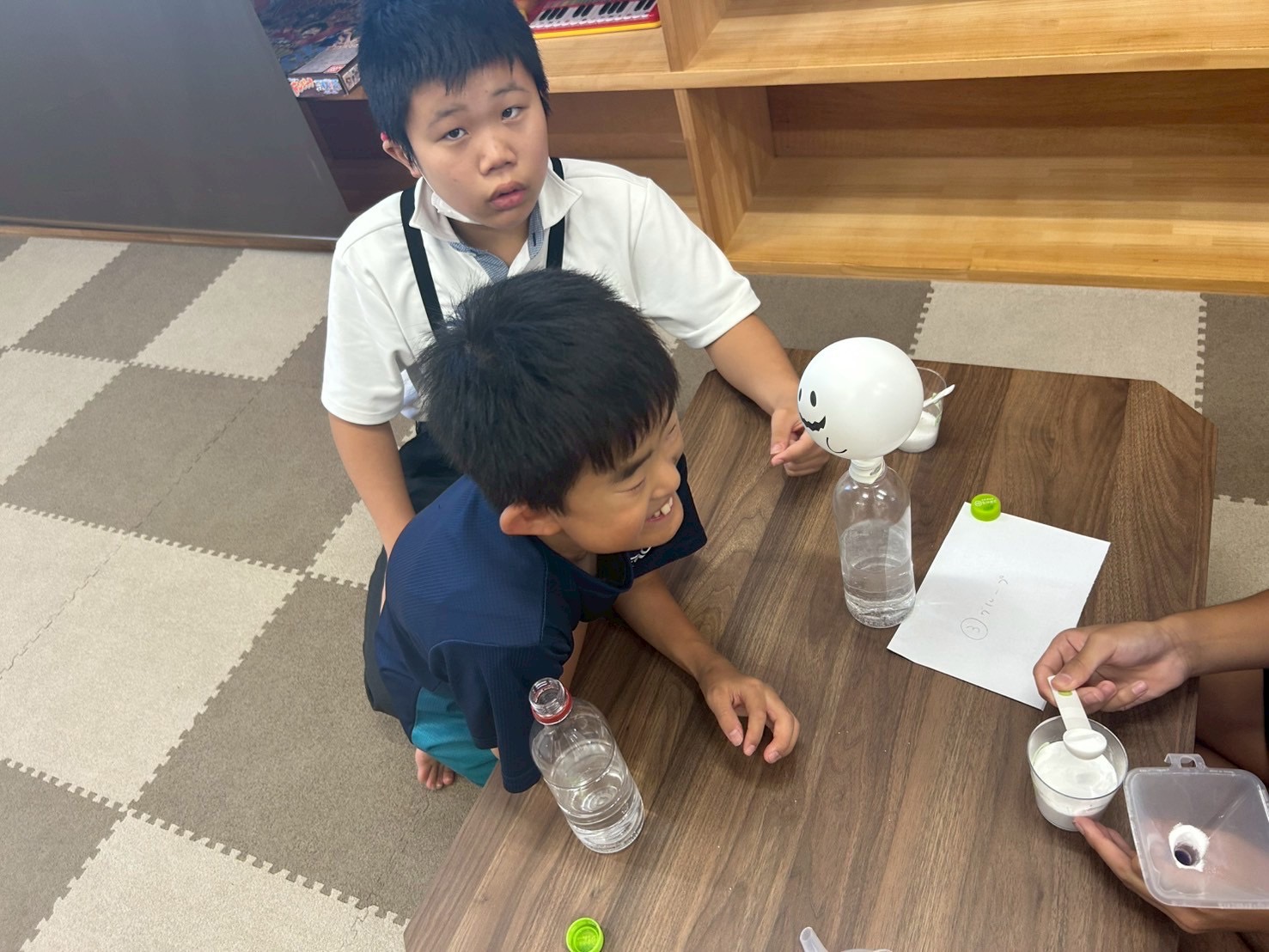 今回は2回行い次は粉の量を増やしたらどうなるんだろうなどの会話をしながら楽しく実験遊びをしていました😊✨
