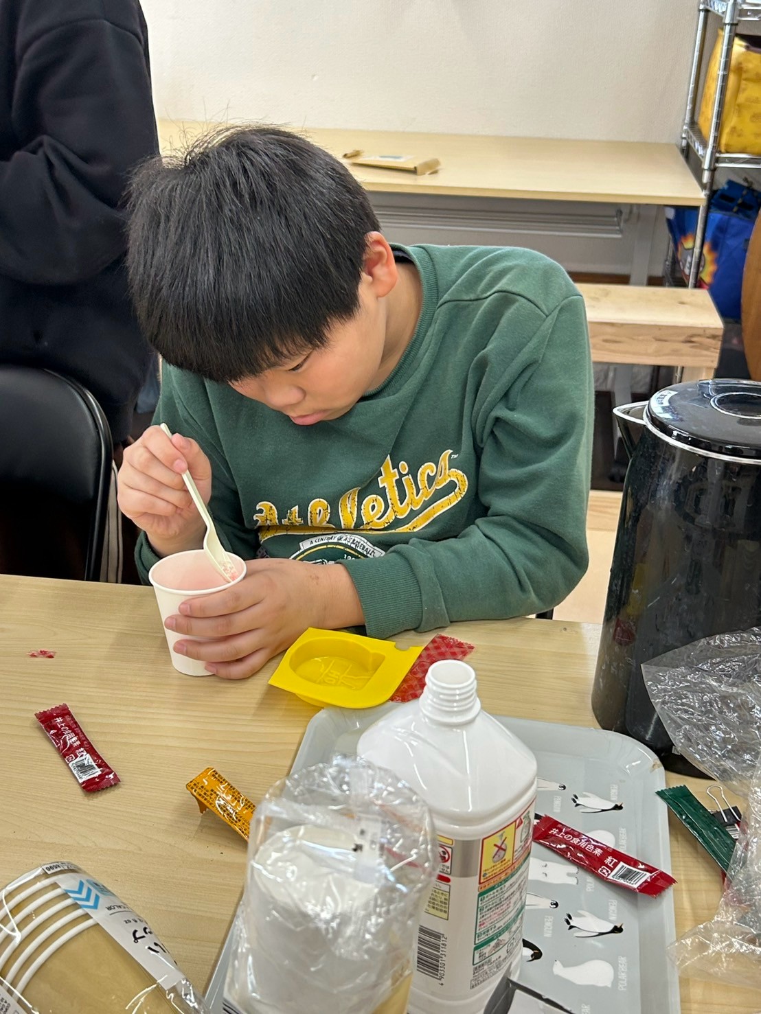 こぼさないよう慎重に、よ〜く混ぜて型に流し込み固まれば出来上がり!型に流し込む際もこぼさないように、そ〜っと流し込んでいましたよ。