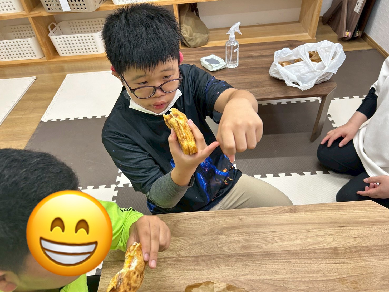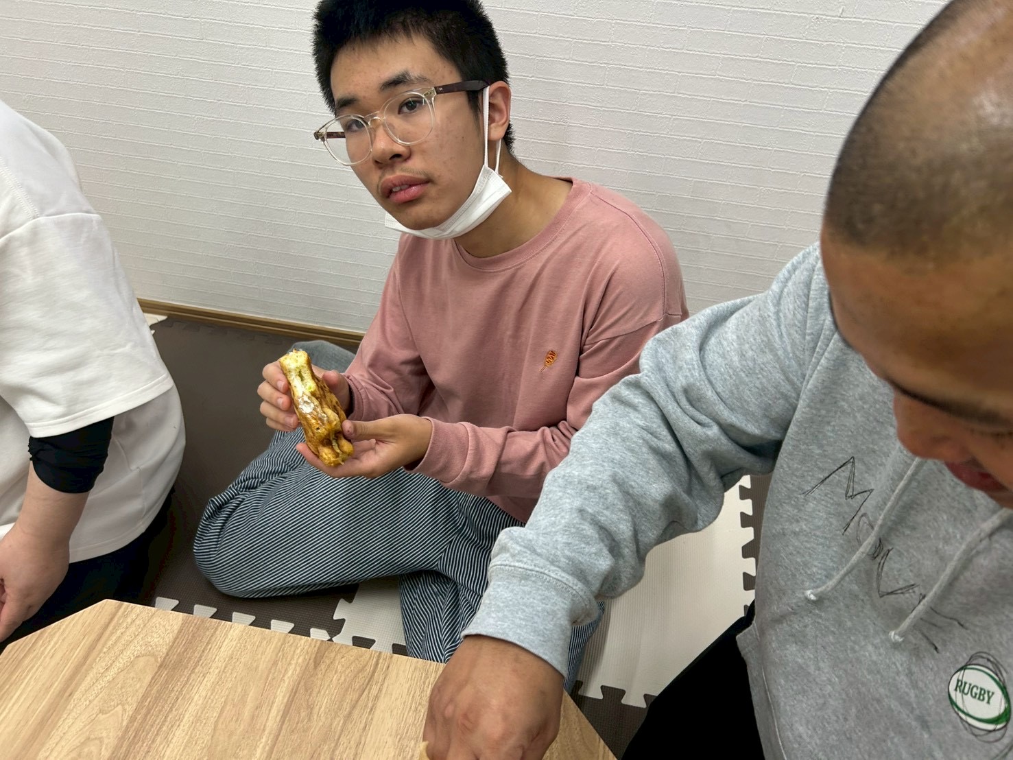 帰る前に皆んなでむっちゃん万十を食べながら各グループの1日を報告し合いました☺️✨