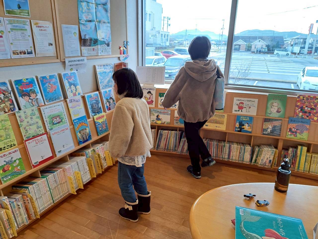 本日は、雨が降っていたため課外活動として町内にある図書館へ行ってきました🚗💨