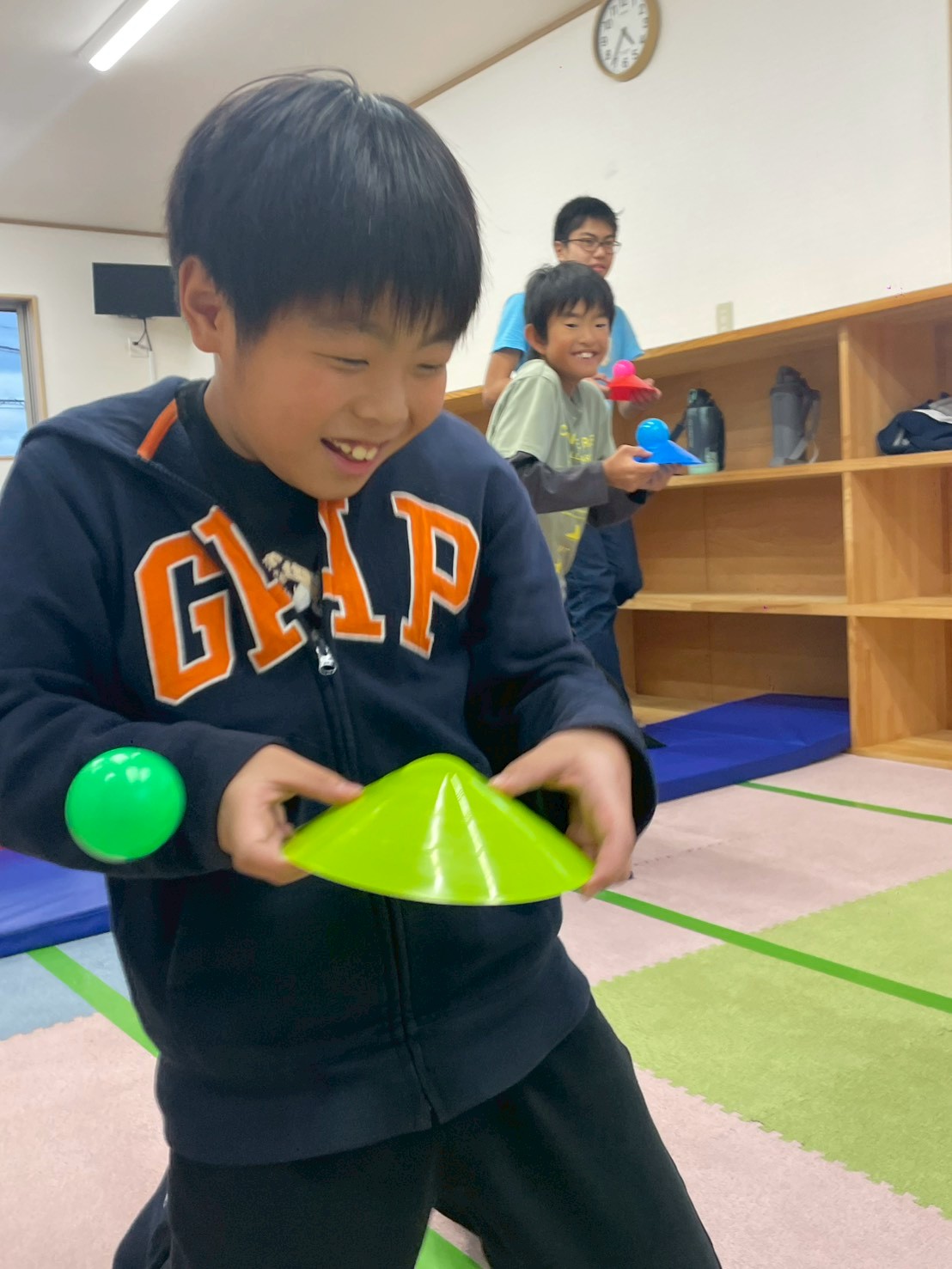 🟡自己制御:鬼の手元にボールが戻る瞬間に動きを止める(我慢する)必要があります。