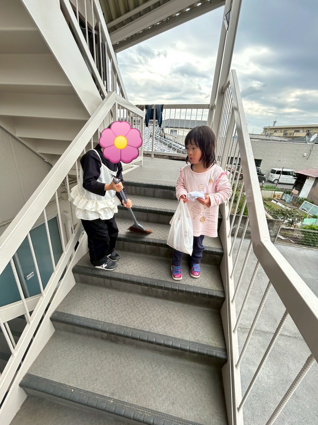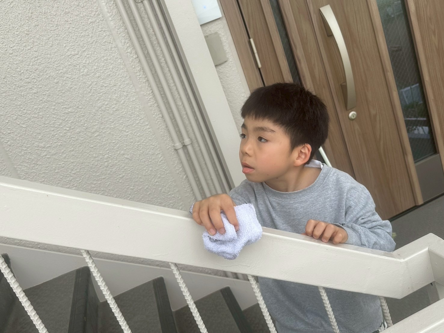 手すりも拭きます🧼