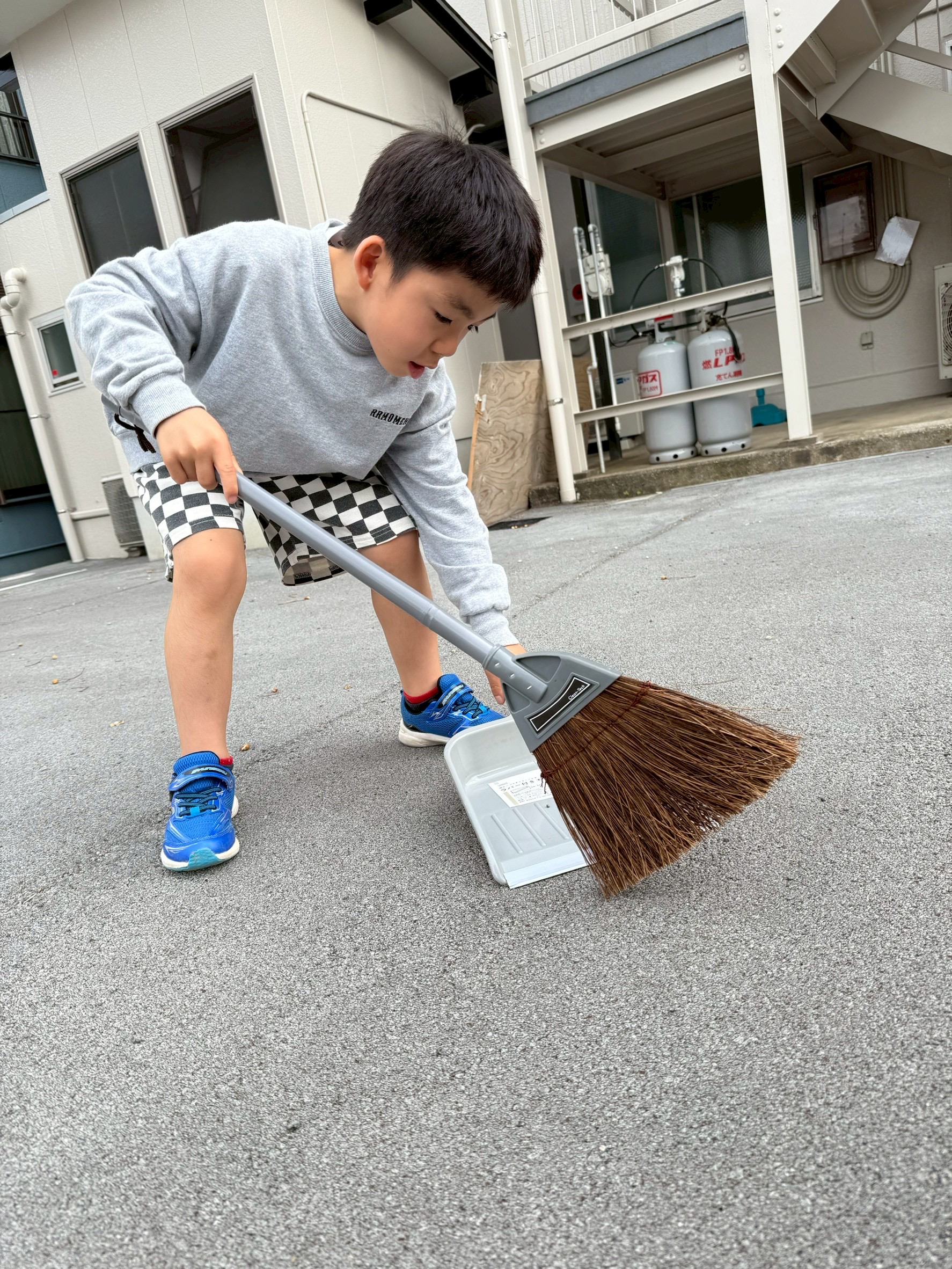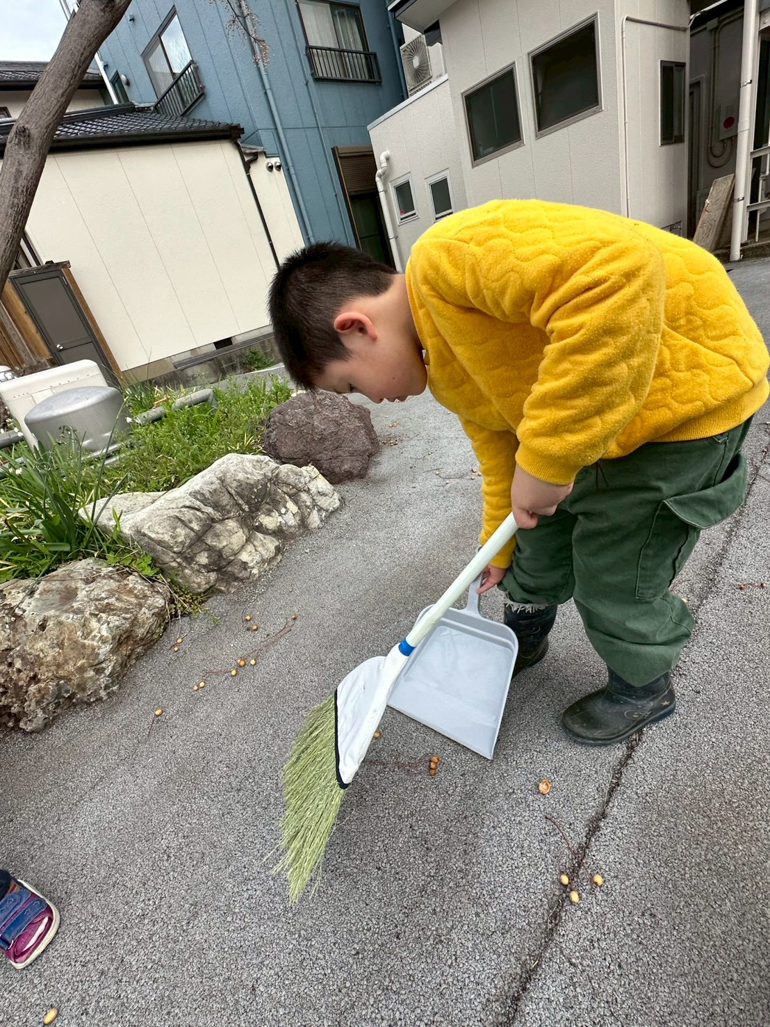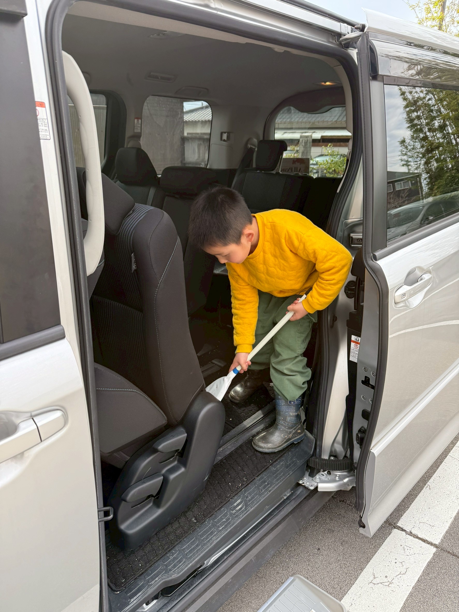 玄関周りの掃き掃除や、駐車場のゴミ拾い、車内の整理整頓などを行いました。