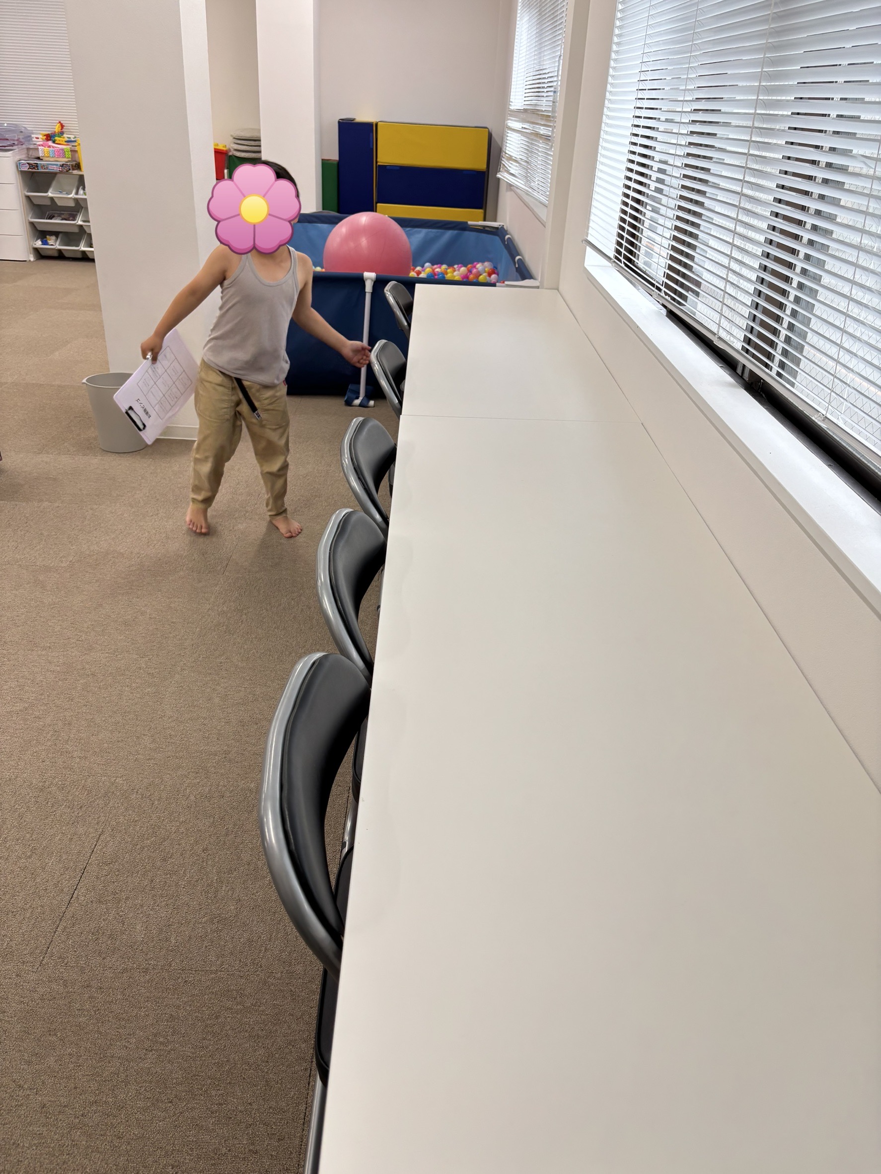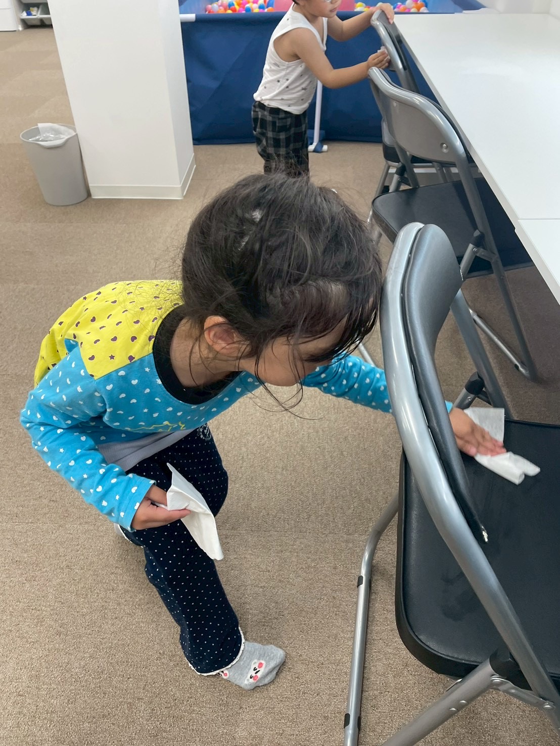 机や椅子の拭き掃除、物の整理など、それぞれ役割を決めて取り組みました💪