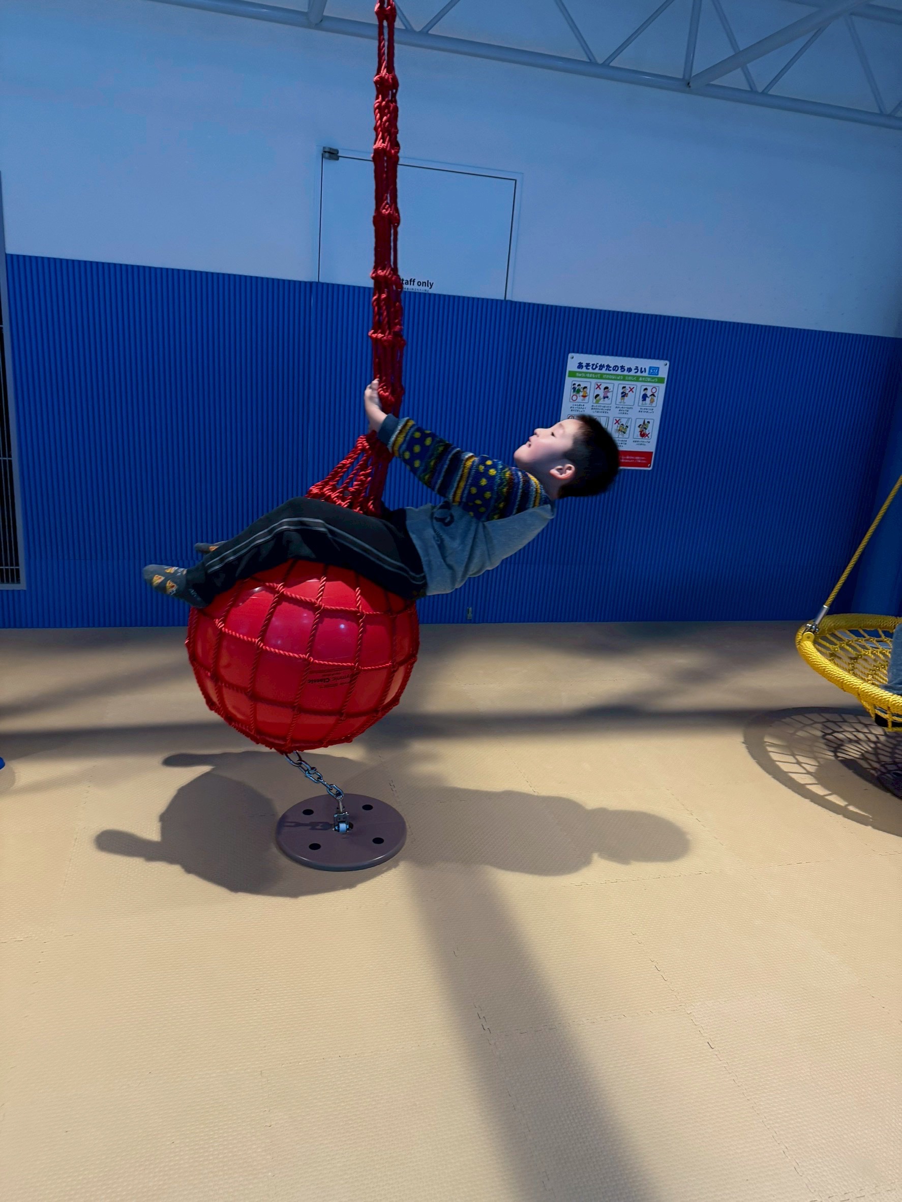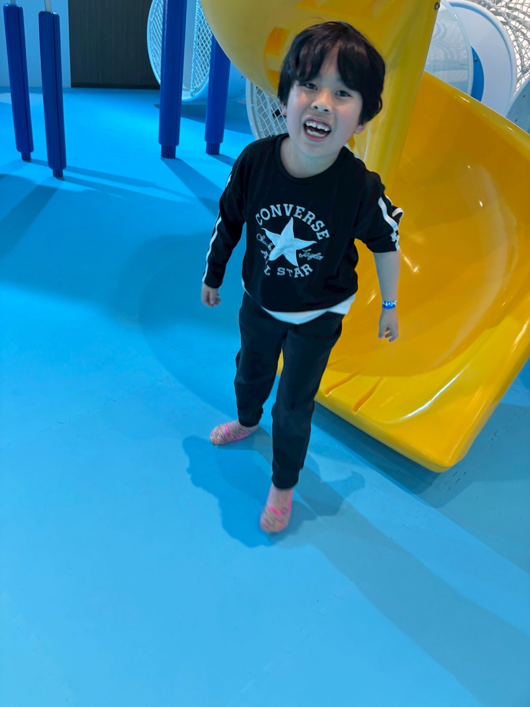 あいにくの天気で雨が降ったり止んだりだったので、最後は室内で思いきり体を動かして遊べる場所への外出活動にしました😆