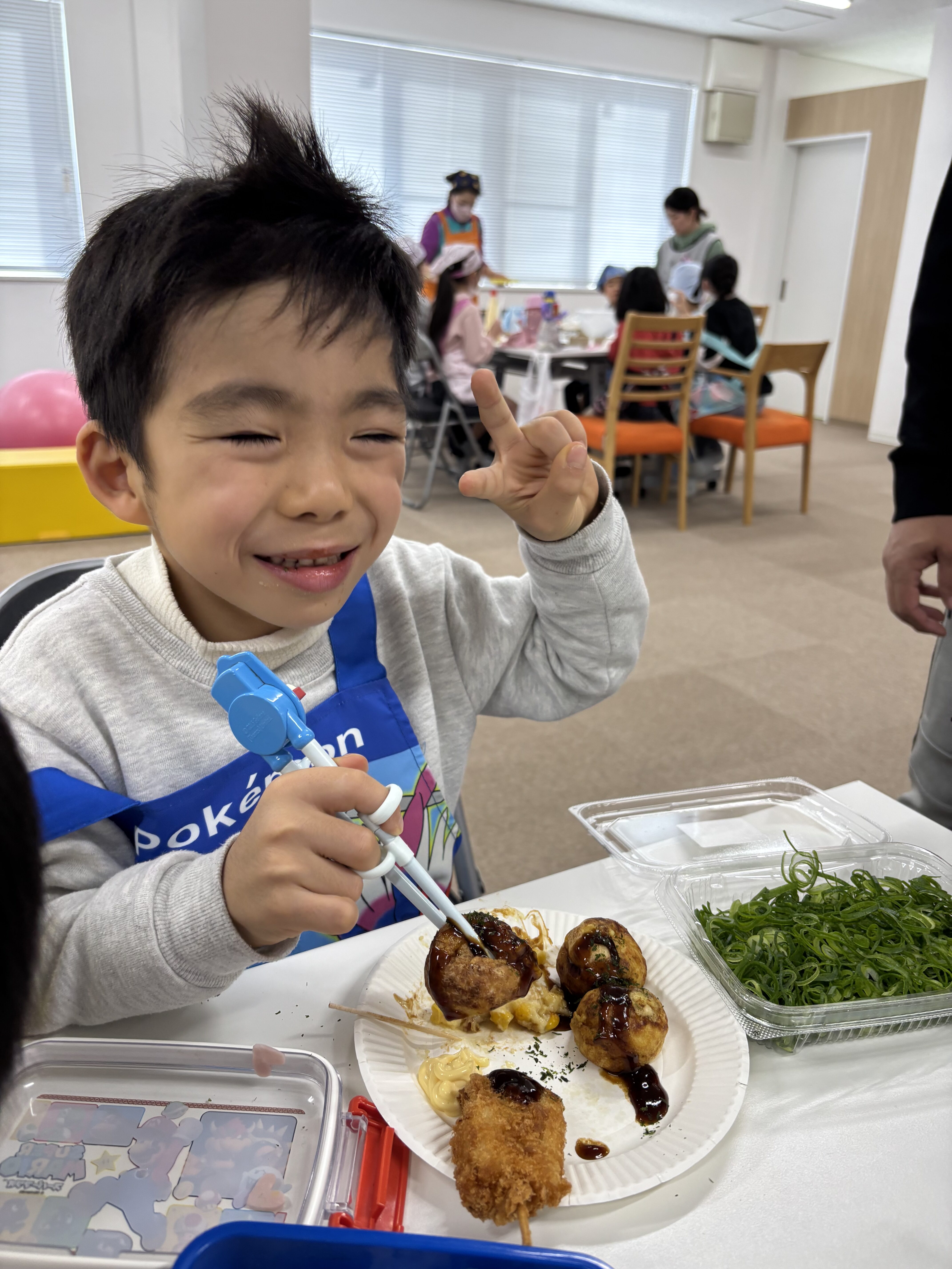 と元気いっぱいみんなバクバク食べて、たこ焼きパーティー大成功でした🤩