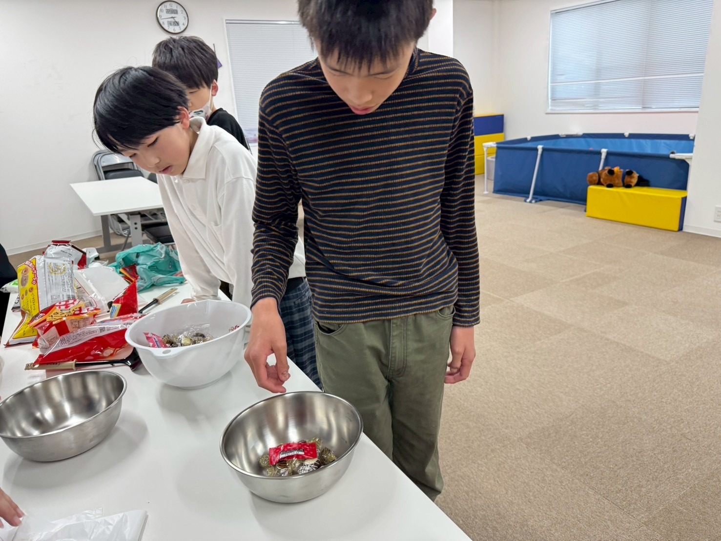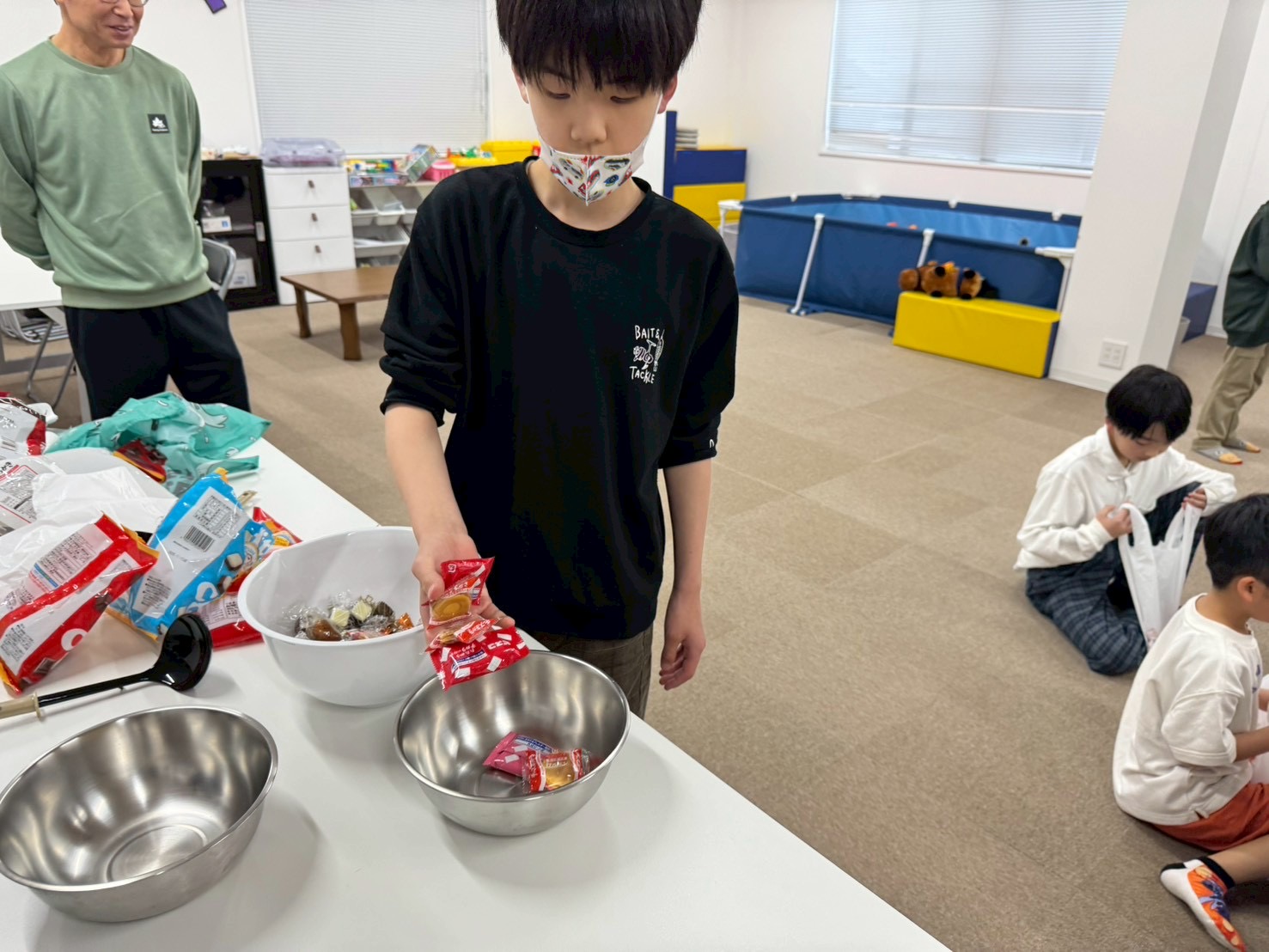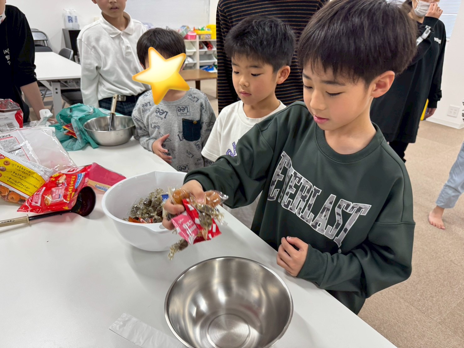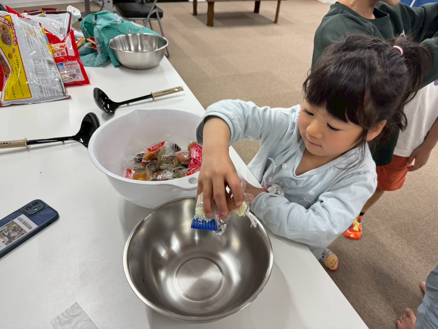 ⚪️先生とじゃんけんをして、勝った人から順にお菓子の掴み隣のボウルに移します🥣